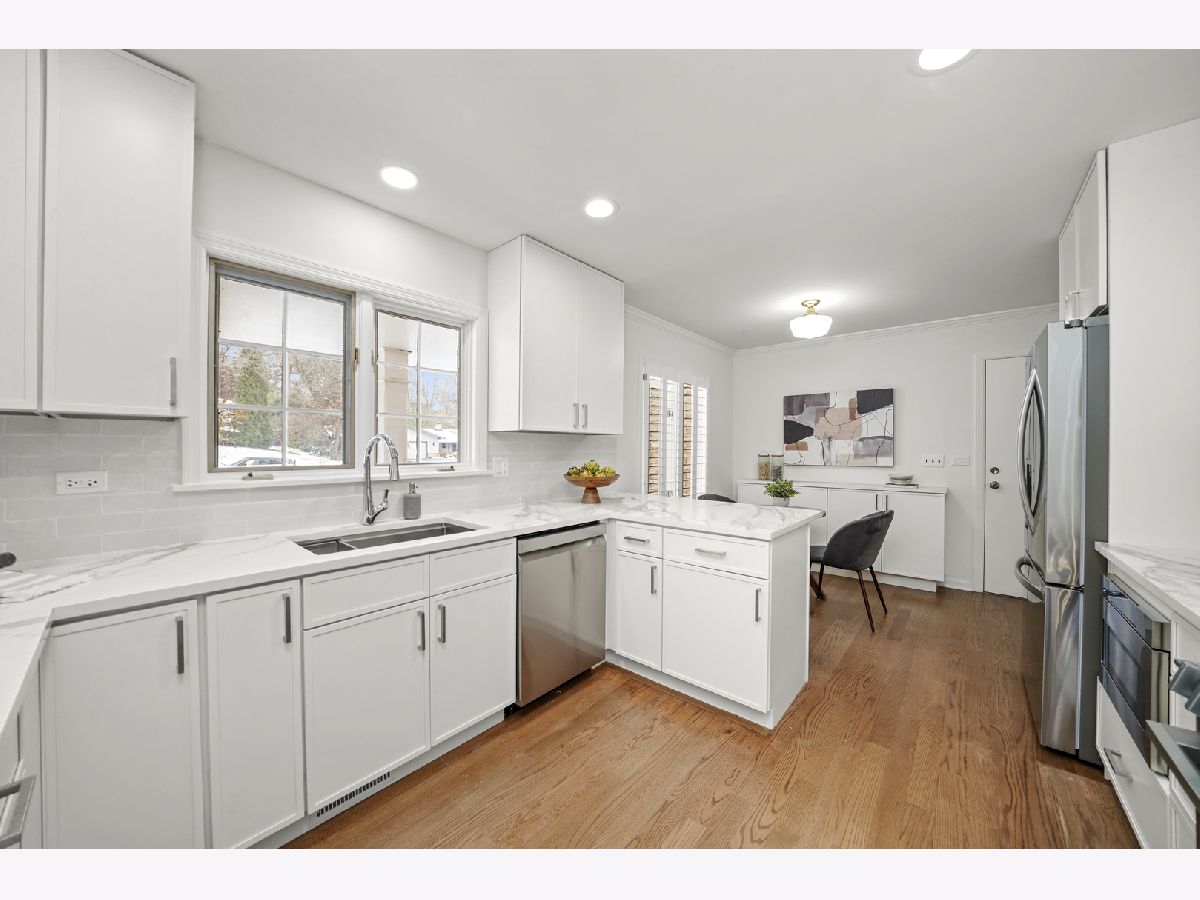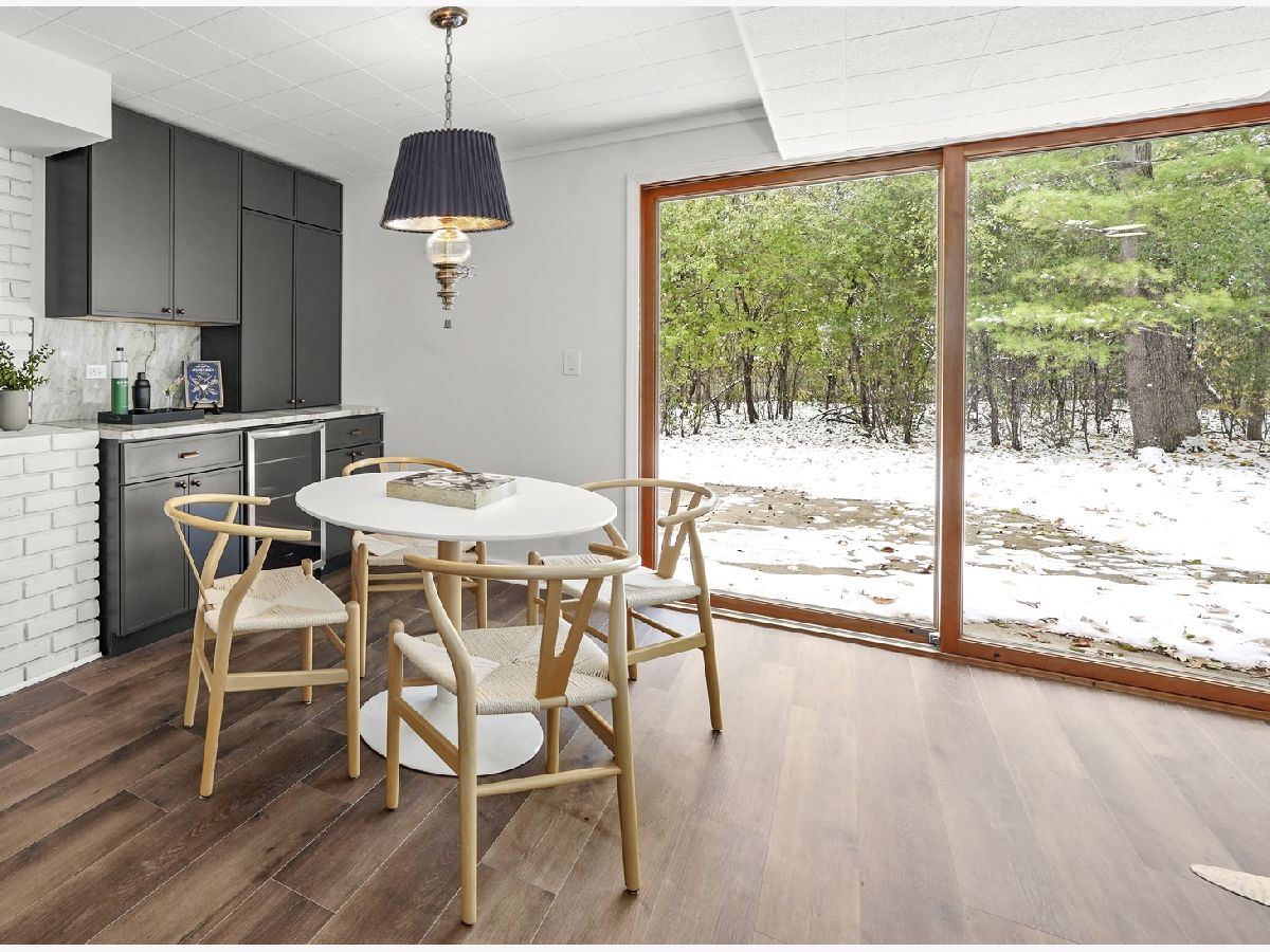Offering OVER 3000 sq ft of finished living space, Nestled in the sought-after Whispering Oaks neighborhood of East Lake Forest is this beautifully renovated 5 bedroom, 2.5 bath home. The main level features a seamless flow anchored by a brand new kitchen with quartz countertops, custom thin shaker cabinetry, a pull out pantry, and chef's hood, along with a cozy coffee nook for early mornings. The adjoining dining area opens to a raised patio, perfect for entertaining or quiet evenings surrounded by mature trees. A spacious living room with a wood burning fireplace and a large picture window frames stunning views of the private, fenced in half acre yard. Upstairs, four generous bedrooms easily accommodate queen or king beds, including a serene primary suite with dual vanities and a beautifully updated bath. The additional new full bath features a 72-inch, dual sink, white oak vanity and modern finishes throughout. Lower level has a great walk-out to the outdoor space right off the family room with a second fireplace and a brand new custom dry bar with quartzite slab backsplash and beverage center, great for entertaing guests on game days and holidays. The lower level has a great room for a home-office or a guest suite. Also inclidues, large laundry area with extra storage. The finished basement below adds even more versatility with a playroom, craft area, and workshop space, perfect for hobbies or recreation. Additional highlights include a new furnace and air conditioning, ample storage throughout, and a cedar closet for seasonal items. Just steps from Cherokee Elementary and minutes to downtown Lake Forest, the Metra, and Lake Michigan beaches, this home blends suburban tranquility with everyday convenience you'll love to take advantage of for Summer beach days.