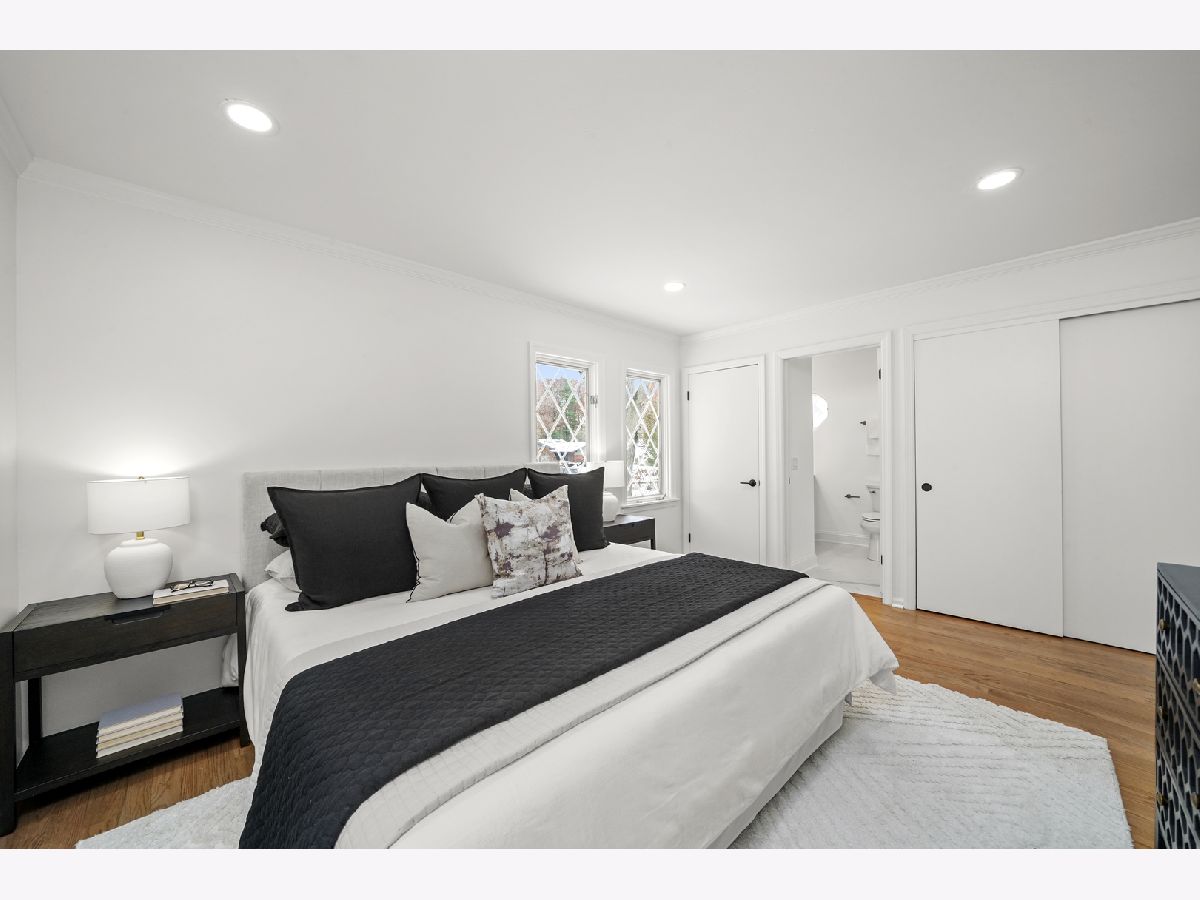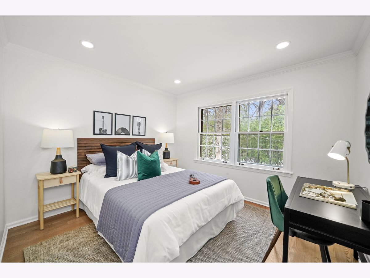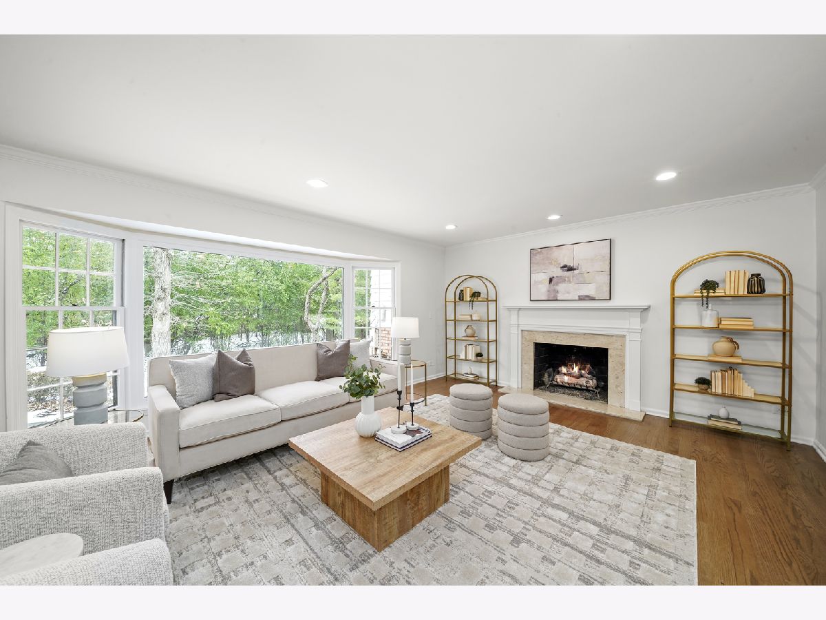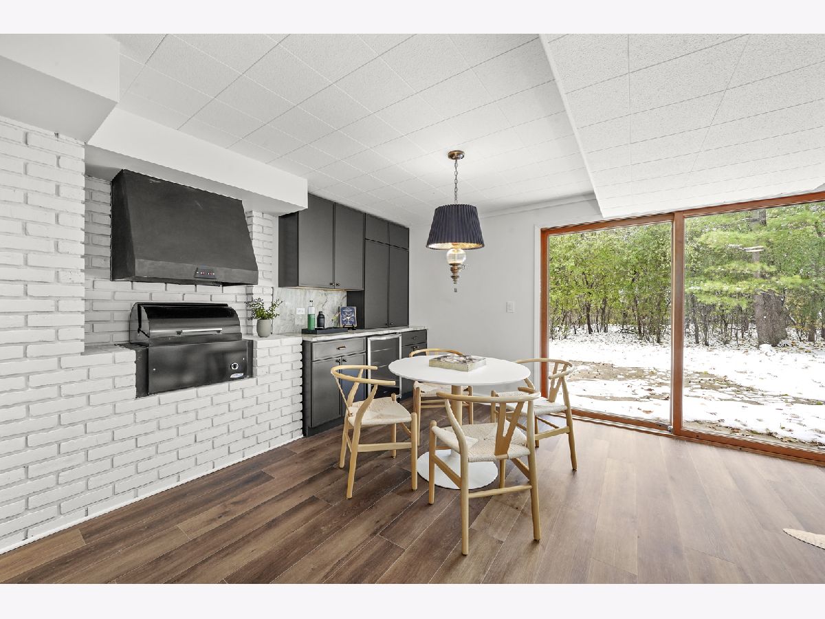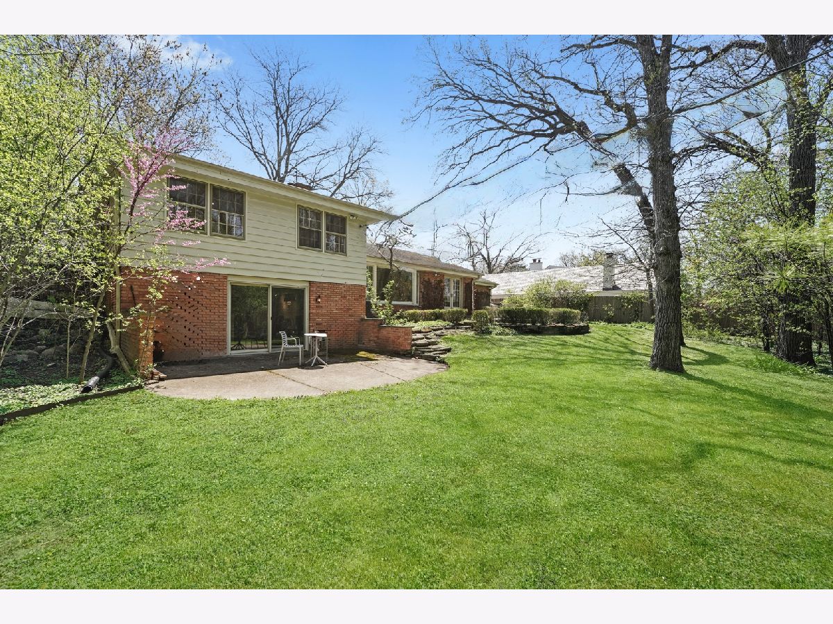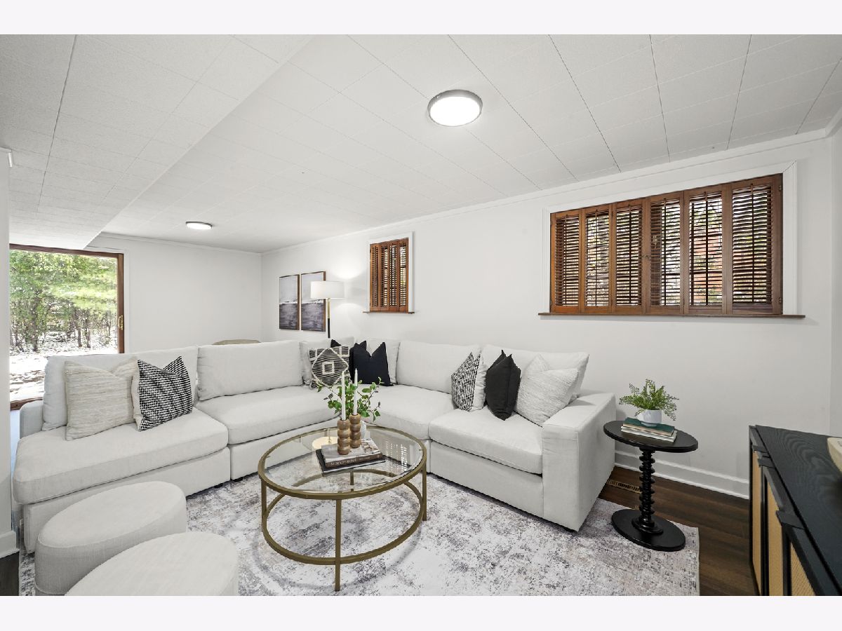Offering over 3000 sq ft of finished and remodeled home. Nestled in the sought-after Whispering Oaks neighborhood of East Lake Forest is this beautifully renovated 5 bedroom, 2.5 bath home. The main level features a seamless flow anchored by a brand new kitchen with quartz countertops, custom thin shaker cabinetry, a pull out pantry, and chef's hood, along with a cozy coffee nook for early mornings. The adjoining dining area opens to a raised patio, perfect for entertaining or quiet evenings surrounded by mature trees. A spacious living room with a wood burning fireplace, gas starter and an oversized picture window frames stunning views of the private, fenced in half acre yard. Upstairs, four generous bedrooms easily accommodate queen or king beds, including a serene primary suite with dual vanities and a beautifully updated bath and large, glass shower walk-in shower. An additional new full, hallway bath features a 72-inch, dual sink, white oak vanity with tons of storage and modern finishes. Lower level has a great walk-out to the outdoor space right off the family room with a second cozy, wood burning fireplace and a brand new custom dry bar built-in with quartzite slab countertop and vein matching backsplash and beverage center, great for entertaining guests on game days and holidays. The lower level has a additional room for a home-office or a guest suite. Also inclidues, large laundry area with extra storage. The finished basement below adds even more versatility with a playroom, craft area, and workshop space, perfect for hobbies or recreation. Additional highlights include a new furnace and air conditioning, ample storage throughout, and a cedar closet for seasonal items. Just steps from Cherokee Elementary and minutes to downtown Lake Forest, the Metra, and Lake Michigan beaches, this home blends suburban tranquility with everyday convenience you'll love to take advantage of for Summer beach days.