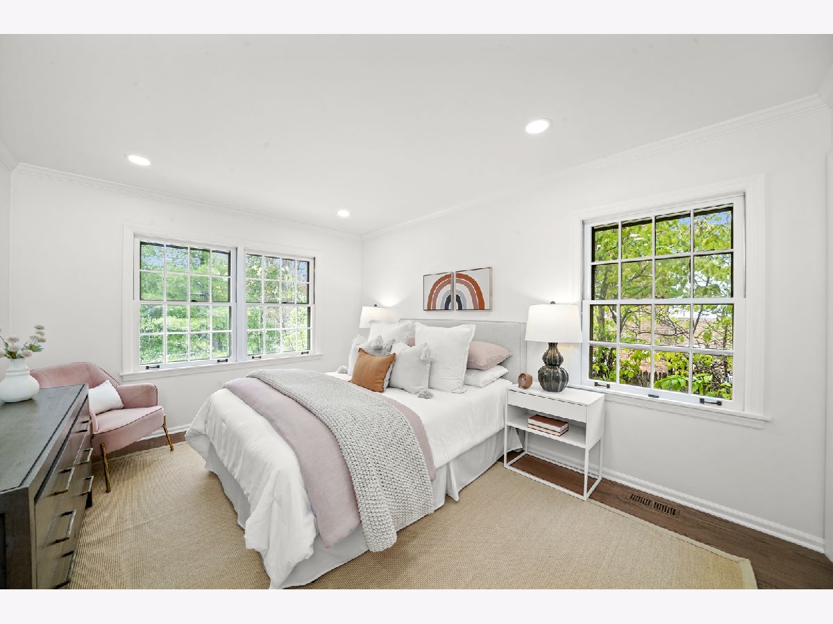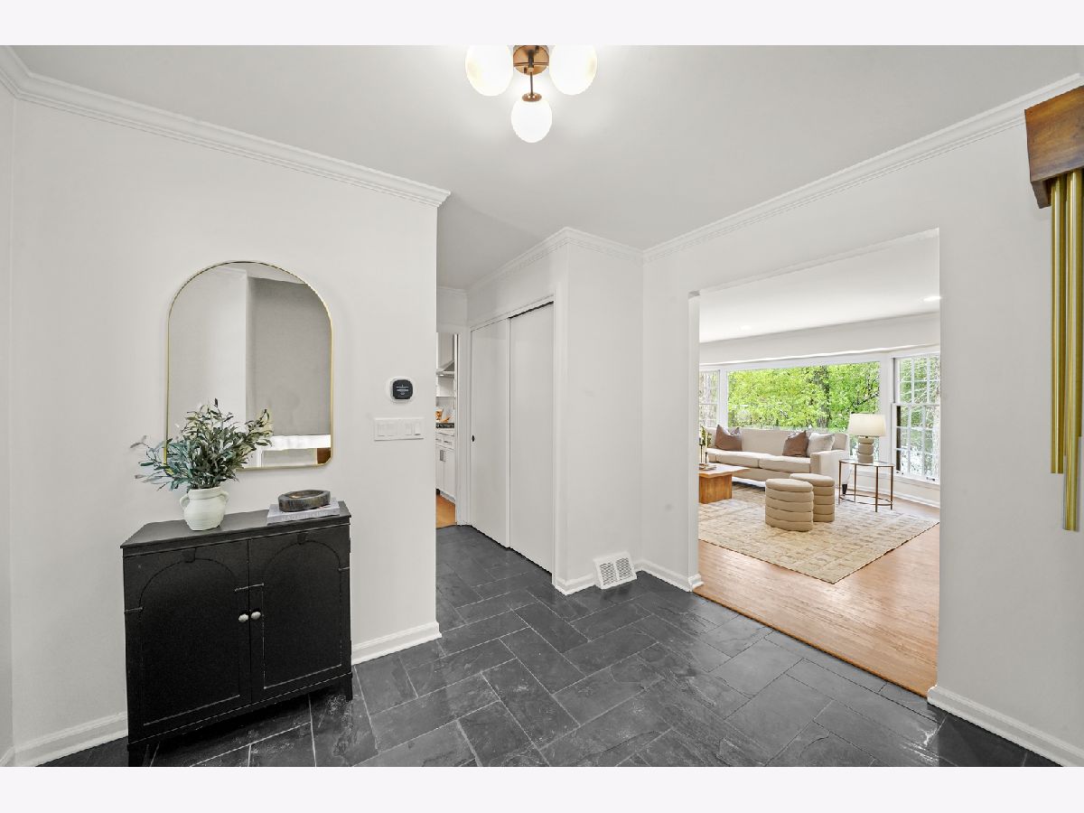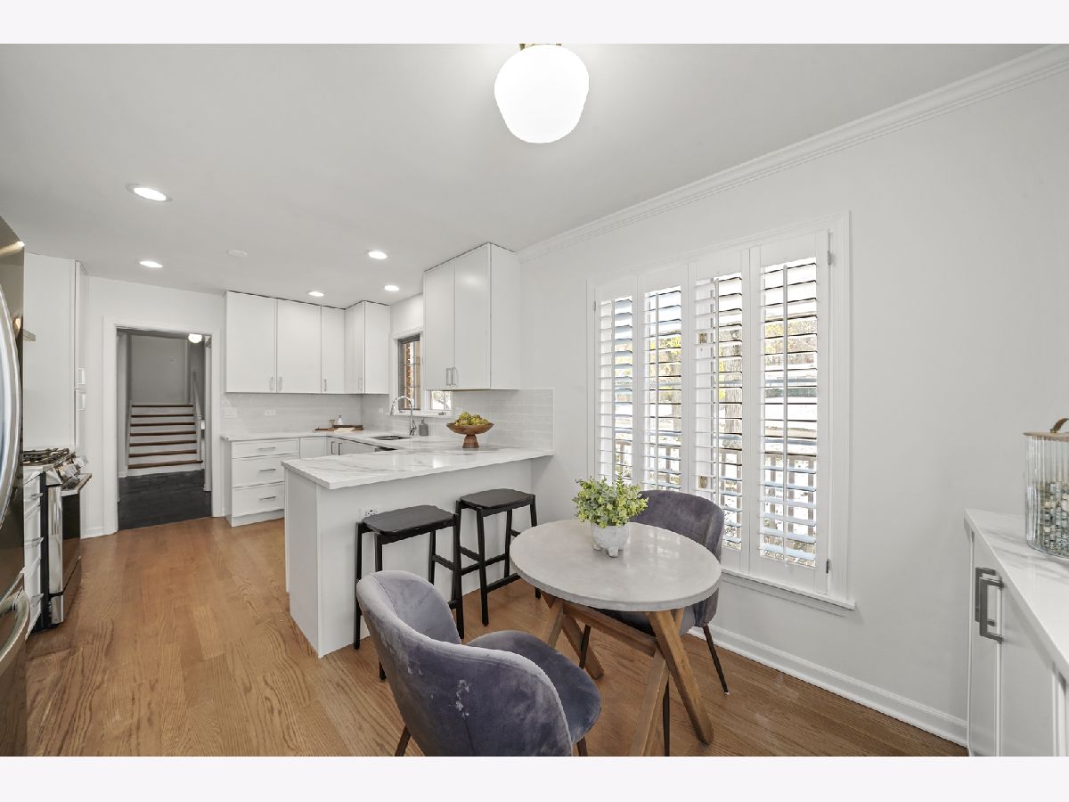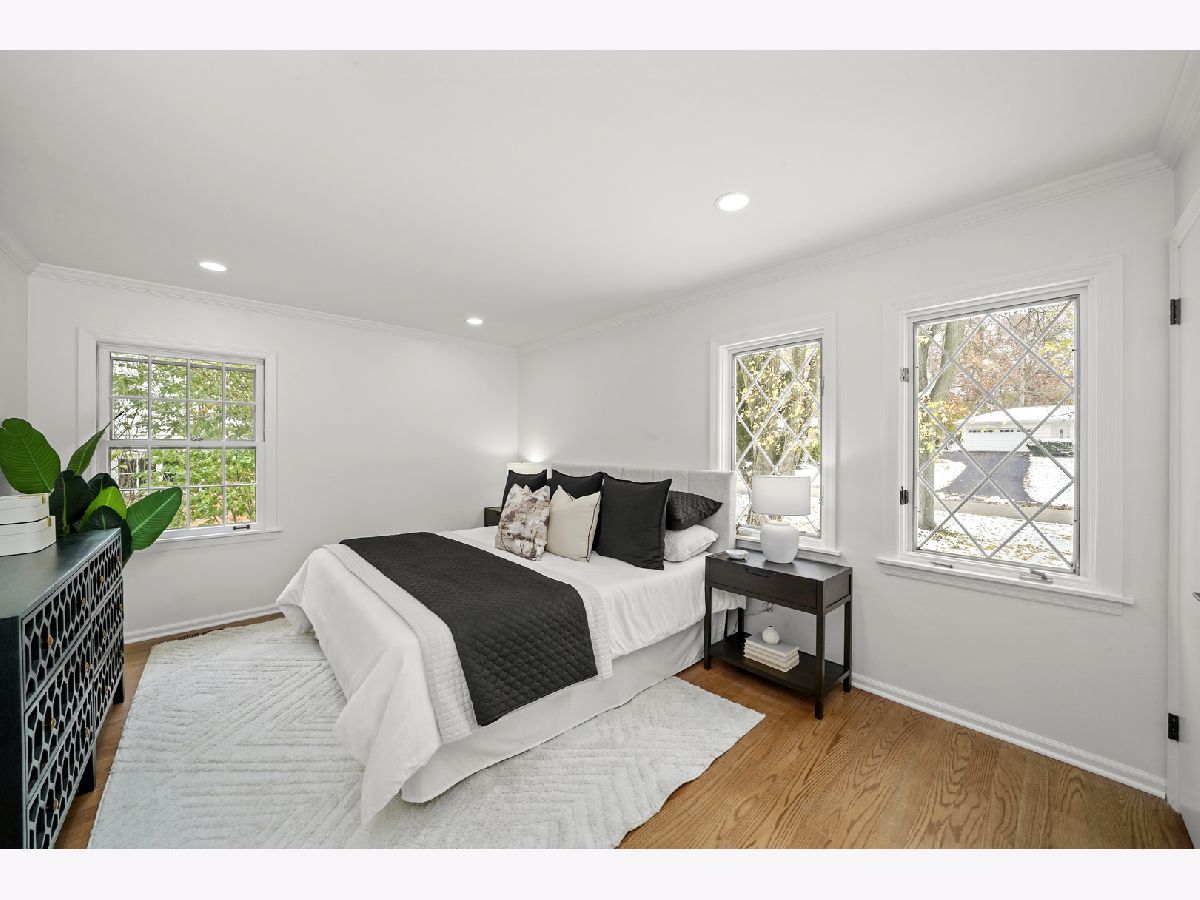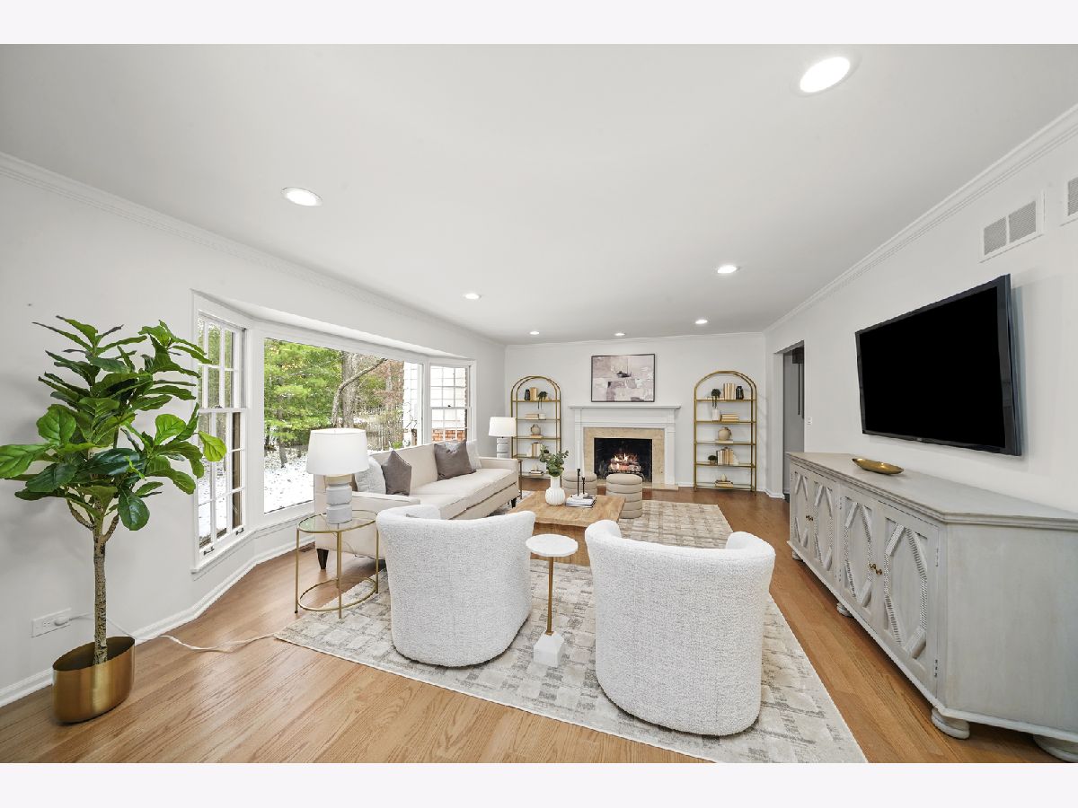Offering over 3000 sq ft of finished and remodeled home. Nestled in the sought-after Whispering Oaks neighborhood of East Lake Forest is this beautifully renovated 5 bedroom, 2.5 bath home. The main level features a seamless flow anchored by a brand new kitchen with quartz countertops, custom thin shaker cabinetry, a pull out pantry, and chef's hood, along with a cozy coffee nook for early mornings. The adjoining dining area opens to a raised patio, perfect for entertaining or quiet evenings surrounded by mature trees. A spacious living room with a wood burning fireplace, gas starter and an oversized picture window frames stunning views of the private, fenced in half acre yard. Upstairs, four generous bedrooms easily accommodate queen or king beds, including a serene primary suite with dual vanities and a beautifully updated bath and large, glass shower walk-in shower. An additional new full, hallway bath features a 72-inch, dual sink, white oak vanity with tons of storage and modern finishes. Lower level has a great walk-out to the outdoor space right off the family room with a second cozy, wood burning fireplace and a brand new custom dry bar built-in with quartzite slab countertop and vein matching backsplash and beverage center, great for entertaining guests on game days and holidays. The lower level has a additional room for a home-office or a guest suite. Also inclidues, large laundry area with extra storage. The finished basement below adds even more versatility with a playroom, craft area, and workshop space, perfect for hobbies or recreation. Additional highlights include a new furnace and air conditioning, ample storage throughout, and a cedar closet for seasonal items. Just steps from Cherokee Elementary and minutes to downtown Lake Forest, the Metra, and Lake Michigan beaches, this home blends suburban tranquility with everyday convenience you'll love to take advantage of for Summer beach days.