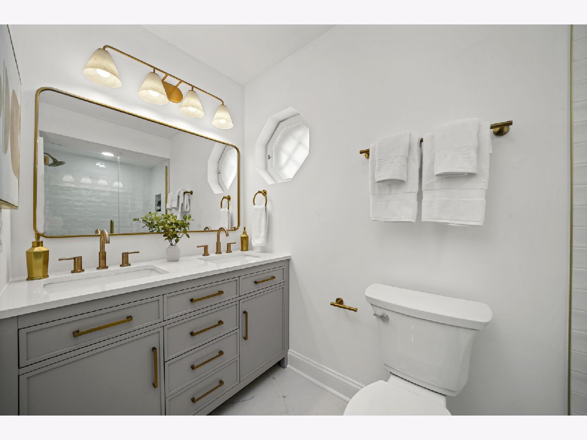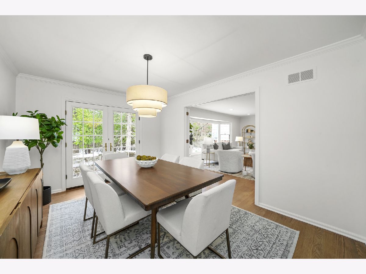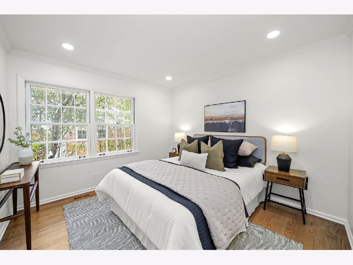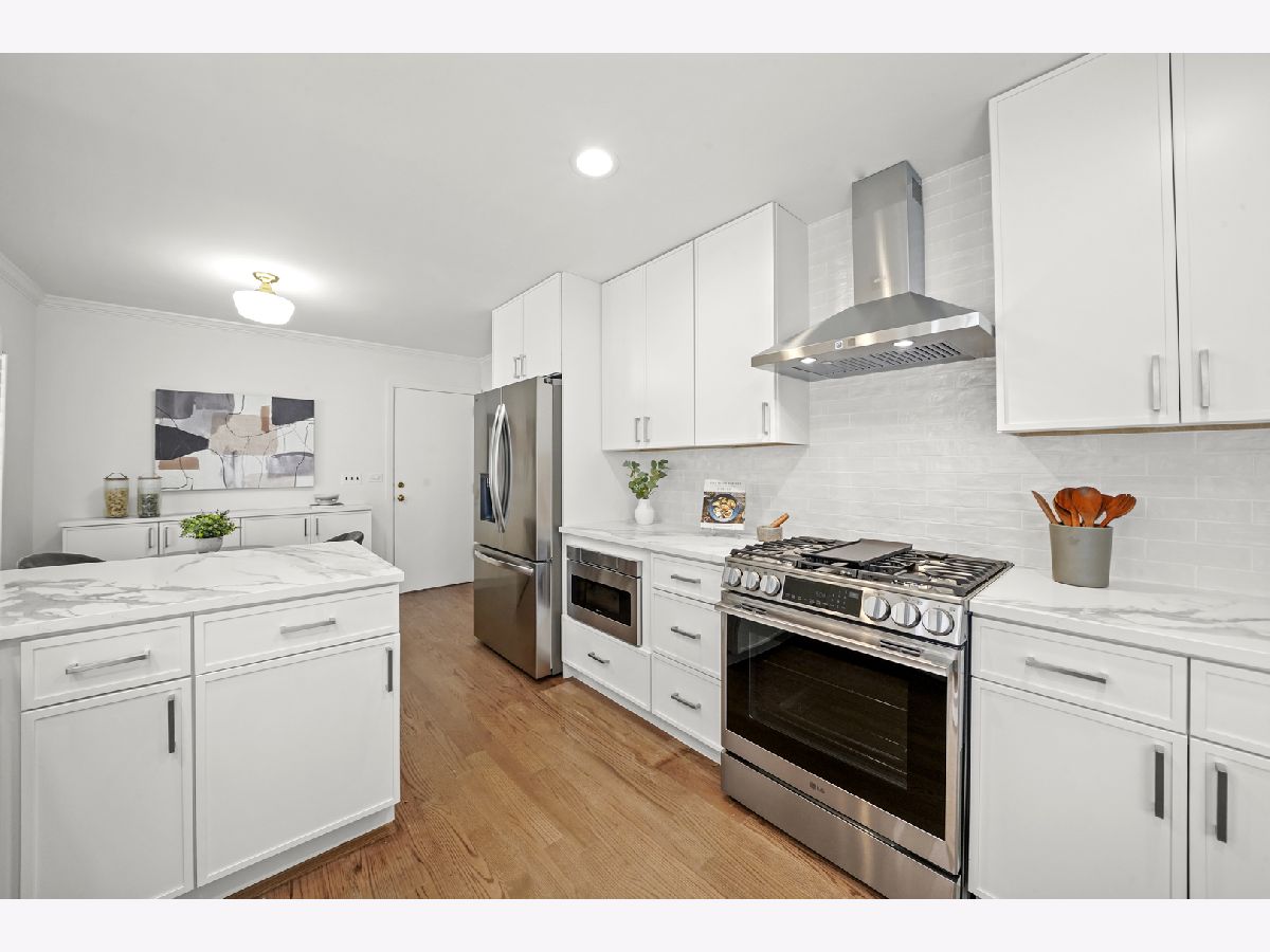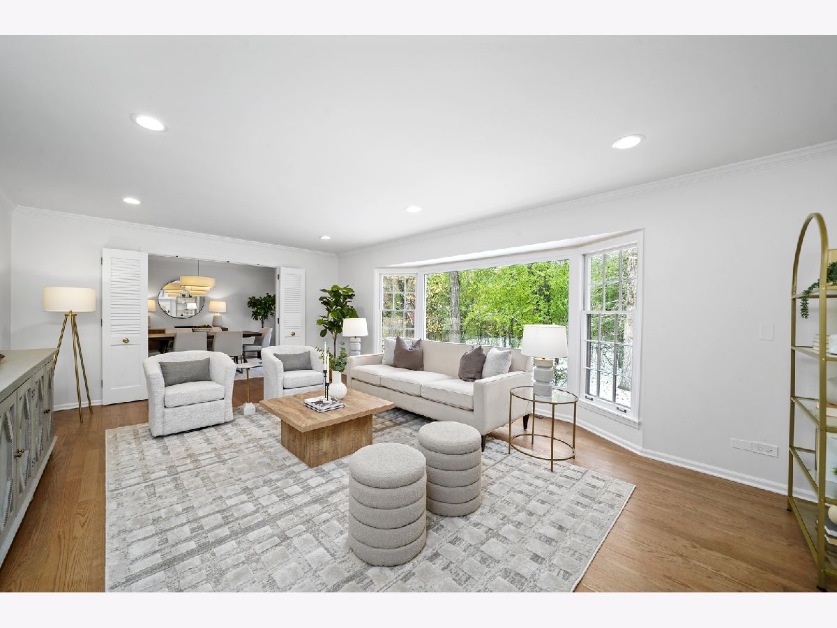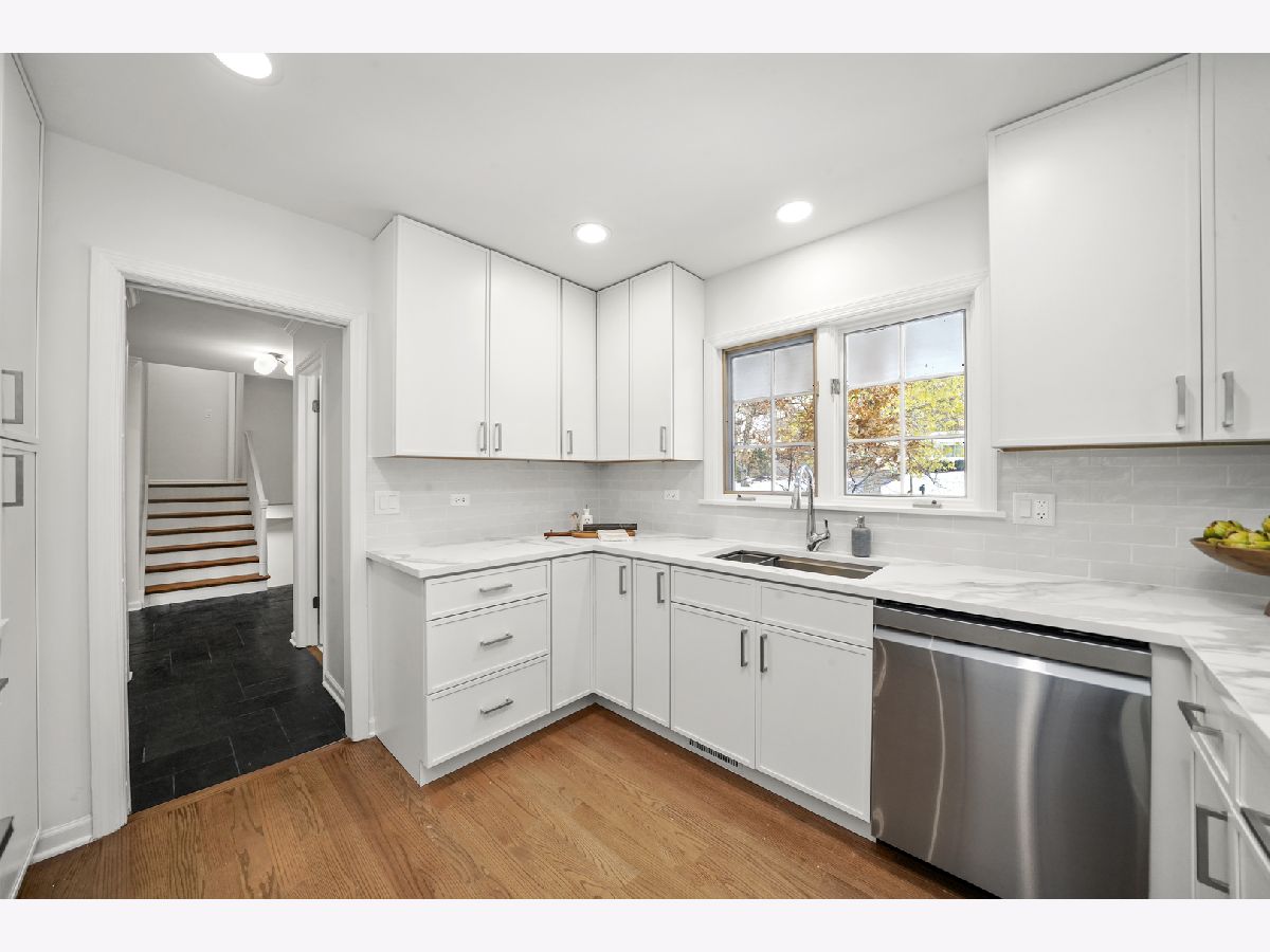 Offering over 3000 sq ft of finished and remodeled home. Nestled in the sought-after Whispering Oaks neighborhood of East Lake Forest is this beautifully renovated 5 bedroom, 2.5 bath home. The main level features a seamless flow anchored by a brand new kitchen with quartz countertops, custom thin shaker cabinetry, a pull out pantry, and chef's hood, along with a cozy coffee nook for early mornings. The adjoining dining area opens to a raised patio, perfect for entertaining or quiet evenings surrounded by mature trees. A spacious living room with a wood burning fireplace, gas starter and an oversized picture window frames stunning views of the private, fenced in half acre yard. Upstairs, four generous bedrooms easily accommodate queen or king beds, including a serene primary suite with dual vanities and a beautifully updated bath and large, glass shower walk-in shower. An additional new full, hallway bath features a 72-inch, dual sink, white oak vanity with tons of storage and modern finishes. Lower level has a great walk-out to the outdoor space right off the family room with a second cozy, wood burning fireplace and a brand new custom dry bar built-in with quartzite slab countertop and vein matching backsplash and beverage center, great for entertaining guests on game days and holidays. The lower level has a additional room for a home-office or a guest suite. Also inclidues, large laundry area with extra storage. The finished basement below adds even more versatility with a playroom, craft area, and workshop space, perfect for hobbies or recreation. Additional highlights include a new furnace and air conditioning, ample storage throughout, and a cedar closet for seasonal items. Just steps from Cherokee Elementary and minutes to downtown Lake Forest, the Metra, and Lake Michigan beaches, this home blends suburban tranquility with everyday convenience you'll love to take advantage of for Summer beach days.