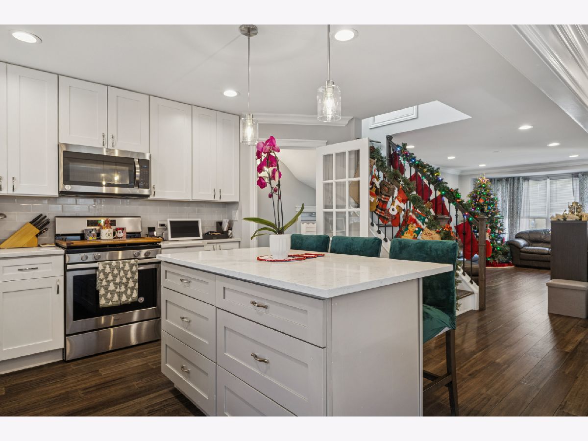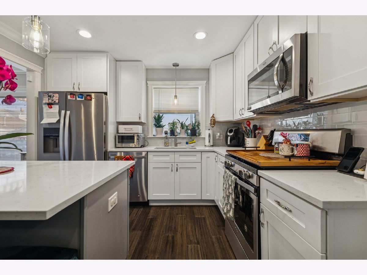 Welcome to 5241 S Melvina, a beautifully updated 2-story brick home in the heart of Garfield Ridge that truly has it all-space, style, and an ideal location. Thoughtfully rehabbed in 2018, this home features an inviting open-concept main level with brand new hardwood floors flowing through the sun-filled living and dining areas into a stunning chef's kitchen with white cabinetry, quartz countertops, stainless steel appliances, and a great layout for everyday living and entertaining. A striking main-level full bath with marble flooring adds a touch of luxury. The second level offers two comfortable bedrooms and another full bath, while the fully finished basement provides incredible additional living space with a large family room, wet bar, extra bedroom, full bathroom, and separate laundry room-perfect for guests, extended family, or a private retreat. Recessed lighting throughout enhances the modern feel, and the outdoor space is equally impressive with a new pergola, new privacy fence, and a 2-car garage. All of this in a prime Garfield Ridge location, just a short walk to schools, parks, and public transportation, and minutes to I-55 and Midway Airport.
