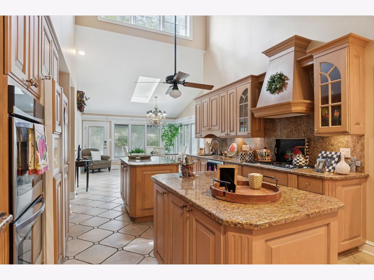 Welcome to this beautifully appointed home in sought-after North Downers Grove, tucked within a serene, wooded enclave just steps from Lyman Woods and moments from Oak Brook. Offering the perfect balance of privacy and convenience, this exceptional residence is minutes from premier shopping, top-rated schools, hospitals, and major expressways. Inside, timeless design meets modern sophistication. A traditional layout is enhanced by elegant formal living and dining spaces, while the designer kitchen serves as the heart of the home featuring dual islands, granite countertops, custom cabinetry, and an expansive walk-in pantry. The adjoining sunlit breakfast area, highlighted by a skylight, overlooks the backyard and West deck. The impressive family room is designed for both comfort and entertaining, showcasing hardwood floors, vaulted ceilings with skylights, a wet bar, built-in speakers, and a dedicated media closet. Sliding doors open to the East deck, seamlessly connecting to the West deck and creating expansive outdoor living and entertaining spaces. A versatile main-level office with fireplace and private entrance offers flexibility as a fifth bedroom, secondary living space, or private retreat. Upstairs, the luxurious primary suite is a true sanctuary, complete with a wall of windows, custom walk-in closet, cozy sitting area with fireplace, private balcony, and a newly remodeled spa-inspired bath featuring heated floors. Two additional bedrooms are thoughtfully designed with private half baths and a shared, interconnected shower, offering both privacy and functionality. A convenient second-floor laundry closet enhances everyday living. Additional features include central vacuum and full prewiring for phone, internet, and cable. Sophisticated, spacious, and surrounded by nature, this is a home designed for both everyday comfort and exceptional entertaining. **Chandelier in kitchen dining area is excluded.
