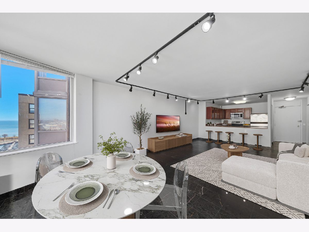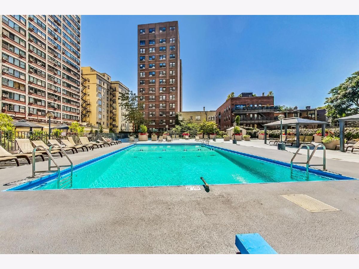 Welcome to The Heritage in East Lakeview. This beautifully updated and spacious one-bedroom residence offers breathtaking panoramic views of Lake Michigan, the harbor, the city skyline, and even Wrigley Field. The thoughtfully designed kitchen features stainless steel appliances, 42inch wood cabinetry, granite countertops, and a convenient breakfast bar-perfect for both everyday living and entertaining. The oversized living and dining area provides exceptional flexibility with ample space for a home office setup and formal dining. Hardwood flooring flows throughout the home, complemented by fresh paint and abundant closet space, including a large walk-in closet. The bathroom showcases modern finishes, including stylish tile work, updated lighting, a contemporary vanity, and elegant finishes Residents of The Heritage enjoy a full suite of amenities, including a spacious sundeck with grills and pergola seating, an outdoor pool, fitness center, library/reading room, on-site laundry, dry cleaning services, and 24-hour door staff. Monthly assessments provide exceptional value and include heat, air conditioning, cable, and internet. Ideally located in vibrant East Lakeview, this home is just moments from the lakefront, parks, bike and running paths, express buses, the Red Line, and all the dining, shopping, and nightlife of Wrigleyville. Experience the perfect blend of comfort, convenience, and spectacular views-schedule your showing today.