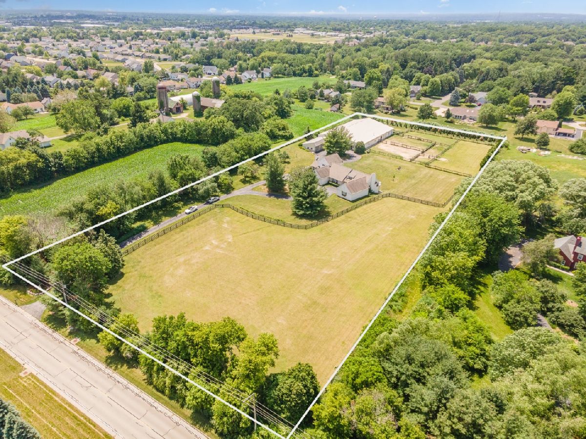 FIRST TIME ON THE MARKET! EXQUISITE 5 ACRE EQUESTRIAN ESTATE FEATURING AN ELEGANT CUSTOM RANCH HOME, MODERN BARN with INDOOR ARENA and CARRIAGE HOUSE STYLE STORAGE BUILDING... Private rural setting but just minutes from Rock Cut State Park; 1 mile to I90 interchange; 60 minutes to O'Hare and Madison, WI; 90 minutes to downtown Chicago. Nestled away, hidden by mature trees and set well back from the road, this home offers privacy, tranquility and security. Custom built with thoughtful design at every turn; this property welcomes your family and horses. It's a rare blend of country living with city convenience. Stepping through the front door, you are welcomed to an atmosphere of warmth and understated luxury. It boasts more than 4,400 square feet of finished space offering a total of 4 bedrooms, 4.5 bathrooms, 4-car garage and a partially finished, full, lower level. Soaring ceilings, expansive windows, and gleaming hardwood floors invite natural light and expansive views into every room. Grand Great Room is anchored by a charming fireplace, this open concept living space flows seamlessly into the gourmet kitchen and dining area, creating an ideal environment for entertaining or quiet evenings at home. The Chef's Kitchen is outfitted with custom cabinetry, top-of-the-line appliances, island and Corian countertops. Steps down a spacious hallway featuring built-in bookcases you'll find a large Family Room with wood beamed vaulted ceilings, a soaring stone fireplace open to a 2nd kitchen and dining area on Mexican tiled floors. The large 1st floor primary suite features two full, his and her bathrooms, walk-in-closet and sitting area with a panoramic window seat overlooking the large backyard, paddocks and pastures. A large optional primary suite is on the lofted 2nd floor. Additional bedrooms are generously sized, each with ensuite bathrooms walk-in closets and lovely views. The lower level is tastefully finished with the 4th bedroom, bathroom and a second large family room. Outdoor Living options include the raised balcony, ground level expansive deck and shaded comfort on the lower-level covered patio. Whether you are a professional rider, amateur, or simply dream of becoming one, this estate offers plenty of options to train, hack out or just enjoy and pamper your equine friends. EQUINE AMENITIES were designed for function, convenience, comfort and safety. They include: 7 STALL BARN / AISLE is 20 x 135 (Stalls are 12x12 with rubber mats and individual lights), climate-controlled rooms include two offices, tack room and half bath. The wash rack offers hot and cold water. The INDOOR ARENA is 60x135 with 16 foot sidewalls and sand footing. The CARRIAGE HOUSE STYLE HAY BARN is 28 x 48; perfectly suited for hay, equipment and farm supplies with its 2 overhead doors, concrete floors and electric. (36 ft are enclosed and the remaining 12 ft functions as a trailer port). With a classic look of a Kentucky horse farm, 4-BOARD BLACK WOOD FENCING encloses multiple pastures that allow for thoughtful rotation and healthy grazing while 4 paddocks feature all-weather footing and no climb fence. The farm is an oasis with close proximity to shops, dining, healthcare and interstate as well as show facilities and parks with equestrian trails. It's a beautiful property in all seasons! It's a place to nurture your love for horses, connect with nature, and savor the joys of gracious country living. This estate is more than a property...it's a lifestyle! Additional Features include High-speed internet and security system in both the house and barn. Other Potential Uses include small scale boarding, hobby farm supporting other animals or sustainable agriculture, event hosting: clinics, gatherings or intimate celebrations, serene family retreat or multi-generational living, hobbyist / collector, contractor or other home-based business with ample storage and office space.