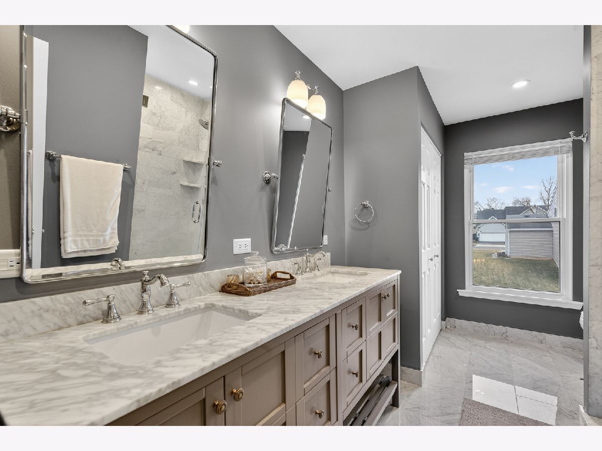Beautifully updated 4 bed, 3.5 bath home with a 3-car tandem attached garage and a fully finished basement! This move-in ready home has been extensively remodeled since 2017. The main level offers a spacious and functional layout with a family room featuring a fireplace that flows seamlessly into the updated kitchen. The bright white kitchen includes stainless steel appliances, a large island with breakfast bar, table space, and a pantry. A formal living room, separate dining room, half bath, and a remodeled laundry room with sink and storage cabinets complete the main floor. All four bedrooms are located on the second level. The primary suite features dual closets including a walk-in closet and a stunning en-suite bathroom with dual vanity, walk-in shower, and separate soaking tub. Three additional bedrooms share a well-appointed hall bath with dual vanity and walk-in shower. The finished basement expands the living space with a large recreation room, office, and a third full bath with walk-in shower and sauna. Enjoy outdoor living in the backyard with a brick paver patio-perfect for relaxing or entertaining. Conveniently located close to shopping, dining, multiple parks, and with easy access to I-90. Zoned to highly rated District 220 schools.