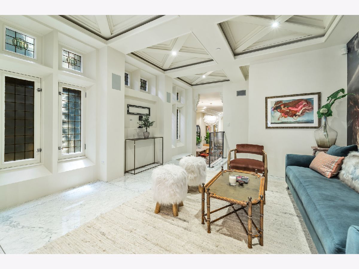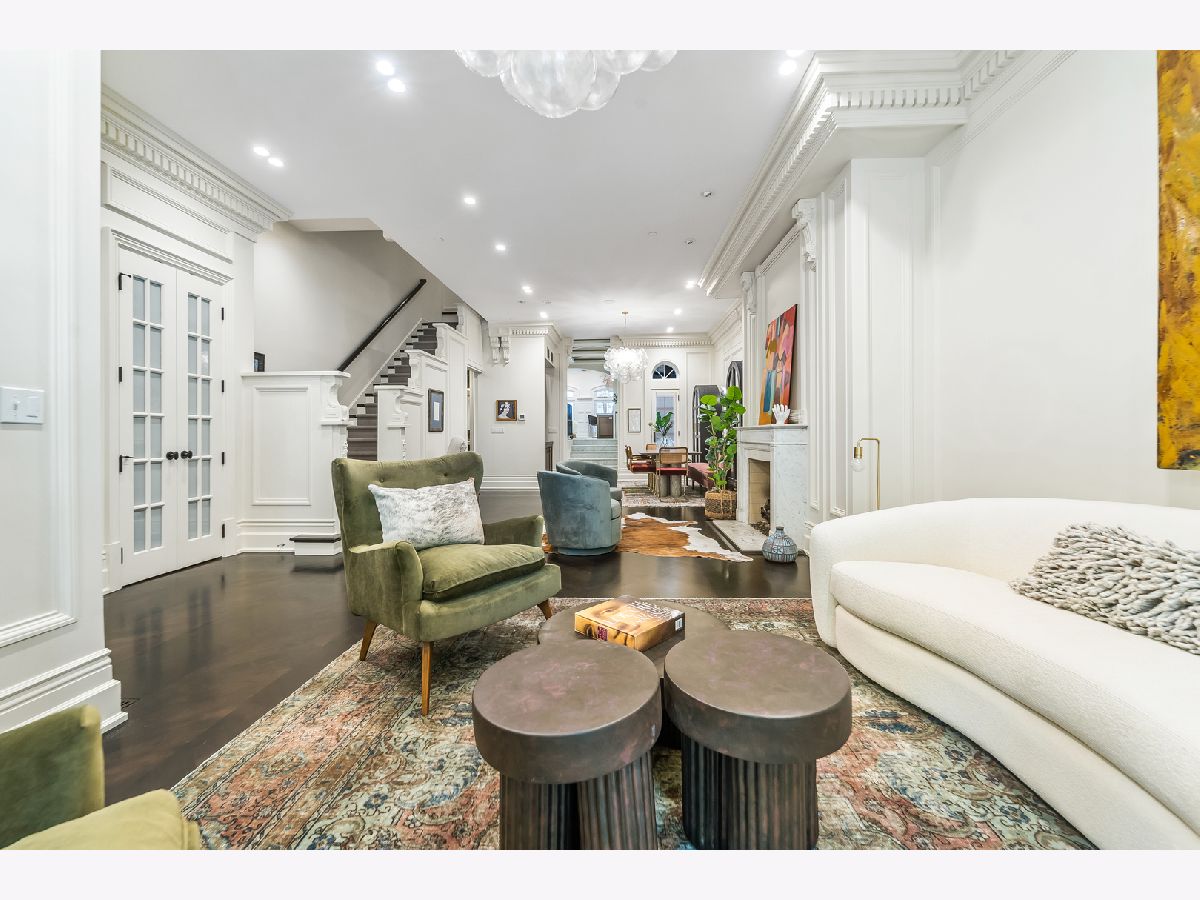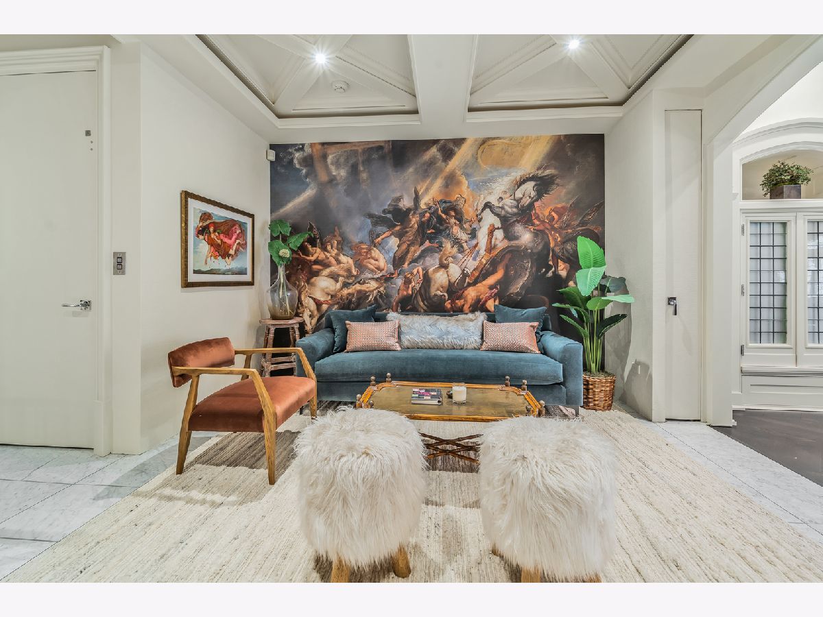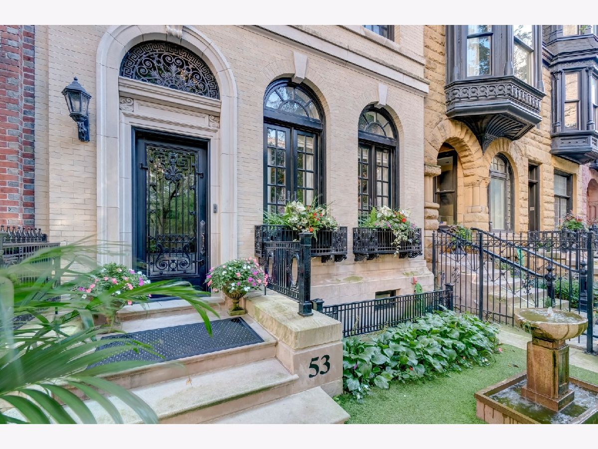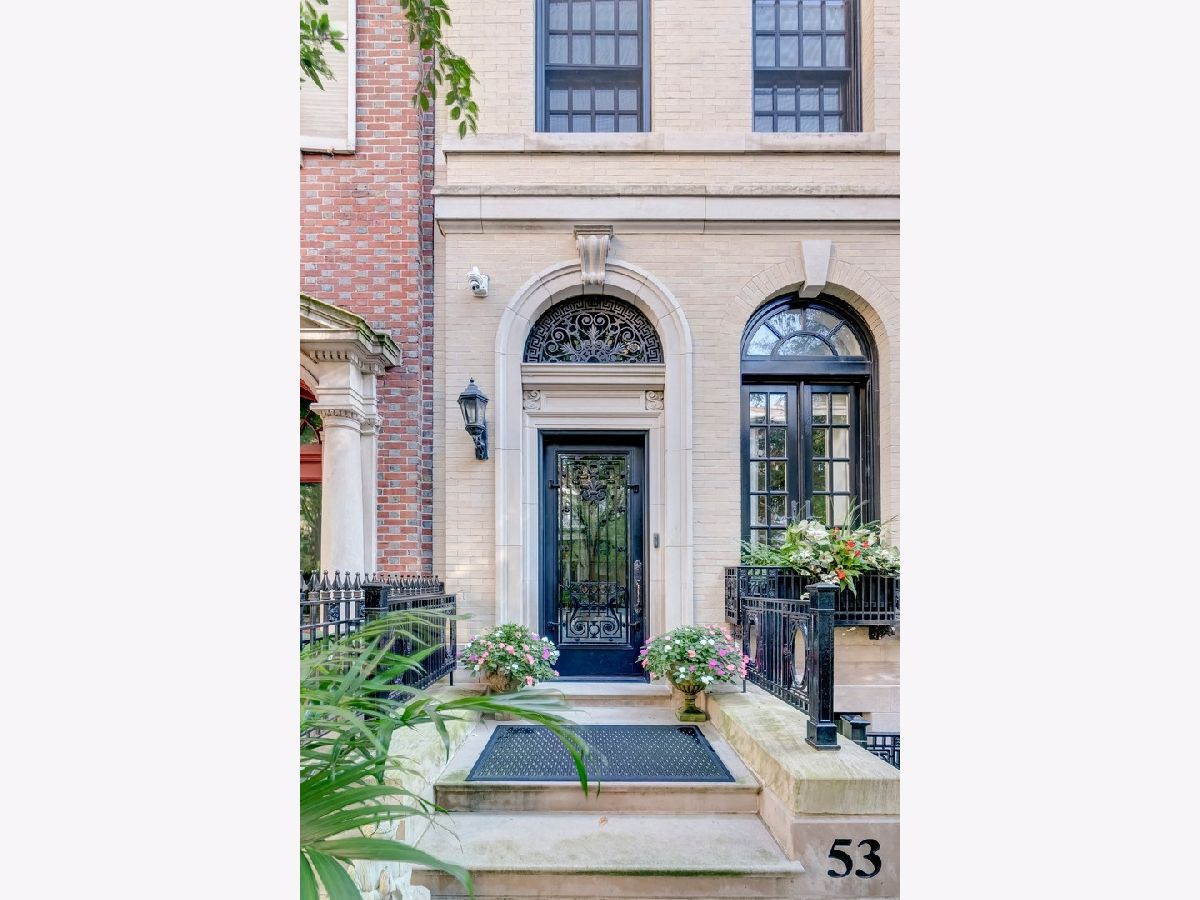 Classic in style and transitional in design, 53 E. Division St. is a 7,500-square-foot, 5 bed/9 bath luxury home in the heart of the Gold Coast with four private outdoor spaces and a rare attached garage. One of the only residential works by famed architect Jarvis Hunt, located steps from Oak Street Beach and moments from the Mag Mile, the renovated Beaux-Arts exterior is a masterpiece of ornate ironwork and limestone, accented by beautiful landscaping and a fountain. Inside, the main level begins with a foyer that teases the world-class finishes that can be found throughout, including moments of expertly preserved original marble and millwork details. The impressively spacious, open-concept living/dining room sets the stage for elevated entertaining, and features 12'-high ceilings, an extremely rare 20'-wide footprint for the Gold Coast, herringbone hardwood floors, French doors that open to Juliet balconies, and the first of three wood-burning fireplaces. The dining space flaunts beautiful built-ins and marble stairs that ascend into a handsome family room with coffered ceiling and a custom bar center. Most recently, this home's gorgeous chef's kitchen underwent a complete renovation courtesy of KitchenLab Interiors and features custom cabinetry, natural stone countertops, professional-grade appliances, a long island with dine-up seating, and character from a limestone fireplace and more French doors. Four distinctive, design-forward en-suite bedrooms are spread across the second and third levels, including one that's styled as a gorgeous owners' den, another that's designed as a light and bright home office with a custom wet bar, and one with a private patio (5'11" x 21'3"). The spectacularly spacious primary suite boasts arched windows, a sitting area, bespoke built-ins, a custom walk-in closet with styling and beverage stations, and a newly renovated marble bath with dual vanity, soaking tub, and a glass-encased shower. The top level is an indoor/outdoor entertainer's paradise, including two incredible rooftop spaces: one with a full professional-grade kitchen, dining and lounge spaces, and a fire table (22'4" x 26'5"); the other with a luxe, open-air spa (12'4" x 29'3"). Better still, the lower level features a temperature-controlled wine room, a large recreation/media room, the fifth en-suite bedroom (perfect for extended-stay guests or an au pair as it has its own entrance), and access to the home's fully finished, attached garage with a bonus refrigerator and wine fridge. Additional callout details include multiple half-baths, full-home automation via a Control4 system, state-of-the-art mechanicals including an all-floors elevator, designer wallcoverings and statement lighting throughout, an upstairs laundry room, a lower level mudroom, and abundant storage. Walking distance to world-class dining and shopping, top schools, and the Division Street Farmers' Market, 53 E. Division St. is turnkey luxury with the very best of Chicago right outside your front door.