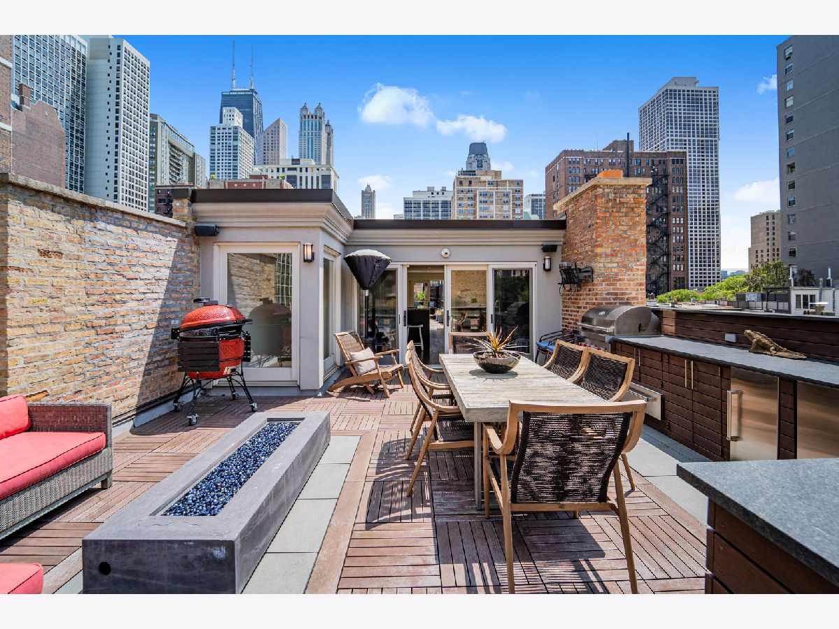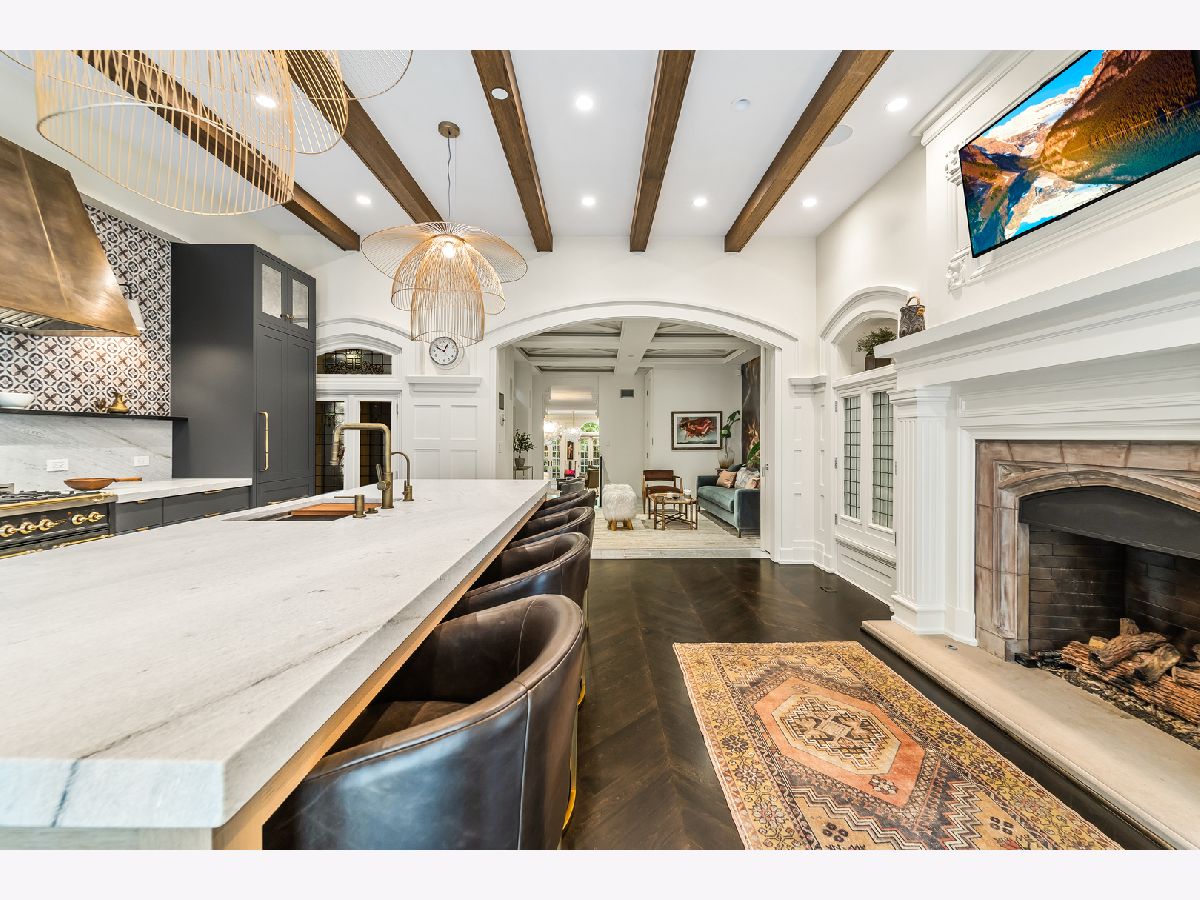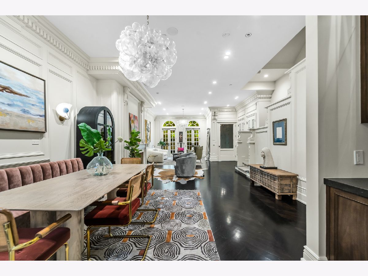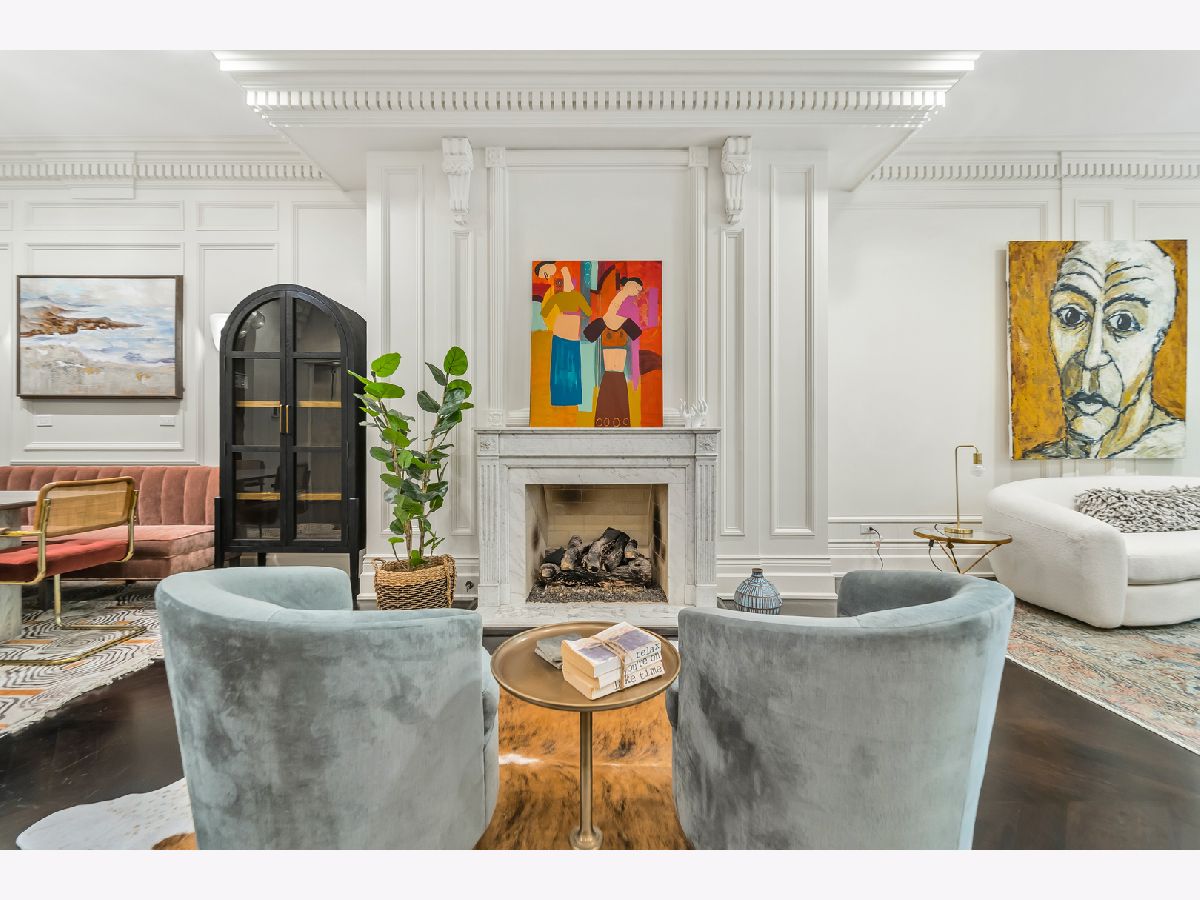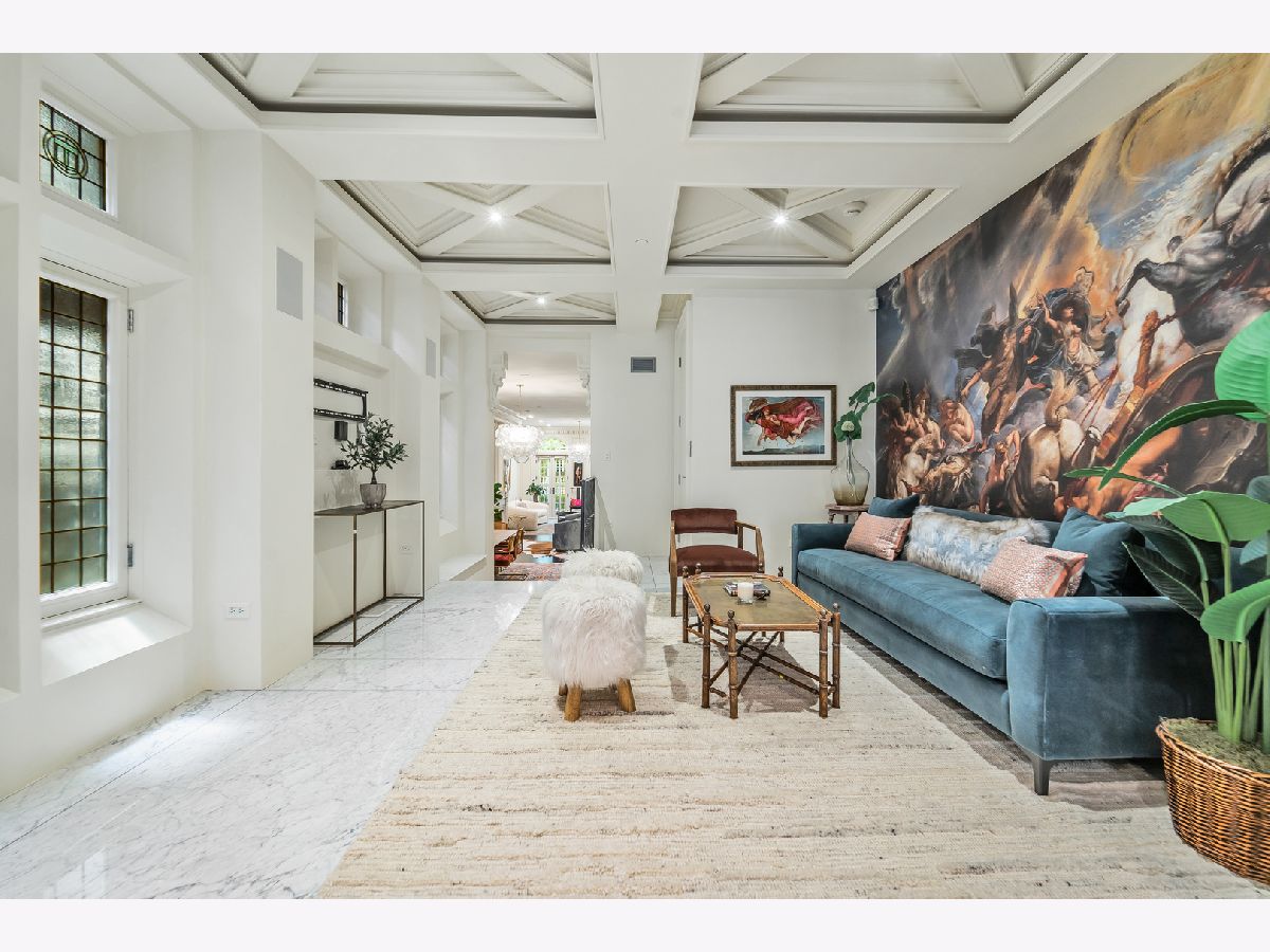 Classic in style and transitional in design, 53 E. Division St. is a 7,500-square-foot, 5 bed/9 bath luxury home in the heart of the Gold Coast with four private outdoor spaces and a rare attached garage. One of the only residential works by famed architect Jarvis Hunt, located steps from Oak Street Beach and moments from the Mag Mile, the renovated Beaux-Arts exterior is a masterpiece of ornate ironwork and limestone, accented by beautiful landscaping and a fountain. Inside, the main level begins with a foyer that teases the world-class finishes that can be found throughout, including moments of expertly preserved original marble and millwork details. The impressively spacious, open-concept living/dining room sets the stage for elevated entertaining, and features 12'-high ceilings, an extremely rare 20'-wide footprint for the Gold Coast, herringbone hardwood floors, French doors that open to Juliet balconies, and the first of three wood-burning fireplaces. The dining space flaunts beautiful built-ins and marble stairs that ascend into a handsome family room with coffered ceiling and a custom bar center. Most recently, this home's gorgeous chef's kitchen underwent a complete renovation courtesy of KitchenLab Interiors and features custom cabinetry, natural stone countertops, professional-grade appliances, a long island with dine-up seating, and character from a limestone fireplace and more French doors. Four distinctive, design-forward en-suite bedrooms are spread across the second and third levels, including one that's styled as a gorgeous owners' den, another that's designed as a light and bright home office with a custom wet bar, and one with a private patio (5'11" x 21'3"). The spectacularly spacious primary suite boasts arched windows, a sitting area, bespoke built-ins, a custom walk-in closet with styling and beverage stations, and a newly renovated marble bath with dual vanity, soaking tub, and a glass-encased shower. The top level is an indoor/outdoor entertainer's paradise, including two incredible rooftop spaces: one with a full professional-grade kitchen, dining and lounge spaces, and a fire table (22'4" x 26'5"); the other with a luxe, open-air spa (12'4" x 29'3"). Better still, the lower level features a temperature-controlled wine room, a large recreation/media room, the fifth en-suite bedroom (perfect for extended-stay guests or an au pair as it has its own entrance), and access to the home's fully finished, attached garage with a bonus refrigerator and wine fridge. Additional callout details include multiple half-baths, full-home automation via a Control4 system, state-of-the-art mechanicals including an all-floors elevator, designer wallcoverings and statement lighting throughout, an upstairs laundry room, a lower level mudroom, and abundant storage. Walking distance to world-class dining and shopping, top schools, and the Division Street Farmers' Market, 53 E. Division St. is turnkey luxury with the very best of Chicago right outside your front door.