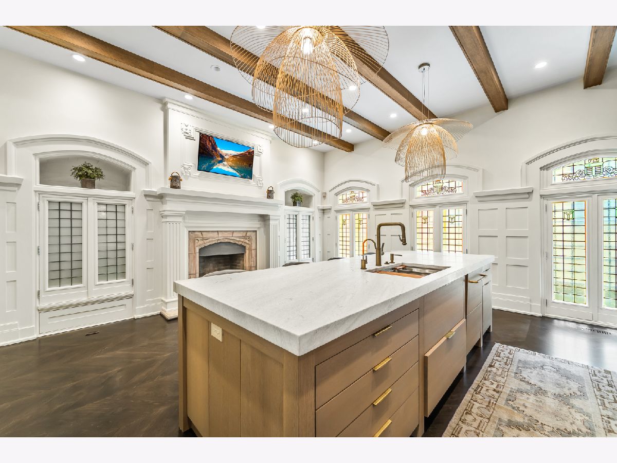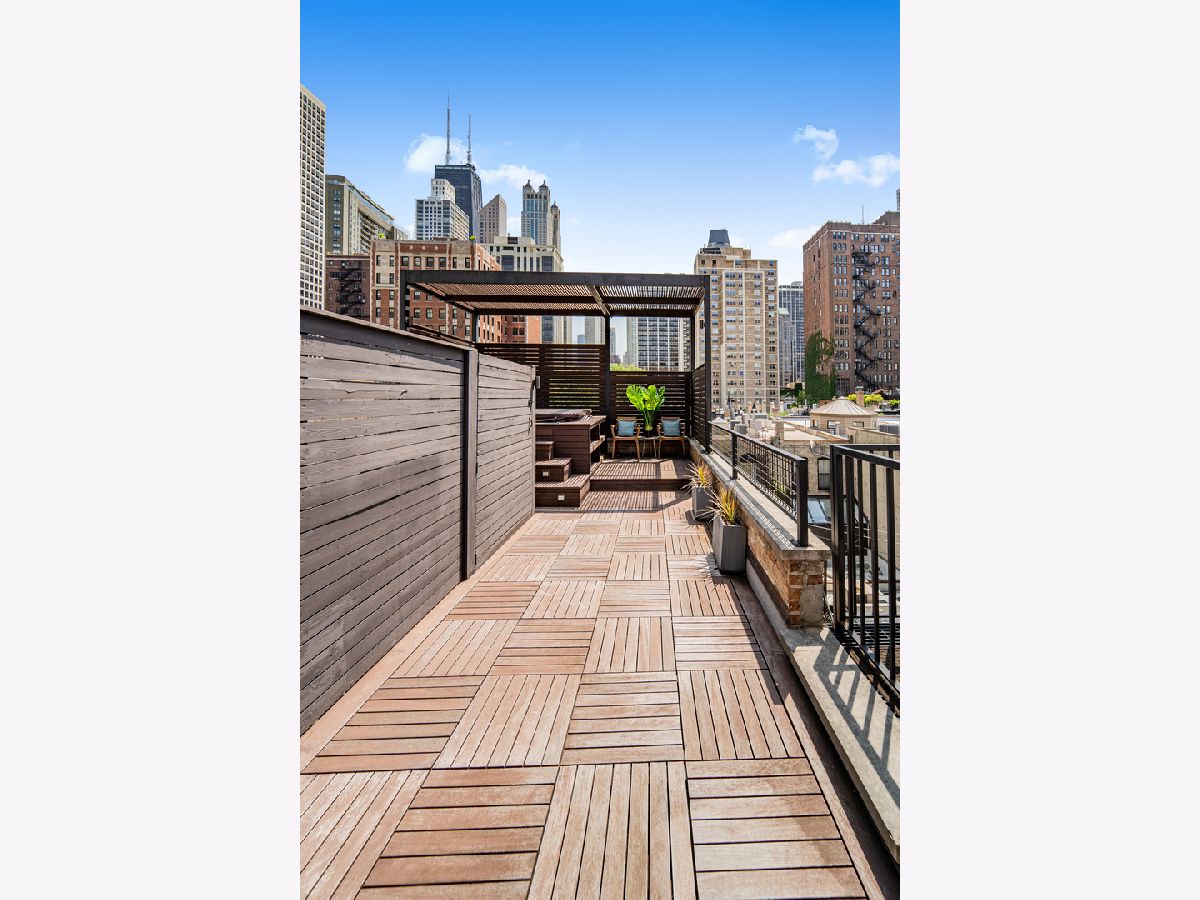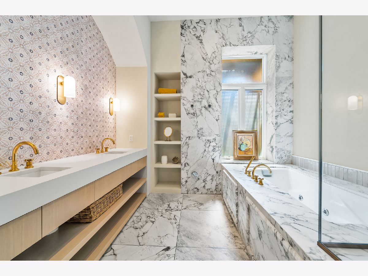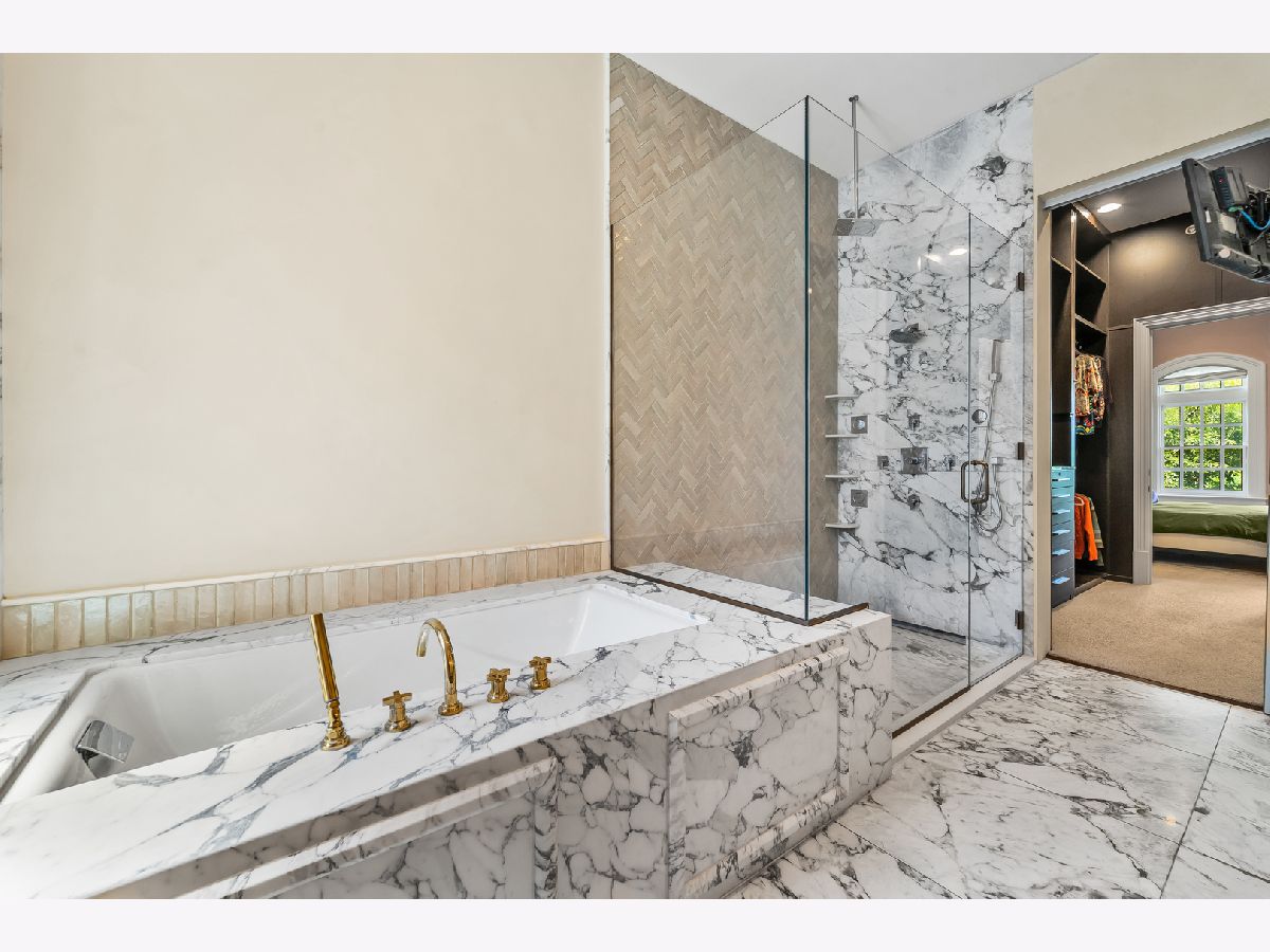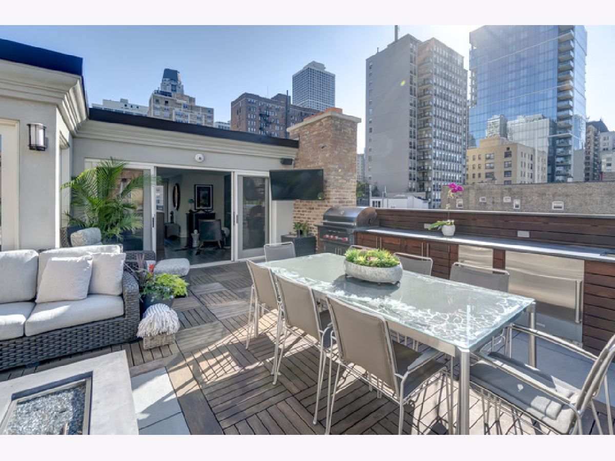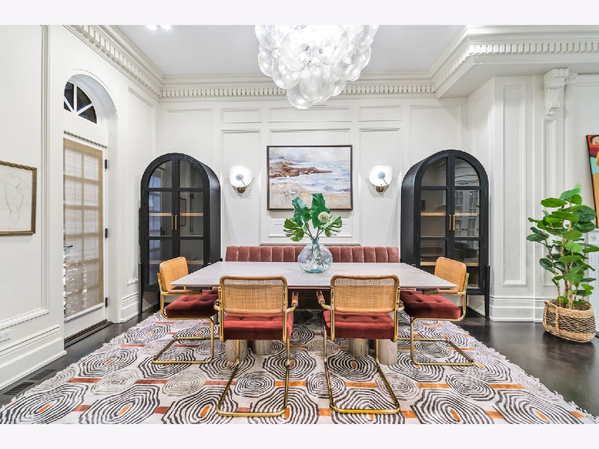 Classic in style and transitional in design, 53 E. Division St. is a 7,500-square-foot, 5 bed/9 bath luxury home in the heart of the Gold Coast with four private outdoor spaces and a rare attached garage. One of the only residential works by famed architect Jarvis Hunt, located steps from Oak Street Beach and moments from the Mag Mile, the renovated Beaux-Arts exterior is a masterpiece of ornate ironwork and limestone, accented by beautiful landscaping and a fountain. Inside, the main level begins with a foyer that teases the world-class finishes that can be found throughout, including moments of expertly preserved original marble and millwork details. The impressively spacious, open-concept living/dining room sets the stage for elevated entertaining, and features 12'-high ceilings, an extremely rare 20'-wide footprint for the Gold Coast, herringbone hardwood floors, French doors that open to Juliet balconies, and the first of three wood-burning fireplaces. The dining space flaunts beautiful built-ins and marble stairs that ascend into a handsome family room with coffered ceiling and a custom bar center. Most recently, this home's gorgeous chef's kitchen underwent a complete renovation courtesy of KitchenLab Interiors and features custom cabinetry, natural stone countertops, professional-grade appliances, a long island with dine-up seating, and character from a limestone fireplace and more French doors. Four distinctive, design-forward en-suite bedrooms are spread across the second and third levels, including one that's styled as a gorgeous owners' den, another that's designed as a light and bright home office with a custom wet bar, and one with a private patio (5'11" x 21'3"). The spectacularly spacious primary suite boasts arched windows, a sitting area, bespoke built-ins, a custom walk-in closet with styling and beverage stations, and a newly renovated marble bath with dual vanity, soaking tub, and a glass-encased shower. The top level is an indoor/outdoor entertainer's paradise, including two incredible rooftop spaces: one with a full professional-grade kitchen, dining and lounge spaces, and a fire table (22'4" x 26'5"); the other with a luxe, open-air spa (12'4" x 29'3"). Better still, the lower level features a temperature-controlled wine room, a large recreation/media room, the fifth en-suite bedroom (perfect for extended-stay guests or an au pair as it has its own entrance), and access to the home's fully finished, attached garage with a bonus refrigerator and wine fridge. Additional callout details include multiple half-baths, full-home automation via a Control4 system, state-of-the-art mechanicals including an all-floors elevator, designer wallcoverings and statement lighting throughout, an upstairs laundry room, a lower level mudroom, and abundant storage. Walking distance to world-class dining and shopping, top schools, and the Division Street Farmers' Market, 53 E. Division St. is turnkey luxury with the very best of Chicago right outside your front door.