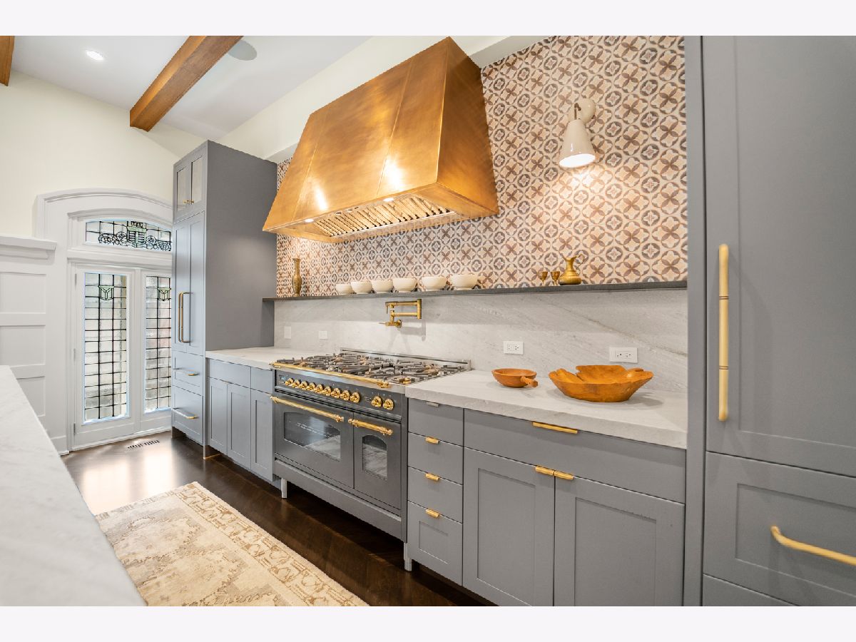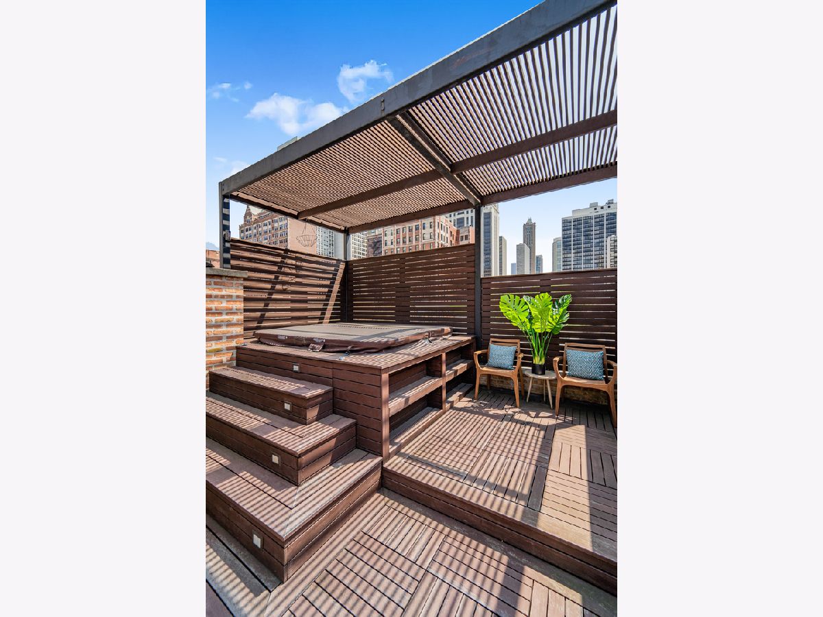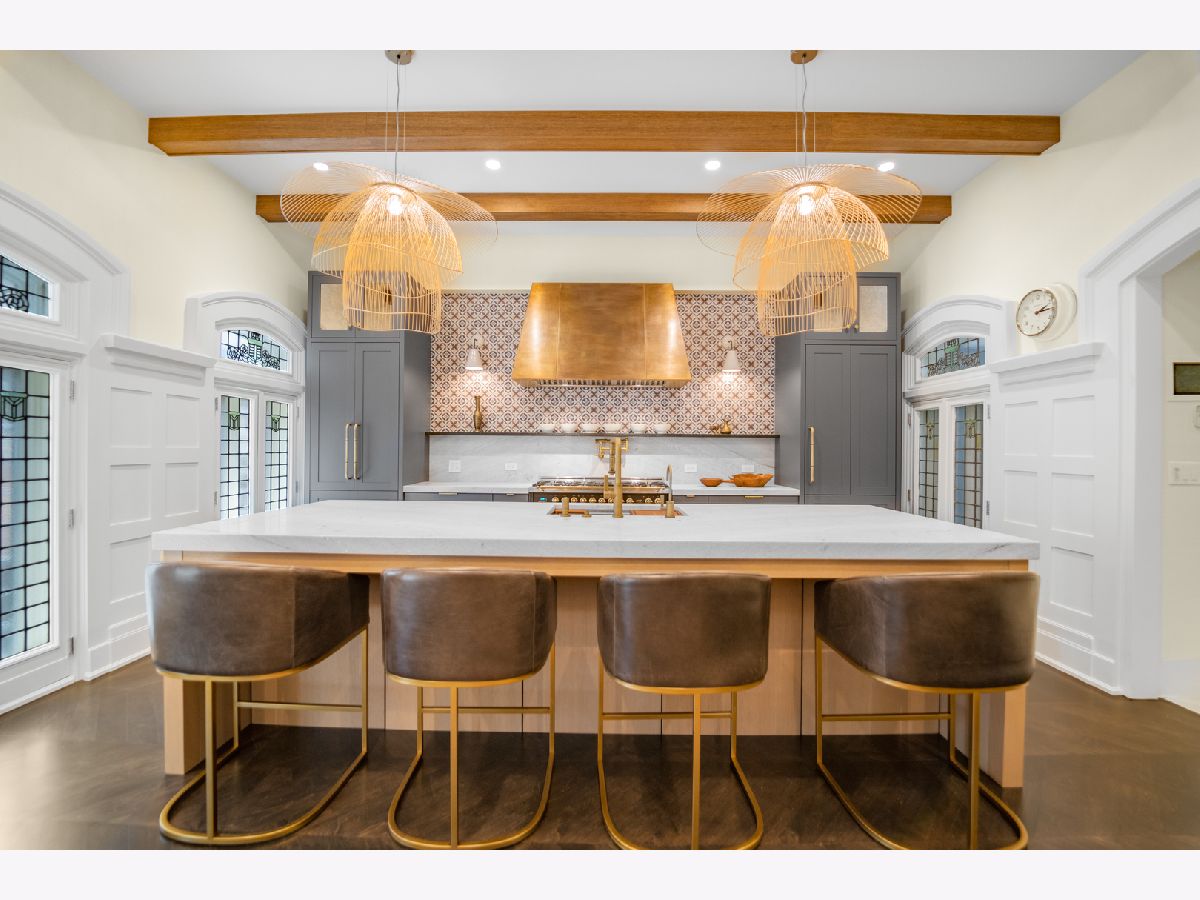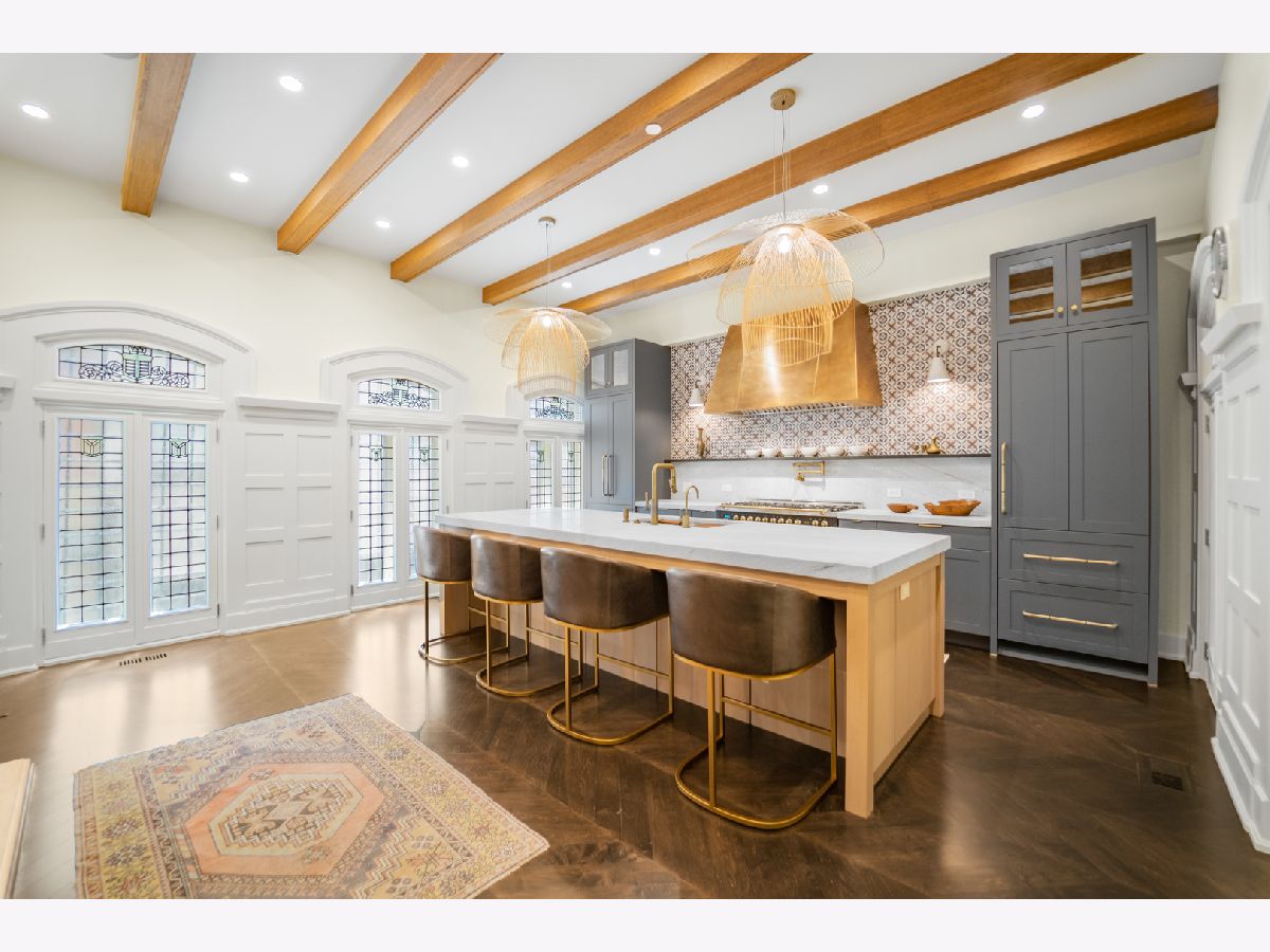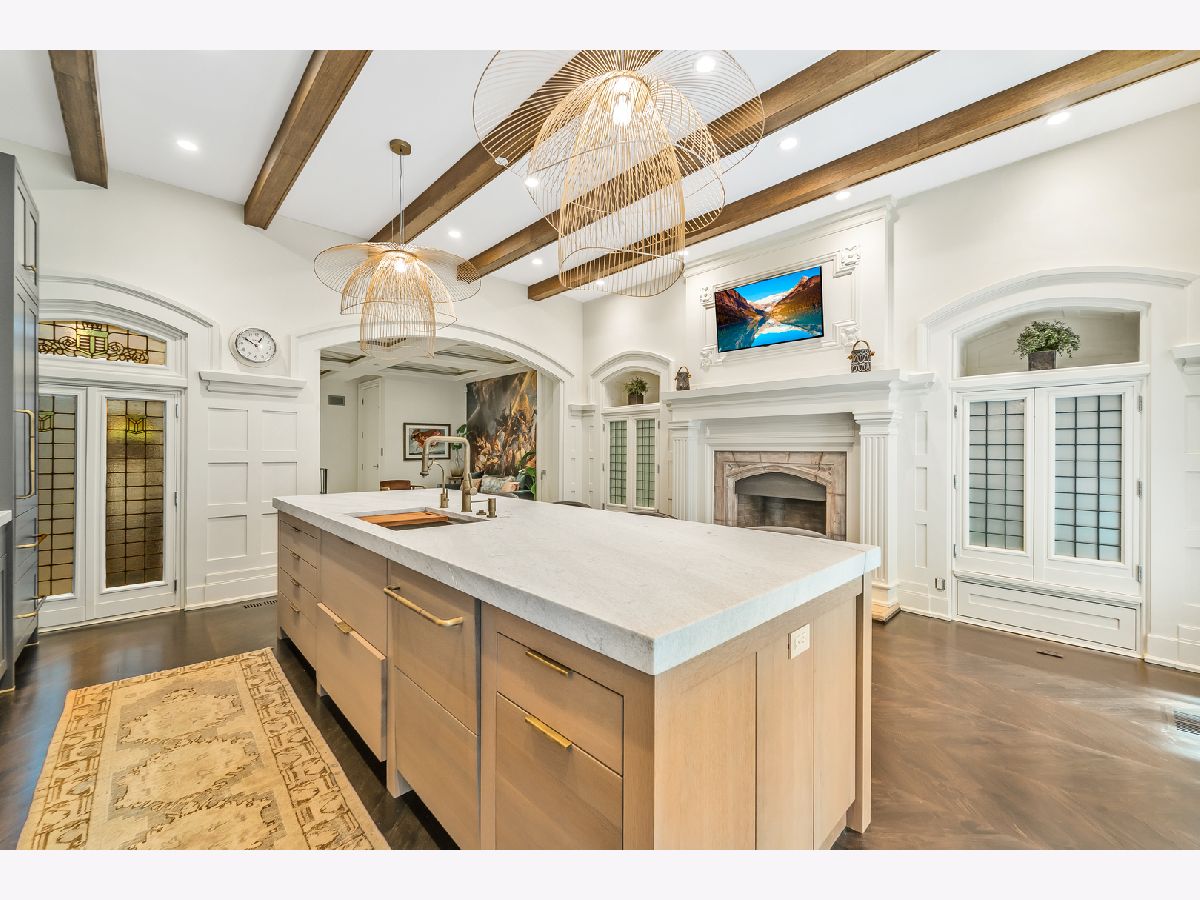 Classic in style and transitional in design, 53 E. Division St. is a 7,500-square-foot, 5 bed/9 bath luxury home in the heart of the Gold Coast with four private outdoor spaces and a rare attached garage. One of the only residential works by famed architect Jarvis Hunt, located steps from Oak Street Beach and moments from the Mag Mile, the renovated Beaux-Arts exterior is a masterpiece of ornate ironwork and limestone, accented by beautiful landscaping and a fountain. Inside, the main level begins with a foyer that teases the world-class finishes that can be found throughout, including moments of expertly preserved original marble and millwork details. The impressively spacious, open-concept living/dining room sets the stage for elevated entertaining, and features 12'-high ceilings, an extremely rare 20'-wide footprint for the Gold Coast, herringbone hardwood floors, French doors that open to Juliet balconies, and the first of three wood-burning fireplaces. The dining space flaunts beautiful built-ins and marble stairs that ascend into a handsome family room with coffered ceiling and a custom bar center. Most recently, this home's gorgeous chef's kitchen underwent a complete renovation courtesy of KitchenLab Interiors and features custom cabinetry, natural stone countertops, professional-grade appliances, a long island with dine-up seating, and character from a limestone fireplace and more French doors. Four distinctive, design-forward en-suite bedrooms are spread across the second and third levels, including one that's styled as a gorgeous owners' den, another that's designed as a light and bright home office with a custom wet bar, and one with a private patio (5'11" x 21'3"). The spectacularly spacious primary suite boasts arched windows, a sitting area, bespoke built-ins, a custom walk-in closet with styling and beverage stations, and a newly renovated marble bath with dual vanity, soaking tub, and a glass-encased shower. The top level is an indoor/outdoor entertainer's paradise, including two incredible rooftop spaces: one with a full professional-grade kitchen, dining and lounge spaces, and a fire table (22'4" x 26'5"); the other with a luxe, open-air spa (12'4" x 29'3"). Better still, the lower level features a temperature-controlled wine room, a large recreation/media room, the fifth en-suite bedroom (perfect for extended-stay guests or an au pair as it has its own entrance), and access to the home's fully finished, attached garage with a bonus refrigerator and wine fridge. Additional callout details include multiple half-baths, full-home automation via a Control4 system, state-of-the-art mechanicals including an all-floors elevator, designer wallcoverings and statement lighting throughout, an upstairs laundry room, a lower level mudroom, and abundant storage. Walking distance to world-class dining and shopping, top schools, and the Division Street Farmers' Market, 53 E. Division St. is turnkey luxury with the very best of Chicago right outside your front door.