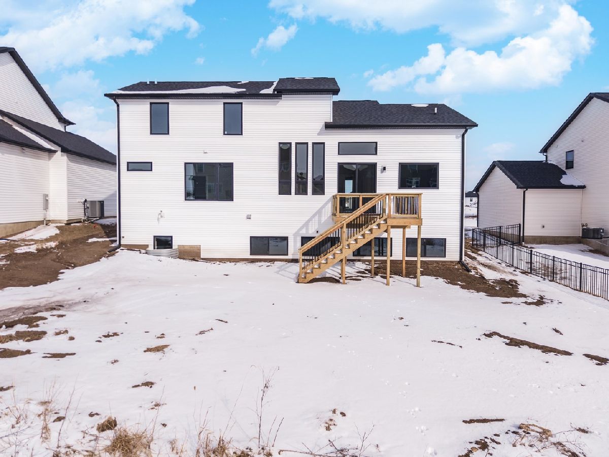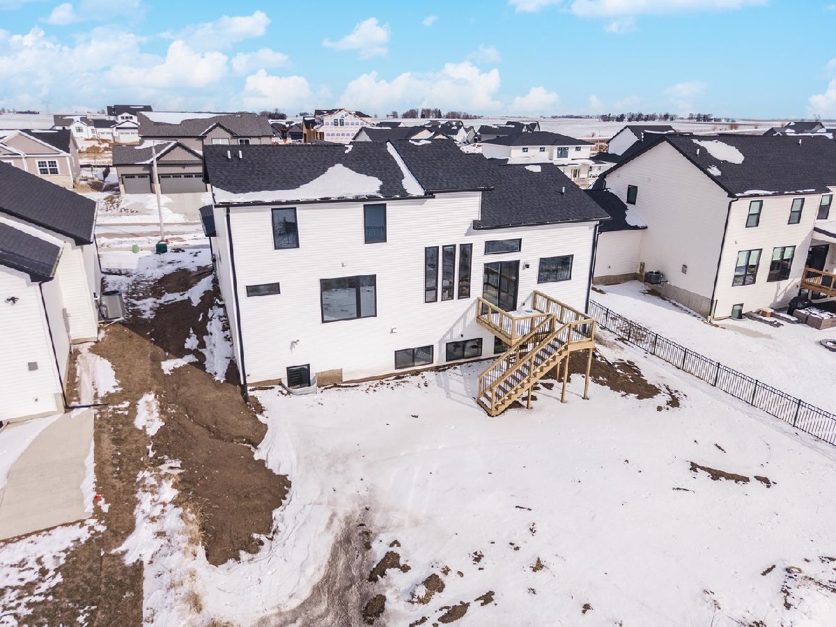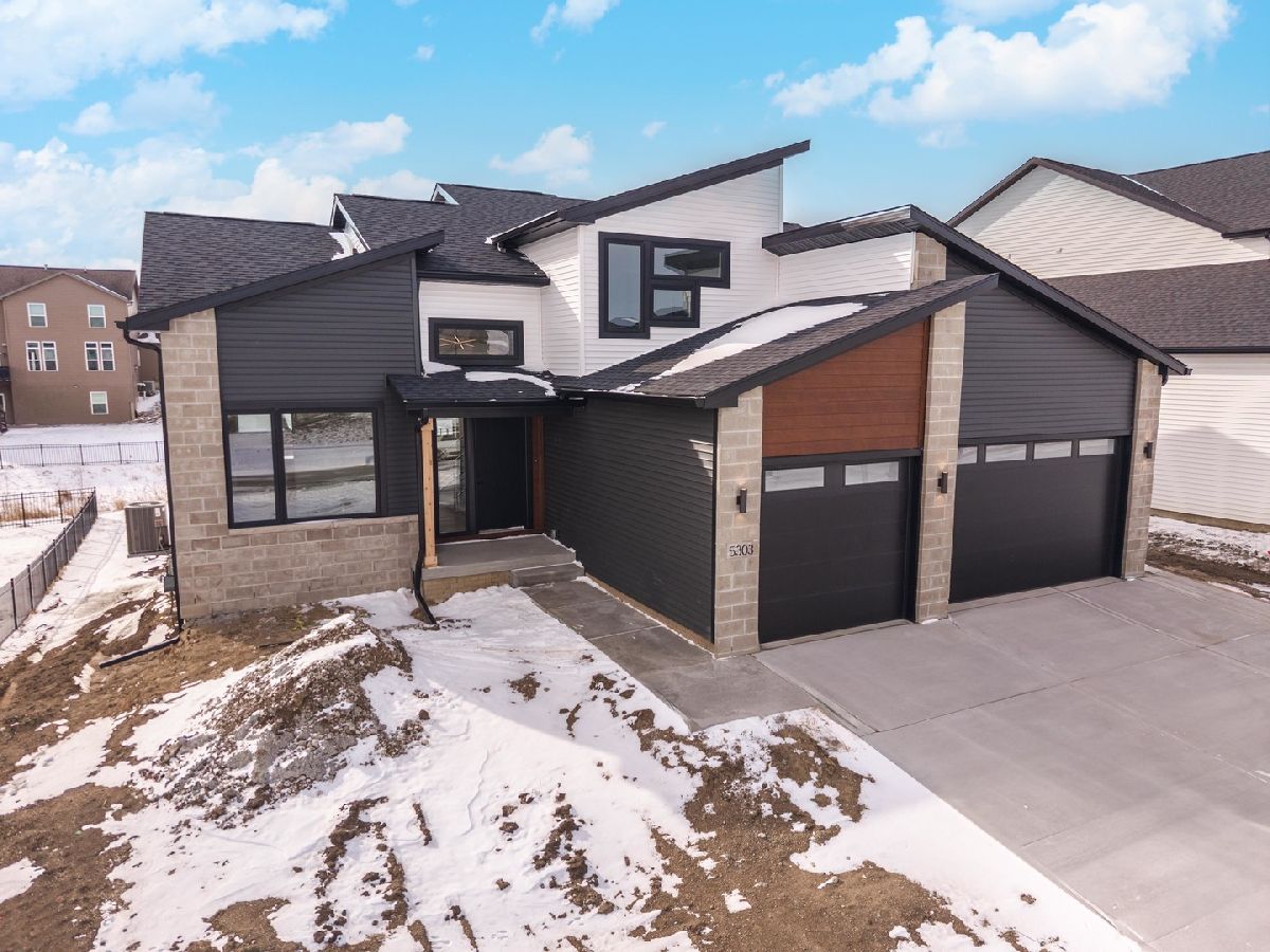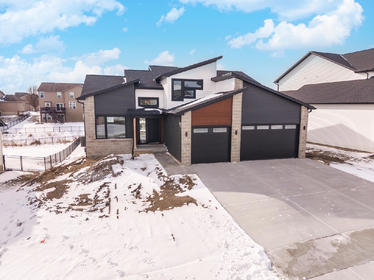 Built by Trunk Bay, this contemporary 1-1/2-story home is located in the sought-after Grove at Kickapoo Creek subdivision and offers a clean, modern design with quality finishes throughout. The striking exterior combines LP siding, sharp architectural lines, and a welcoming entry. The main level features an open layout with abundant natural light, wide-plank hardwood flooring, and seamless flow between the kitchen, dining, and living areas. The kitchen is a true centerpiece with rich wood cabinetry, quartz countertops, stainless steel appliances, and island. Adjacent dining and living spaces flow seamlessly to the back deck through large sliding glass doors, extending your living space outdoors. Upstairs, spacious bedrooms and bathrooms provide comfort and functionality. The primary bathroom highlights a tiled walk-in shower with glass enclosure and sleek black fixtures. Situated in a growing neighborhood, this home offers modern style, thoughtful design, and the quality craftsmanship Trunk Bay is known for.