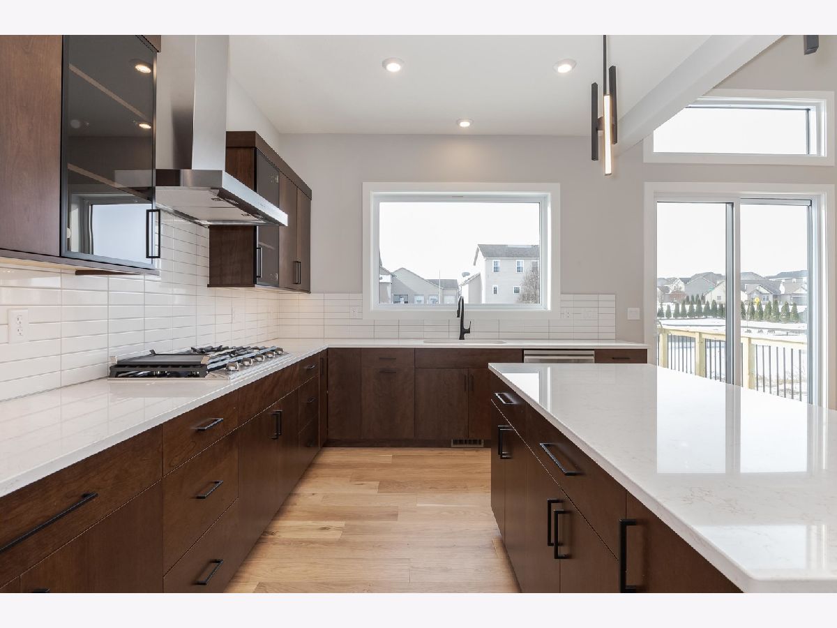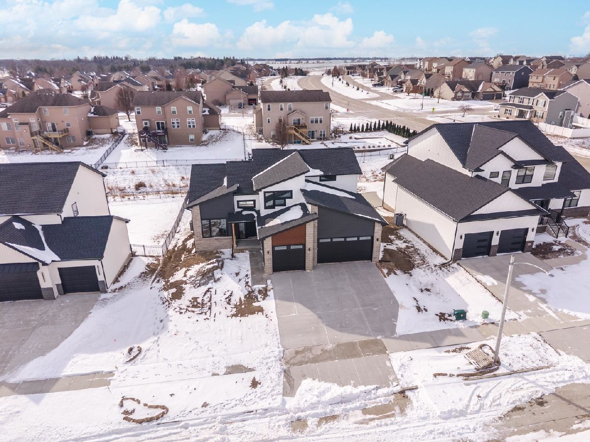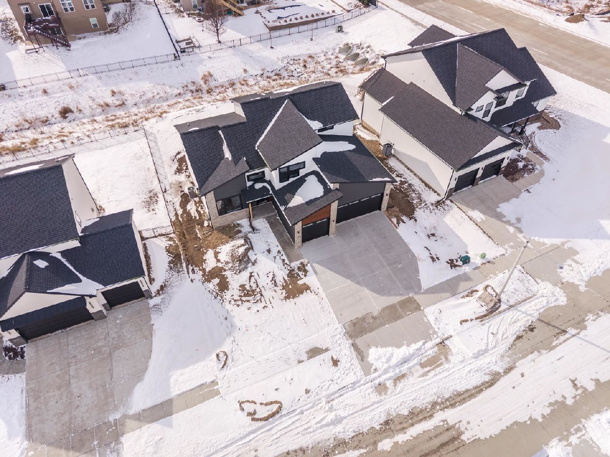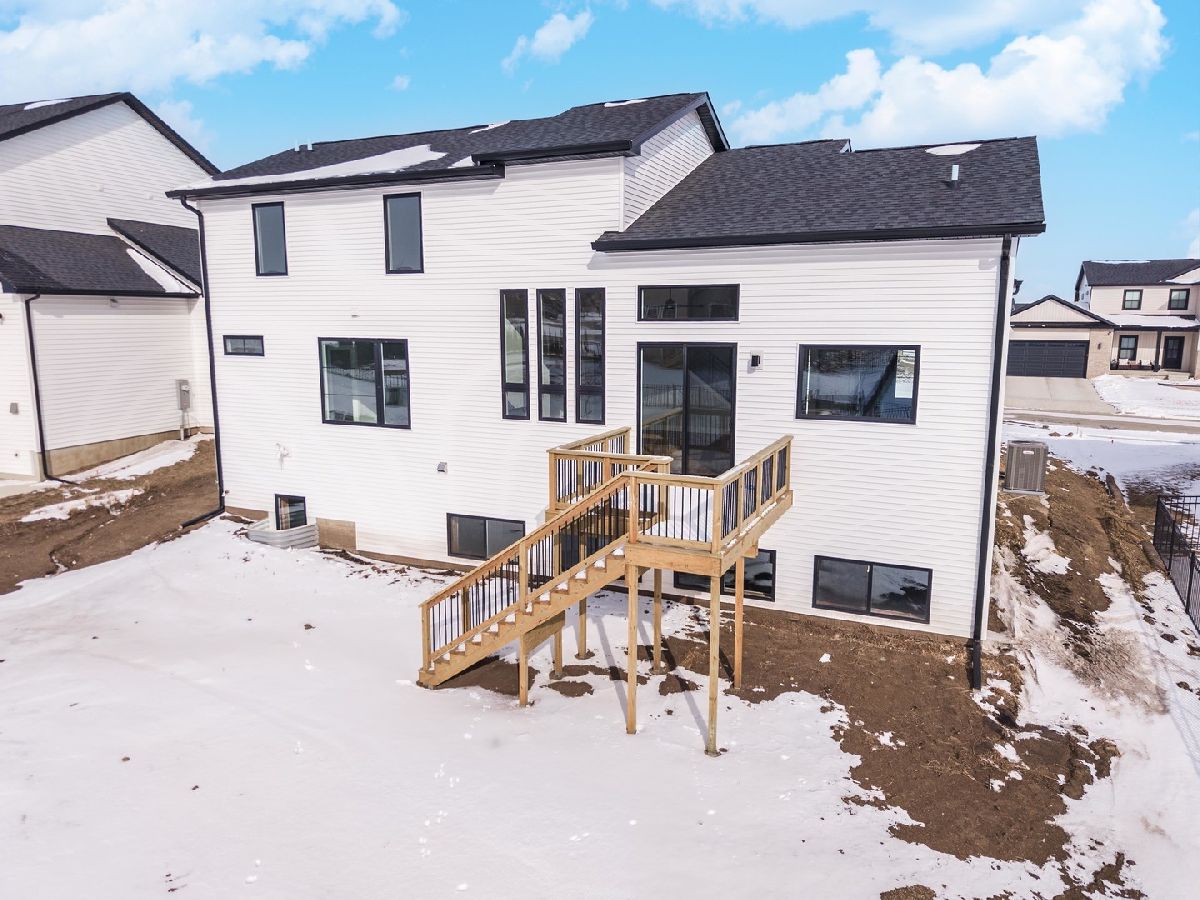 Built by Trunk Bay, this contemporary 1-1/2-story home is located in the sought-after Grove at Kickapoo Creek subdivision and offers a clean, modern design with quality finishes throughout. The striking exterior combines LP siding, sharp architectural lines, and a welcoming entry. The main level features an open layout with abundant natural light, wide-plank hardwood flooring, and seamless flow between the kitchen, dining, and living areas. The kitchen is a true centerpiece with rich wood cabinetry, quartz countertops, stainless steel appliances, and island. Adjacent dining and living spaces flow seamlessly to the back deck through large sliding glass doors, extending your living space outdoors. Upstairs, spacious bedrooms and bathrooms provide comfort and functionality. The primary bathroom highlights a tiled walk-in shower with glass enclosure and sleek black fixtures. Situated in a growing neighborhood, this home offers modern style, thoughtful design, and the quality craftsmanship Trunk Bay is known for.