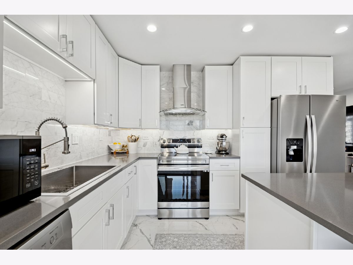 Completely remodeled 3 bedroom ranch backing up to a quiet forest preserve/park. Nothing to do here but move into this tastefully-updated home with high attention to detail. As soon as you enter you are greeted by the open living room space, new pre-finished plank flooring, and double-wide entry to the kitchen area where you have expansive views through the large picture window to the private backyard with covered porch/deck area and fenced-in yard. This home offers ultimate comfort featuring heated kitchen marble tile, inviting island area, Quartz counters, convenient mudroom from the garage, and extra storage/utility room off the garage. The bathroom is modernized with floor-to-ceiling marble, chic vanity and lighting, and walk-in shower. This is the ultimate retreat home with the extra-large backyard area offering ultimate privacy. New high-speed fiber available. Recently poured driveway, and a large 2-car attached garage provides plenty of parking. So much is new including: patio concrete & deck, epoxy floor in garage, new electrical panel & wiring, new pre-finished hardwood plank flooring, kitchen plumbing, picture window, doors, recessed lighting, dimmers, trims, and washer/dryer. Within close proximity of Lake Street amenities & shopping, highways, dog park, and Metra station. ACT FAST!