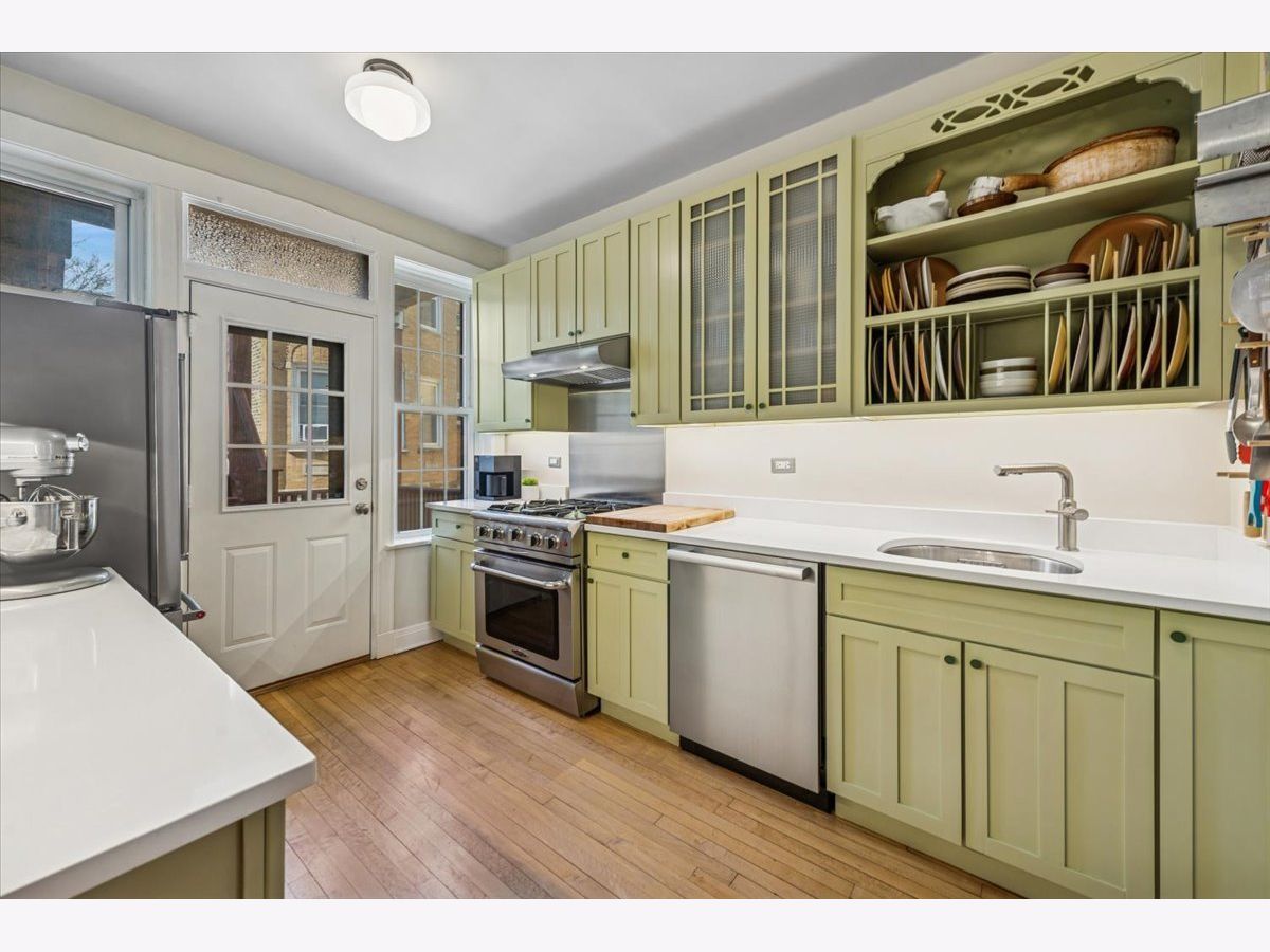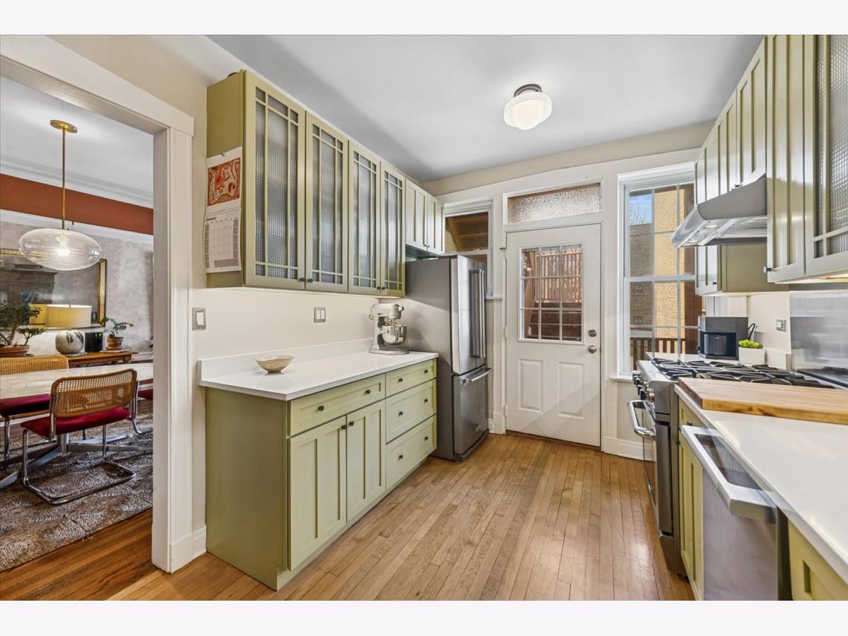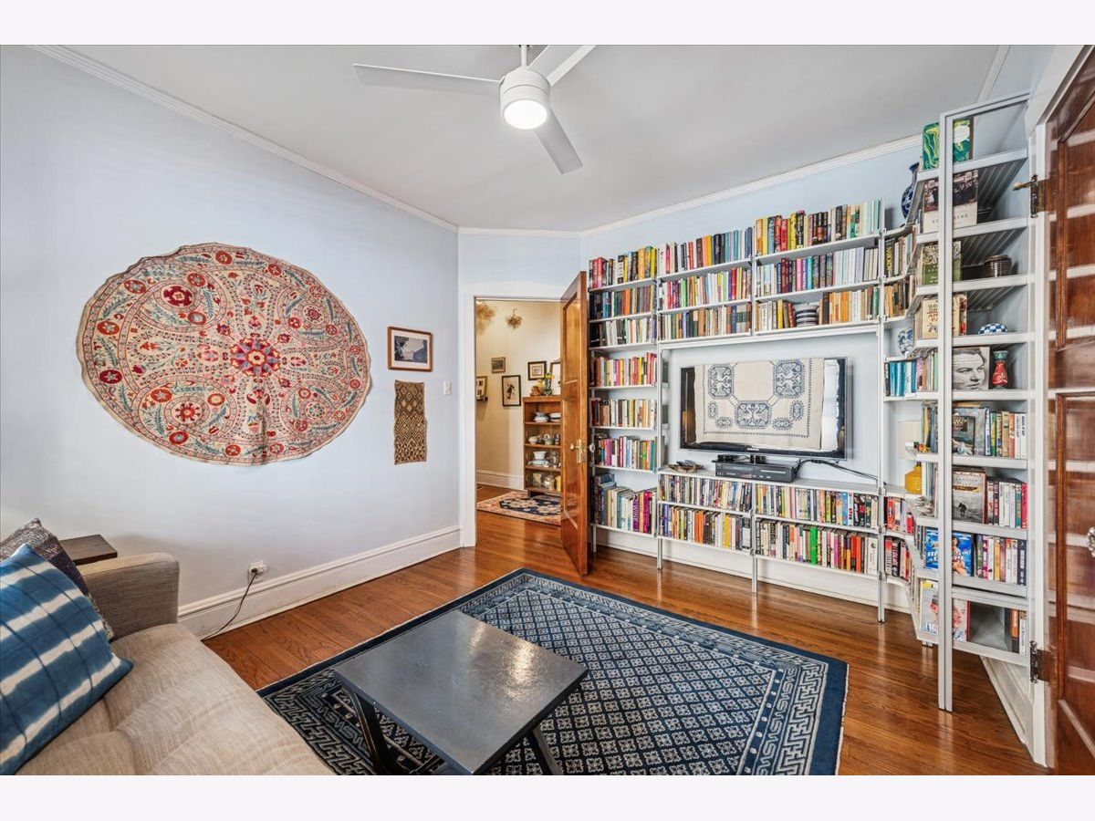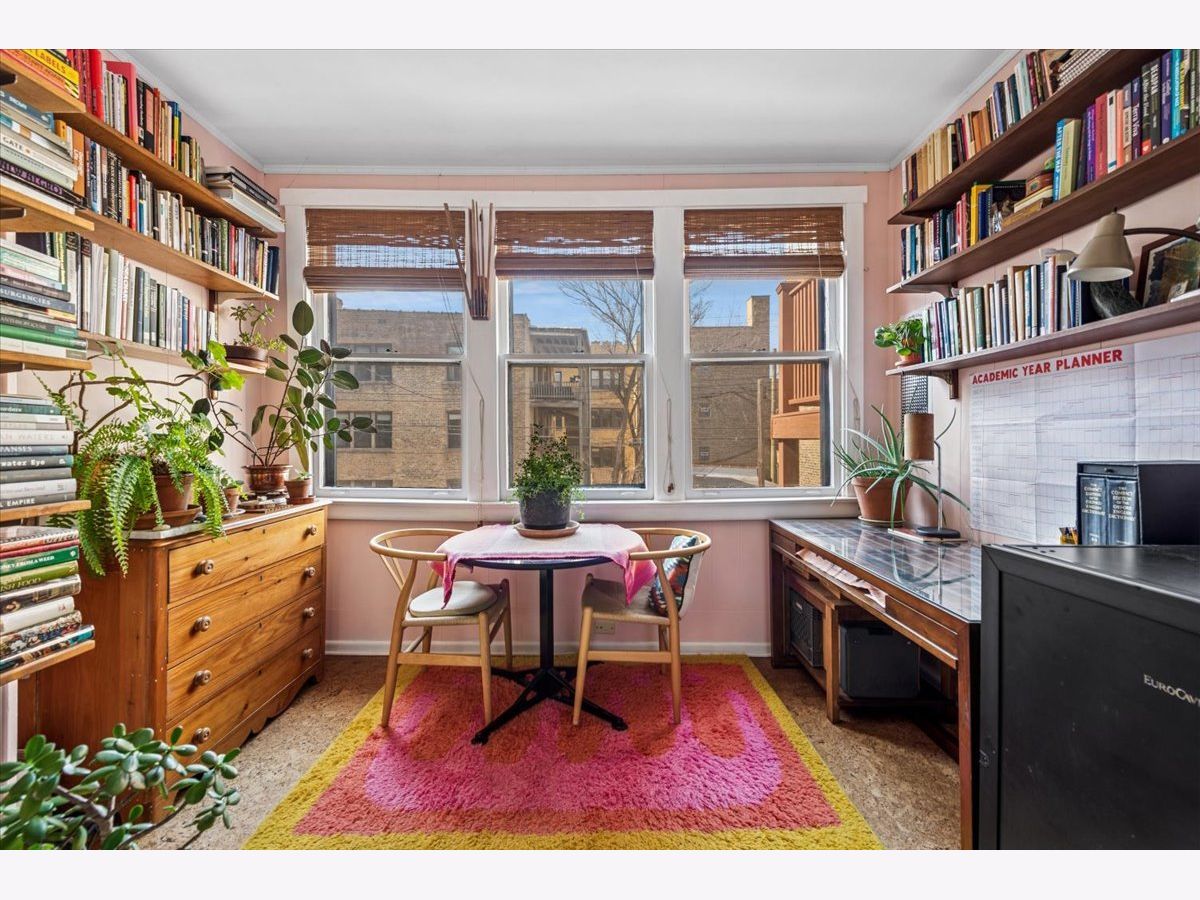 Nestled on the edge of the highly sought after Lakewood Balmoral neighborhood in Andersonville, this spacious, 2BR plus den/office condo features an oversized living room with fireplace and built-in shelving, an adjacent sunroom with airy tree-top views, a separate dining room which could also function as a great room and a versatile den that makes the perfect office. This home offers the hard-to-find combination of authentic vintage charm with all the modern touches you'd want. Lovely original details like hardwood floors, trim and molding and original built-in kitchen hutch are complemented by a thoughtfully updated kitchen featuring quartz countertops, stainless-steel appliances and in-unit laundry as well. Sitting in an A+ location that is just steps from all the wonderful restaurants, bars, coffee shops and boutique shopping along Clark Street, the Red Line Berwyn stop and only a short distance to the the lakefront as well, this location simply couldn't be better. All this with a beautiful shared backyard patio, intimate private deck space off the kitchen and additional private storage space plus even more common storage space in the basement. Heat is included in monthly assessment. Very easy street parking right in front of building. Seller wishes to excludes attached bookcases from the sale of this property as they wish to take them with to their next home.