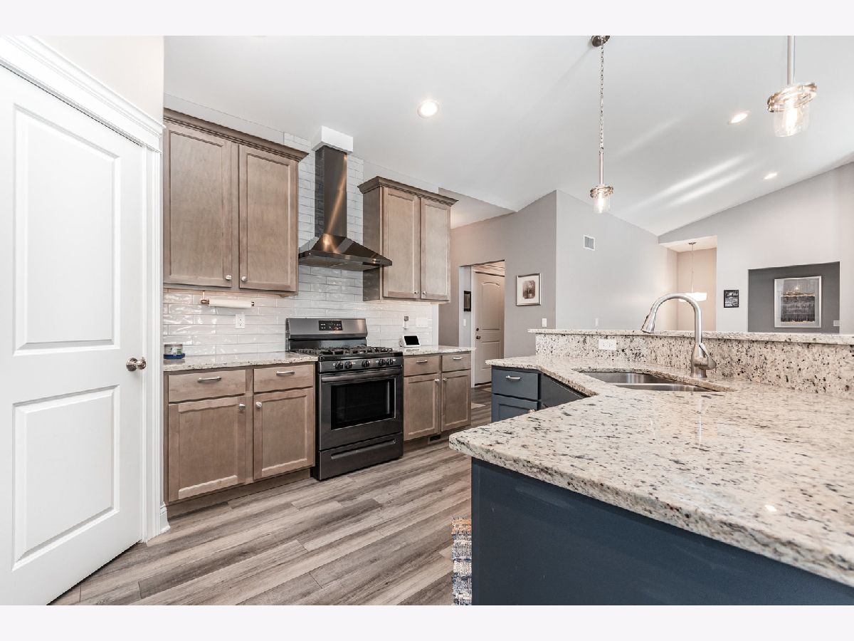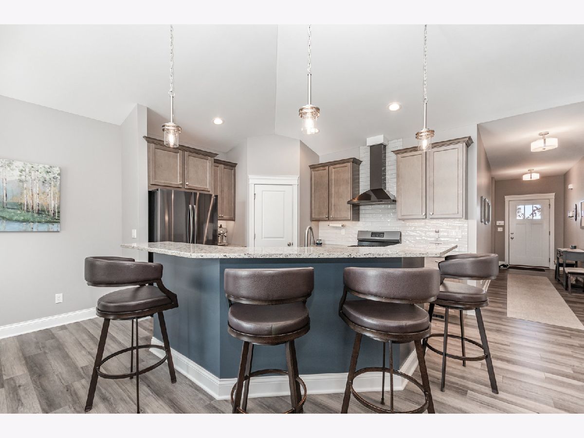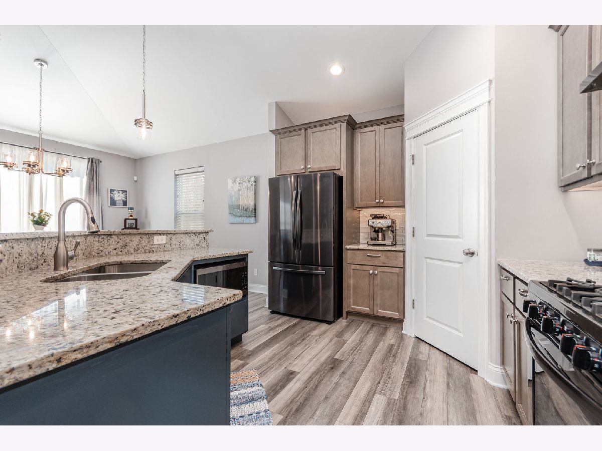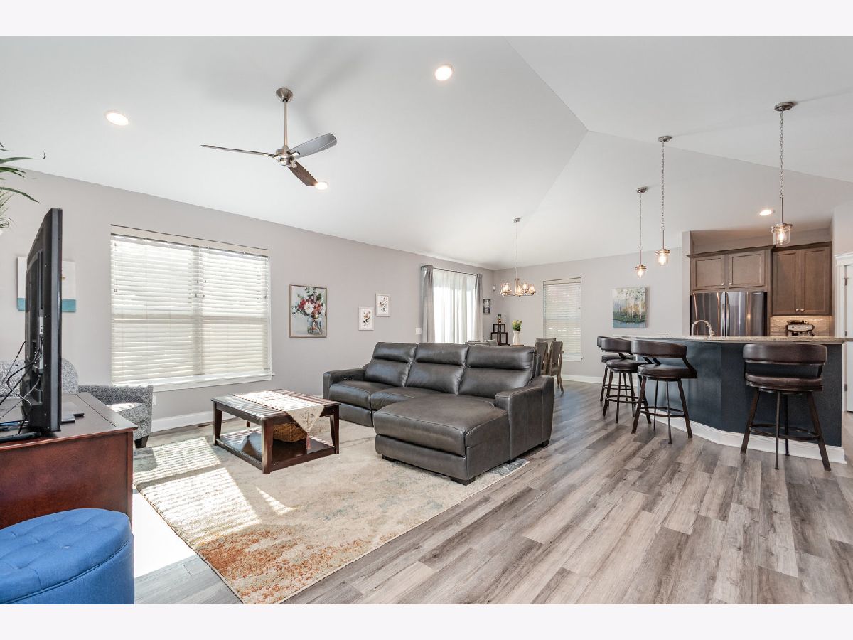 Built by Silverthorne Homes in 2021, this stunning Halsted model offers modern style, comfort, and functionality-all in one perfect layout. Featuring 3 bedrooms, 2 baths, a 3-car garage, and a full basement, this home truly has it all. Step inside and you'll find two spacious bedrooms and a full bath at the front of the home. Continue into the heart of the house-a bright, open-concept kitchen and great room designed for today's lifestyle. The kitchen features 42" cabinetry, granite countertops, black stainless steel appliances, a pantry, and a large island with seating that overlooks the inviting great room. The adjoining dining area creates a seamless flow for both everyday living and entertaining. From the dining area, sliding glass doors open to a beautifully landscaped, fenced-in yard complete with a brick paver patio-perfect for relaxing or hosting gatherings-and a shed for additional storage. The private Master Suite, set apart on its own wing, provides a peaceful retreat with a spacious walk-in closet and a luxurious bath with a walk-in shower. Convenience is key with a mudroom and laundry area located right off the garage. The unfinished basement includes two egress windows and rough-in plumbing for a future bathroom-offering endless potential for expansion. This home is truly move-in ready-like new construction, without the wait!