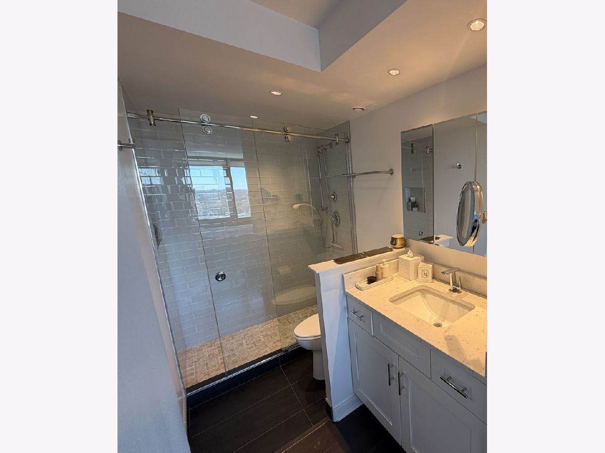 Upscale 3BR/2BA Condo with Lake & Downtown Views & 2 Deeded Garage Spaces! This bright, remodeled unit features luxury vinyl plank floors, a spacious living/dining room adjacent to a private corner balcony, and a modern kitchen with full-height cabinets, granite countertops, and stainless steel appliances. Each of the large bedrooms has operable, wall-to-wall, waist-to-ceiling windows for fresh air and unobstructed western horizon views. The primary and hall bathrooms feature recessed lighting soffits over light marble vanities, undermount sinks, designer faucets, and glass-tiled shower and tub enclosures. The architecturally striking Metropolitan is a 25-story northside landmark. It is managed by a 24-hour staff and its low assessments include the indoor heated pool, cardio and weight training equipment, outdoor tennis courts, interior bicycle racks, rooftop sundeck, and backyard grilling units. The building also has a large laundry facility, a sizable business center with a private meeting room, and a well-appointed two-story atrium lobby. The Metropolitan is located across the street from the walking/bike path to Lincoln Park, the lakefront, and Osterman and Foster beaches. The outer drive express bus stops in front of the building, and the Berwyn and Bryn Mawr El stations are both 3 blocks away. Shopping and restaurants, including Mariano's, are across the street, and Jewel/Osco and CVS are 3 blocks away in the Broadway commercial district. The vibrant Argyle and Andersonville commercial districts are just a few blocks further south and west. And, investors are welcome as the building has no rental cap!