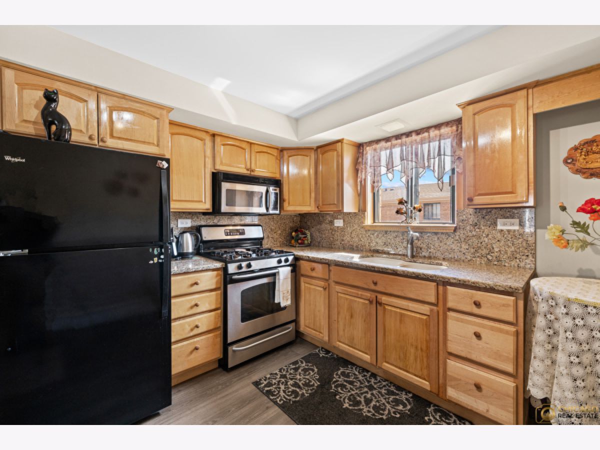 Bright and spacious updated top floor condo. Unit features include a beautifully solid kitchen with maple cabinetry & granite counter-tops, two spacious bedrooms with generous closet space, solid wood doors and crown molding through out. The balcony overlooks a meticulously maintained front courtyard. Additional storage #323 is located in the basement with laundry (2025). Flooring (2024) Assigned dedicated parking space right outside your back door! Close to O'Hare and public transportation (blue line and bus) Kennedy Expressway is a few minutes away as well.