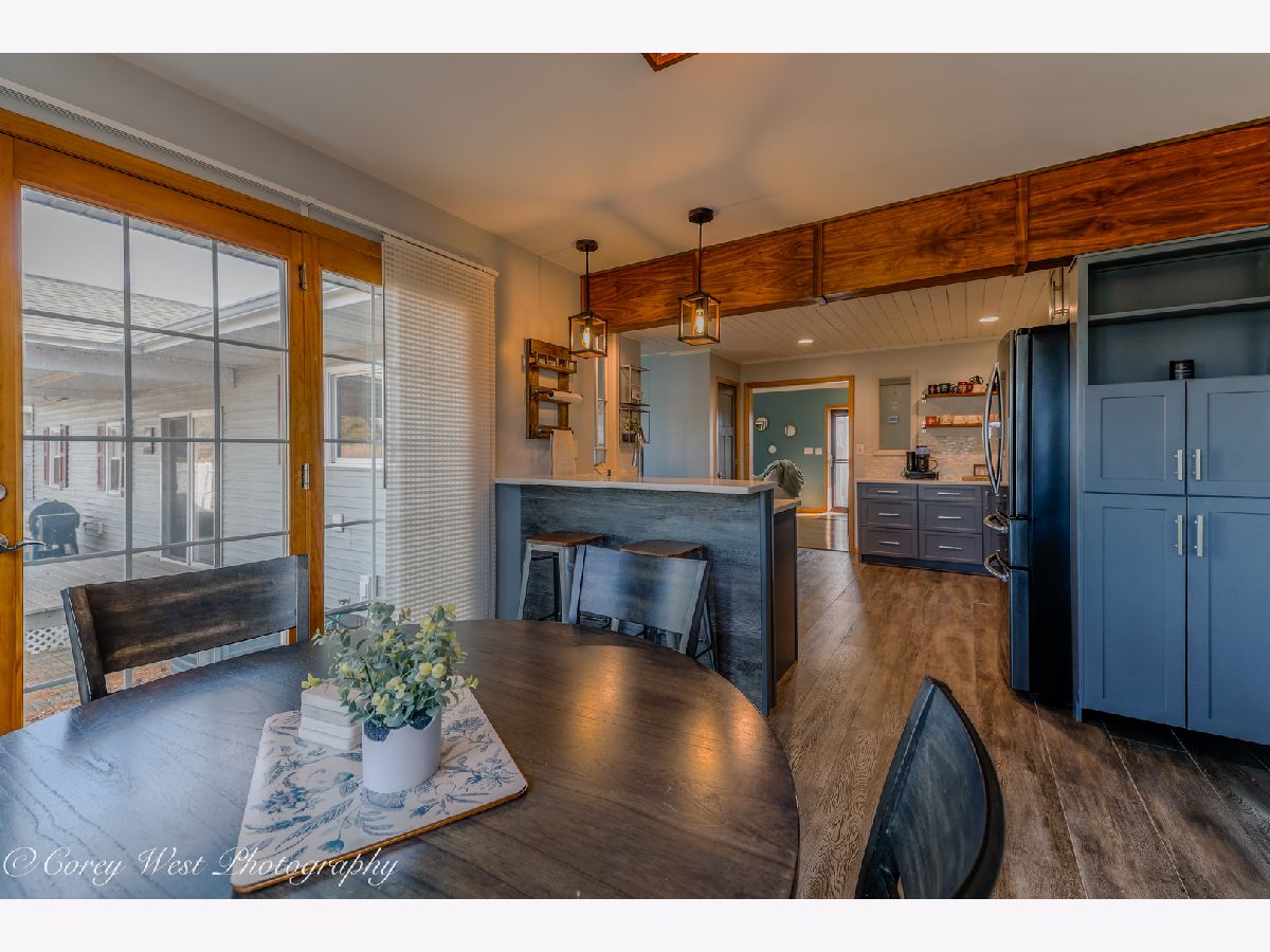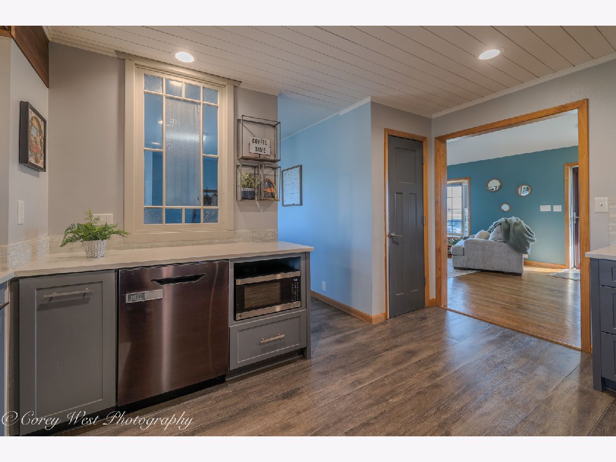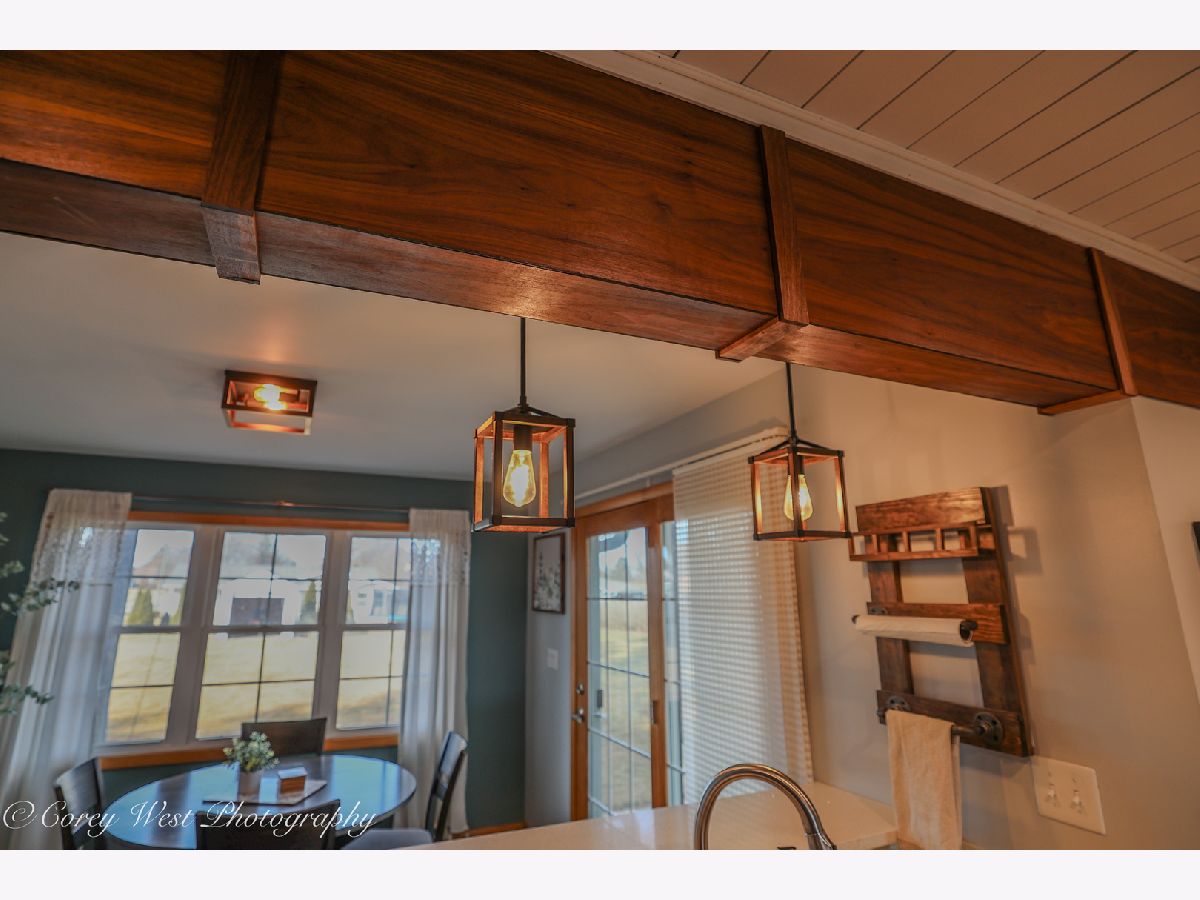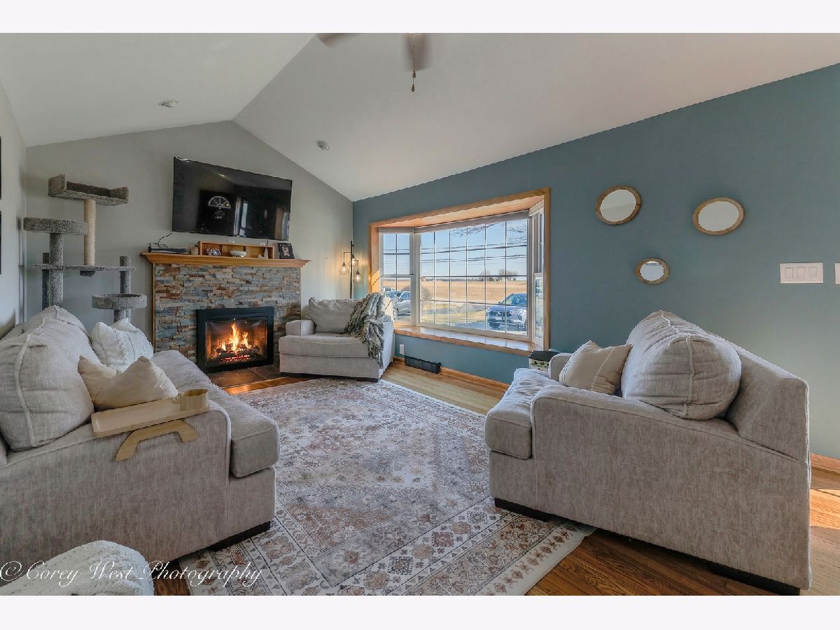 Welcome to a home where every detail has been thoughtfully considered! This meticulously maintained property offers a true move-in-ready experience, combining peaceful country living with unbeatable convenience. Situated on a generous .59-acre lot on the edge of Sycamore, you'll enjoy a tranquil setting while remaining just moments from dining, shopping, and schools. The covered front porch invites you into a bright living room showcasing soaring ceilings, gleaming hardwood floors, a dramatic bay window, and a warm wood-burning fireplace. The completely renovated kitchen impresses with luxury vinyl plank flooring, designer lighting, and premium finishes including quartz countertops, a sleek undermount sink, custom backsplash, and stainless steel appliances. A striking wood-beamed ceiling elegantly defines the dining space, while sliding doors open to a paver patio and covered deck-perfect for seamless indoor-outdoor entertaining. The primary suite serves as a private retreat with bamboo flooring, abundant closet space, volume ceilings, and direct access to an intimate 15x7 deck ideal for evening relaxation. The en-suite bath features a convenient pocket door for privacy. Two additional bedrooms offer hardwood floors and generous closet space, served by an updated guest bath. Practical luxury continues with a sunlit laundry room off the kitchen, complete with washer, dryer, and ample cabinetry. The connecting breezeway provides sheltered access to both the two-car garage and an expansive 14x11 covered deck-an exceptional space for hosting gatherings or quiet afternoons with a book. The finished basement delivers exceptional space with a sprawling recreation room, third full bath, dedicated storage areas, and a handy workshop. A rear yard shed offers additional storage for seasonal equipment. Recent Improvements: 2025: Brand-new gutters with gutter guards; master bath refresh with new paint and shower fixtures 2024: Fully renovated garage with spray foam insulation, new electrical throughout using conduit, sub-panel installation, and added outlets; all new outlets, switches, and covers installed throughout the home. 2023: New well pressure tank. 2022: Roof replacement. 2020: Complete kitchen renovation. 2019: Water heater. Approx. 7 years: A/C & HVAC system. 2009-2010: Windows, vinyl siding, and master bedroom addition. This is more than a house-it's the backdrop for your next chapter.