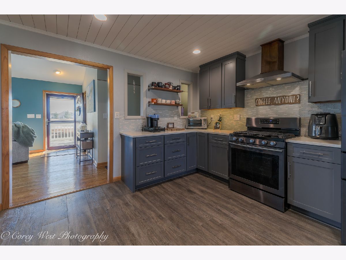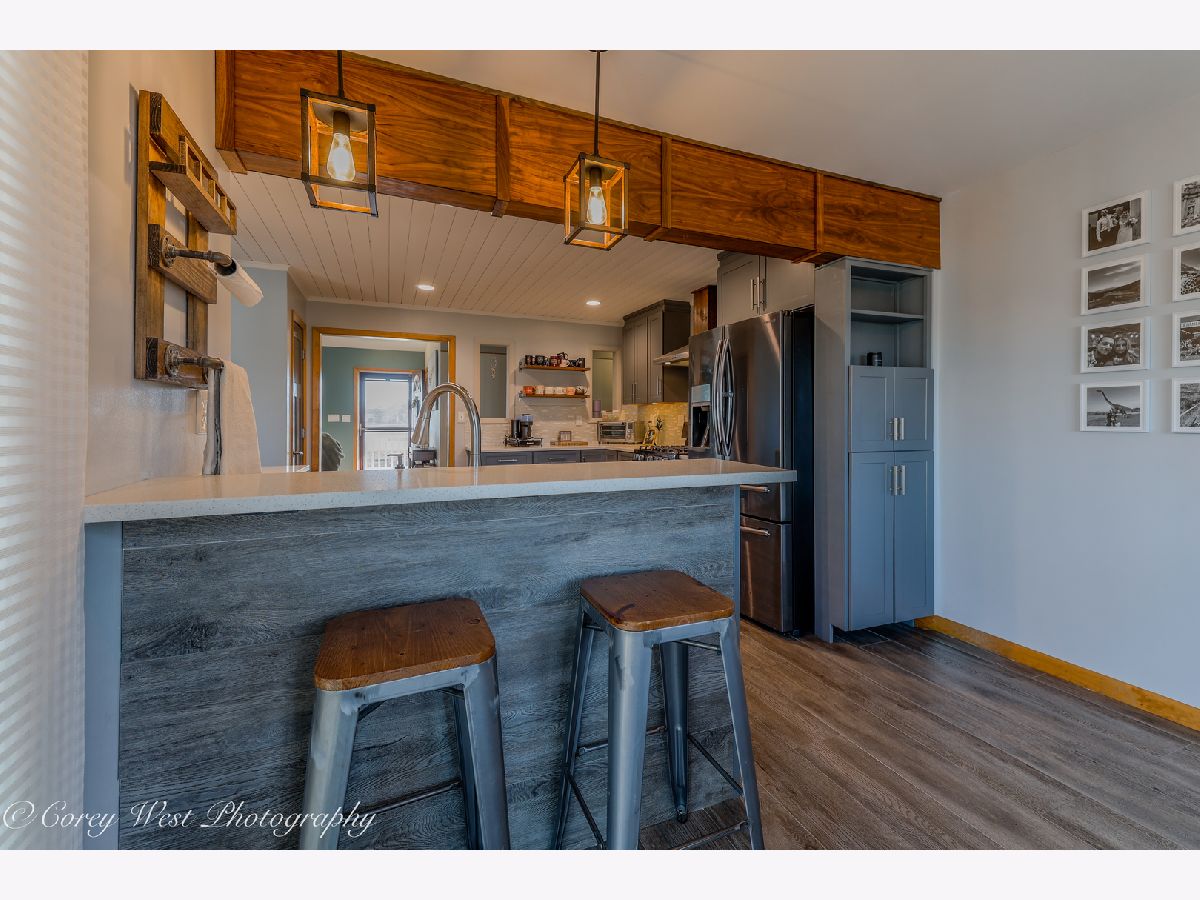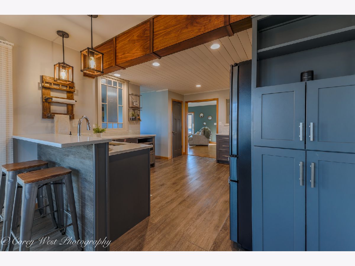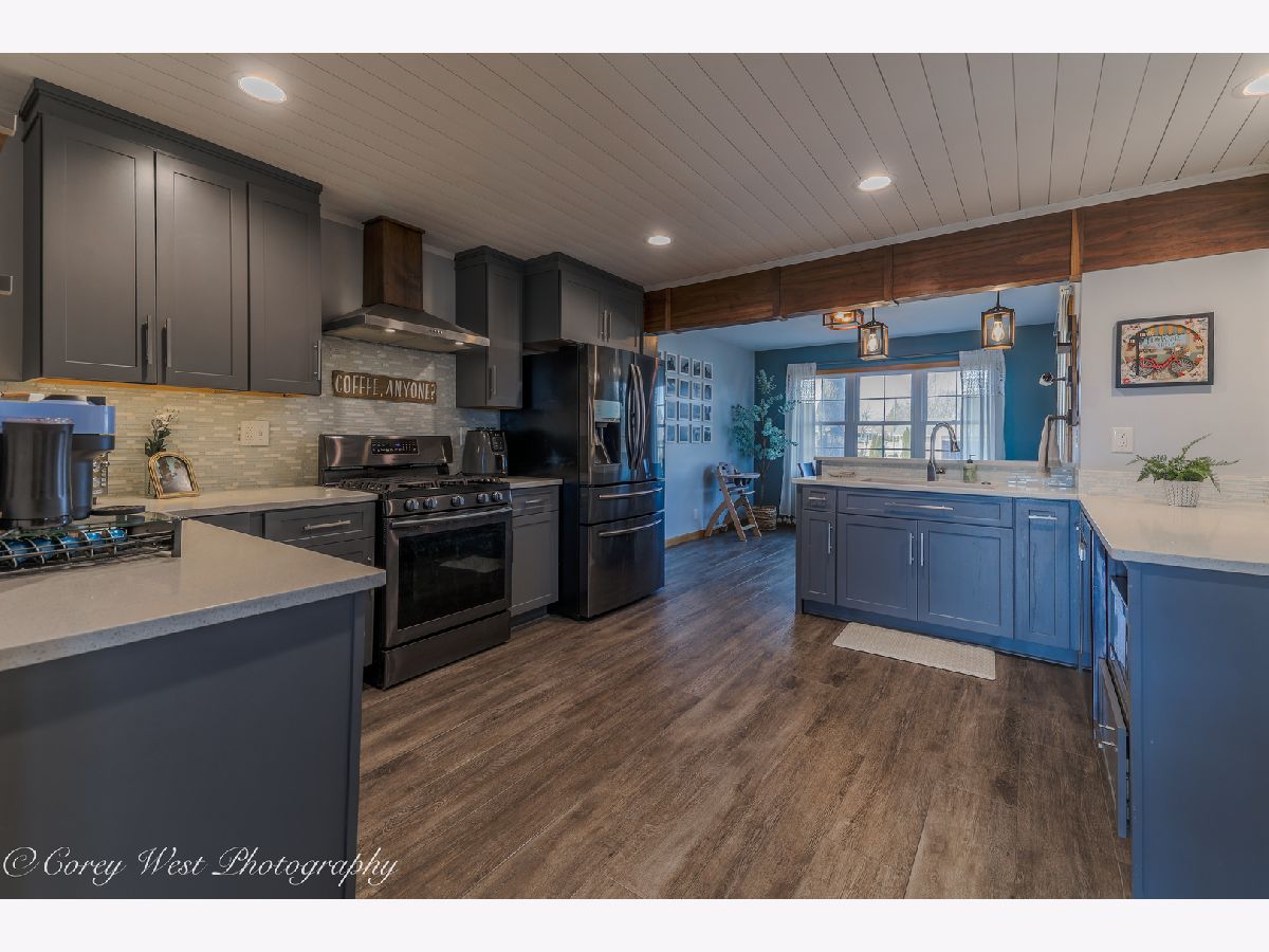 Welcome to a home where every detail has been thoughtfully considered! This meticulously maintained property offers a true move-in-ready experience, combining peaceful country living with unbeatable convenience. Situated on a generous .59-acre lot on the edge of Sycamore, you'll enjoy a tranquil setting while remaining just moments from dining, shopping, and schools. The covered front porch invites you into a bright living room showcasing soaring ceilings, gleaming hardwood floors, a dramatic bay window, and a warm wood-burning fireplace. The completely renovated kitchen impresses with luxury vinyl plank flooring, designer lighting, and premium finishes including quartz countertops, a sleek undermount sink, custom backsplash, and stainless steel appliances. A striking wood-beamed ceiling elegantly defines the dining space, while sliding doors open to a paver patio and covered deck-perfect for seamless indoor-outdoor entertaining. The primary suite serves as a private retreat with bamboo flooring, abundant closet space, volume ceilings, and direct access to an intimate 15x7 deck ideal for evening relaxation. The en-suite bath features a convenient pocket door for privacy. Two additional bedrooms offer hardwood floors and generous closet space, served by an updated guest bath. Practical luxury continues with a sunlit laundry room off the kitchen, complete with washer, dryer, and ample cabinetry. The connecting breezeway provides sheltered access to both the two-car garage and an expansive 14x11 covered deck-an exceptional space for hosting gatherings or quiet afternoons with a book. The finished basement delivers exceptional space with a sprawling recreation room, third full bath, dedicated storage areas, and a handy workshop. A rear yard shed offers additional storage for seasonal equipment. Recent Improvements: 2025: Brand-new gutters with gutter guards; master bath refresh with new paint and shower fixtures 2024: Fully renovated garage with spray foam insulation, new electrical throughout using conduit, sub-panel installation, and added outlets; all new outlets, switches, and covers installed throughout the home. 2023: New well pressure tank. 2022: Roof replacement. 2020: Complete kitchen renovation. 2019: Water heater. Approx. 7 years: A/C & HVAC system. 2009-2010: Windows, vinyl siding, and master bedroom addition. This is more than a house-it's the backdrop for your next chapter.