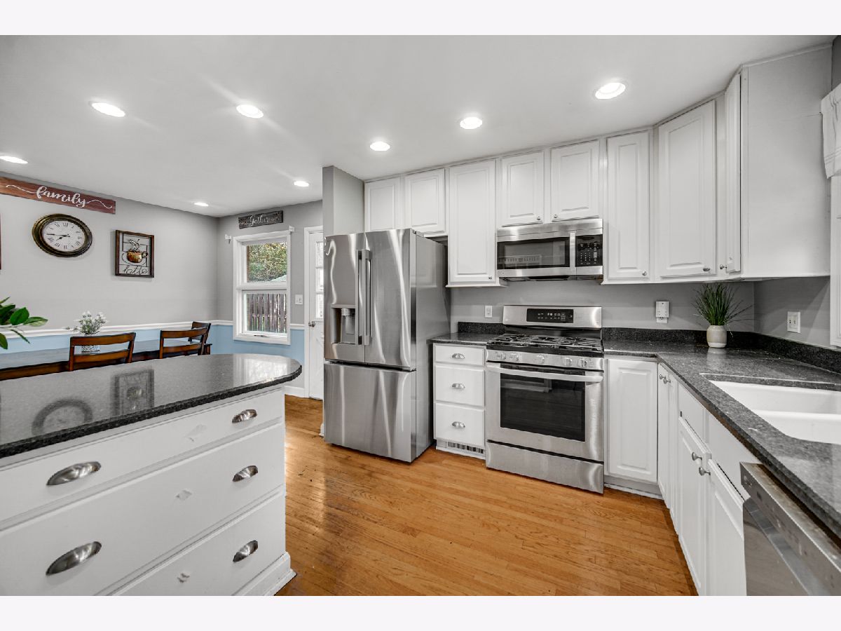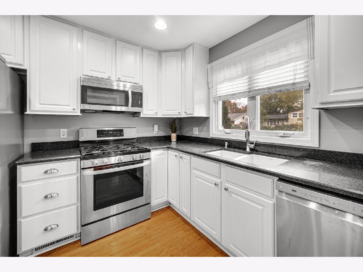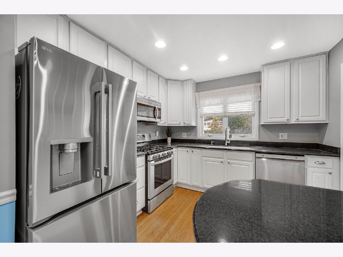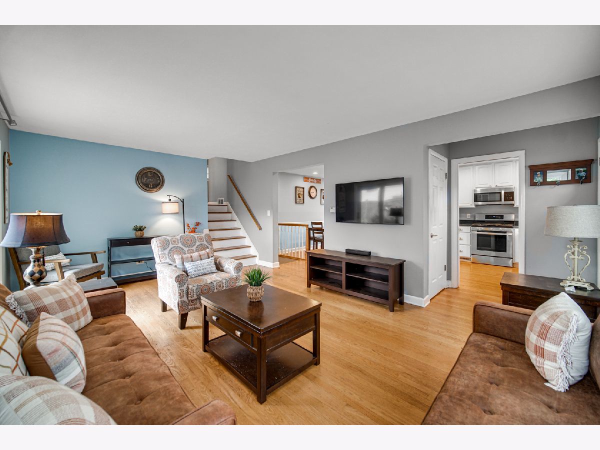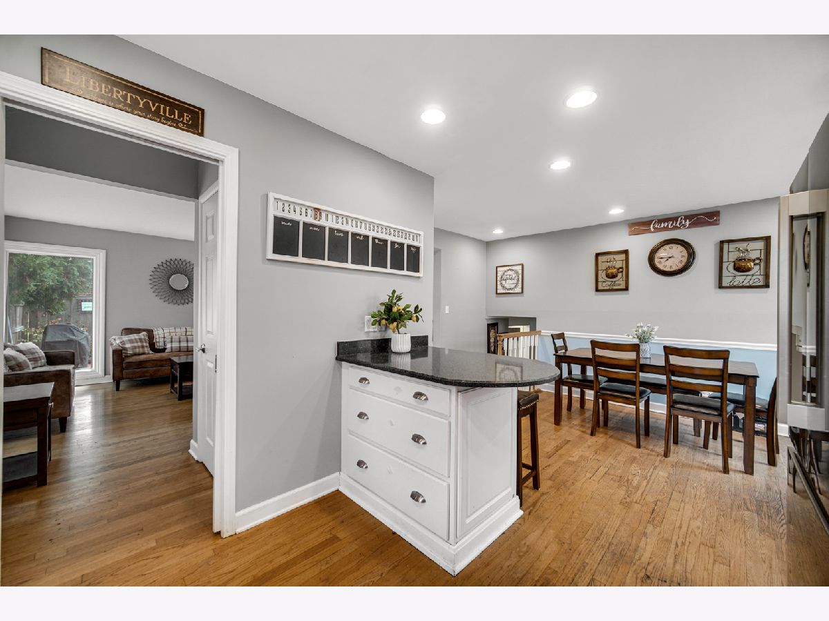One of a Kind! Welcome home to this adorable 3-bedroom, 2-bathroom gem perfectly located in the heart of Libertyville-backing up to the peaceful north side of Nicholas Dowden Park! Step inside to a bright, welcoming living room with newer oversized picture windows that overlook a quiet, tree-lined street. Beautiful hardwood floors flow throughout the first and second levels, creating a seamless transition into the eat-in kitchen, complete with white 42" cabinets, granite countertops, and stainless-steel appliances. Enjoy indoor-outdoor living with a sliding glass door that opens to a private paver patio-perfect for relaxing or entertaining. Both bathrooms have been tastefully updated with classic white tile finishes. The comfortable family room offers a cozy space for movie nights or a playroom, while the renovated mudroom provides plenty of storage with ample cabinetry, a butcher-block countertop, laundry area, and convenient access to the fenced backyard. Additional highlights include a new roof, furnace (2020), and A/C (2023). The home also features a well-maintained 2.5-car garage, a private backyard, and an unbeatable location near parks, schools, and all that Libertyville has to offer.