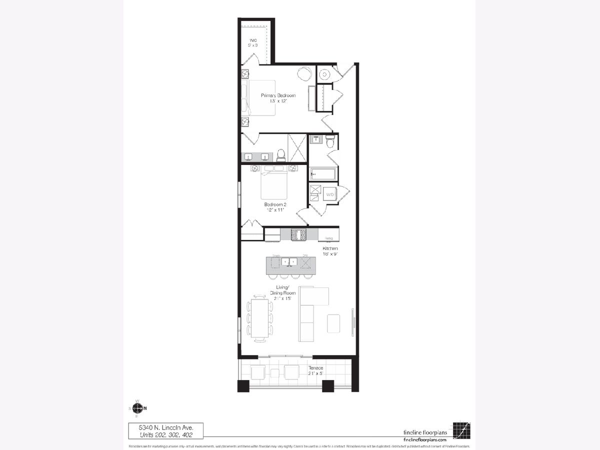 Stunning new construction 2 bedroom, 2 bath residence in a boutique 9-unit elevator building located in Lincoln Square. This exceptional home offers a thoughtfully designed open floor plan anchored by a show-stopping custom kitchen featuring slim shaker cabinetry, a 9' oak island, a decorative hood cover, LED accent lighting, brass fixtures and stainless steel KitchenAid appliances. The expansive living and dining area boasts 10' ceilings and oversized windows that flood the space with natural light. The primary suite serves as a serene retreat, highlighted by radiant heated floors in the spa-inspired bathroom, a large walk-in shower, and double sink oak vanity. One additional bedroom and a beautifully appointed full bath complete the interior. The home features a 5' x 21' private terrace directly off the living area, ideal for outdoor city living. One heated garage parking spot included. Currently under construction with deliveries beginning in May 2026.