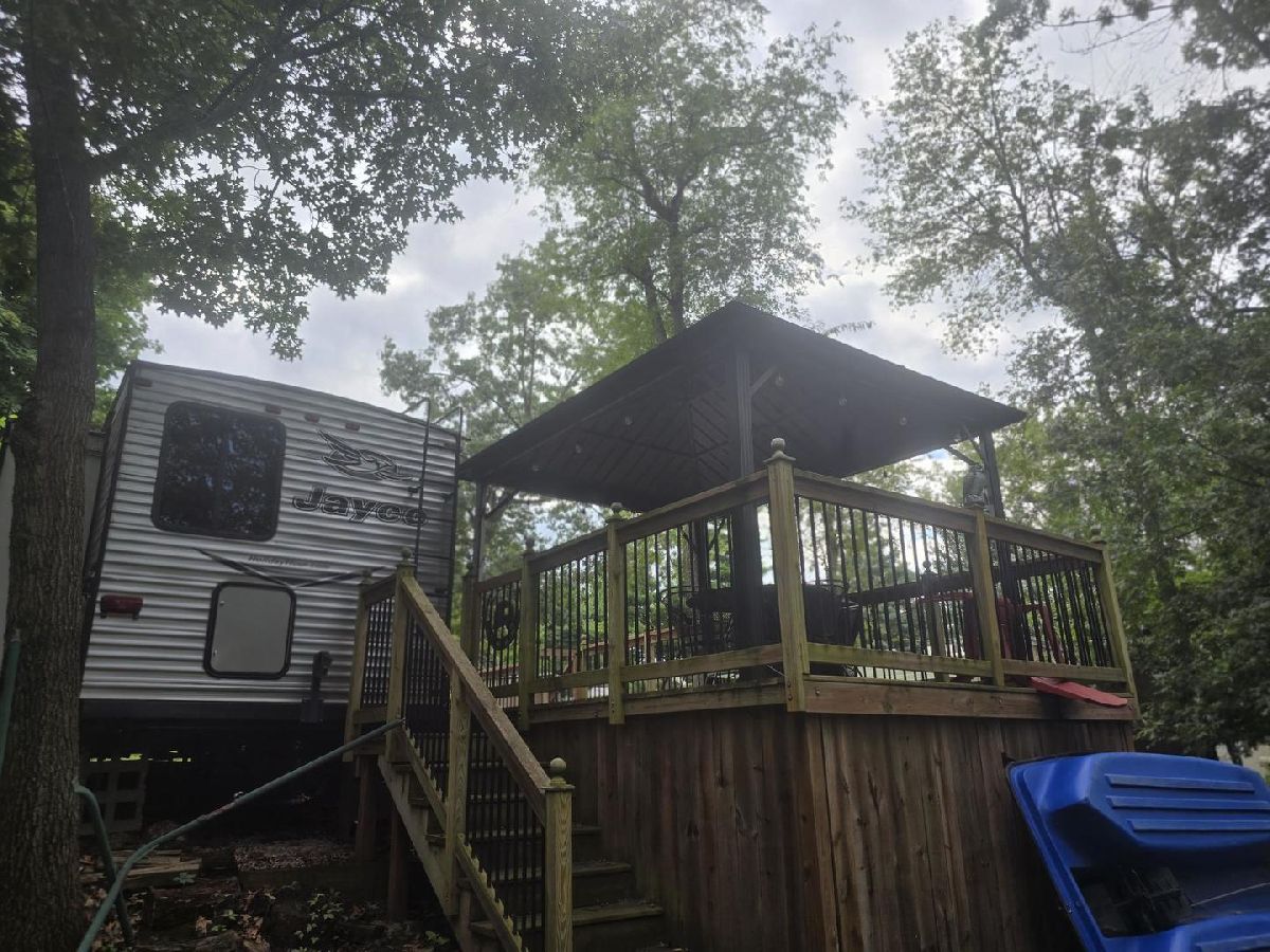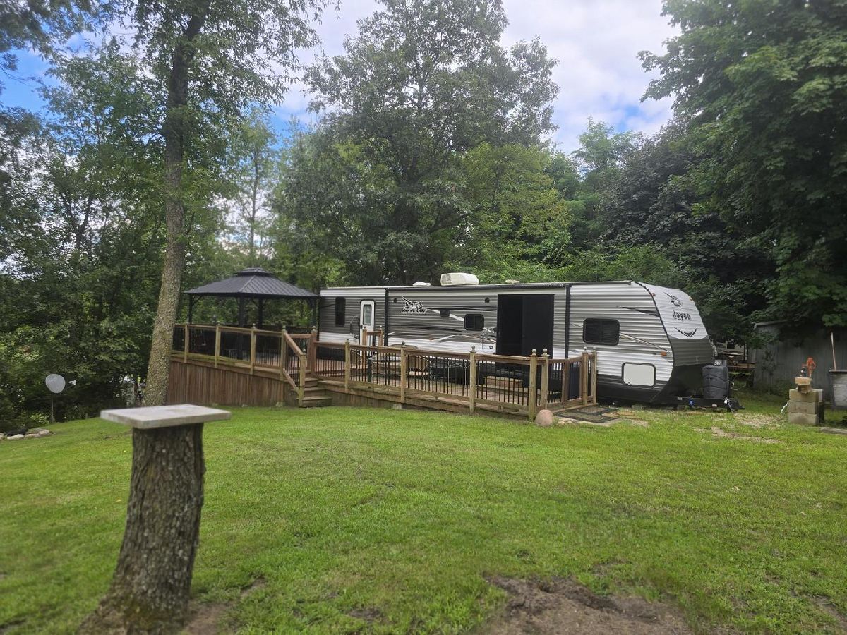 If you're looking for a move in ready property this is the spot for you ! The care taken with this set-up is nothing short of meticulous. The 2017 Jayco is spotless, has beautiful finishes including a fireplace and can sleep up to 8. The deck outside has bee constructed perfectly to use the grade of the land while providing the most serene setting with both a lovely portable gazebo and a brand new (8/2025) RV awning. The second lot provides wonderful space to screech out and enjoy. Play games, plant a garden, set a second RV. The lot is currently non-sewered and has an adorable storage shed for all the extras. The paddle boat and utility trailer can be included in the sale if the buyer desires. Gated facility - must be accompanied by a Real Estate Broker. Property owner is responsible for yearly assessments. This is not a homestead property.