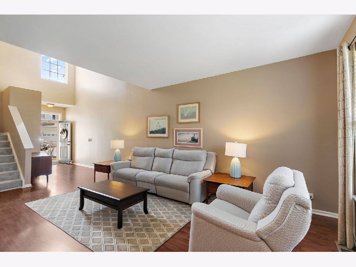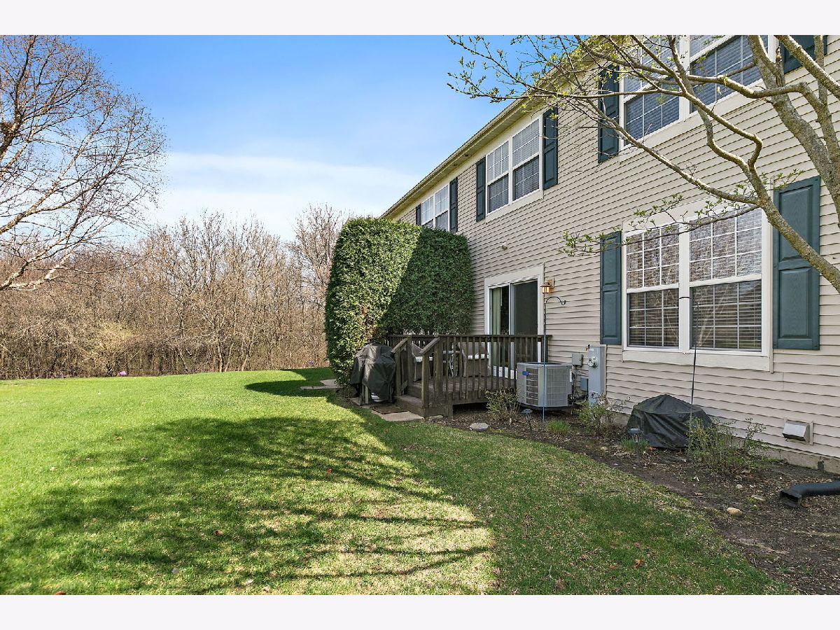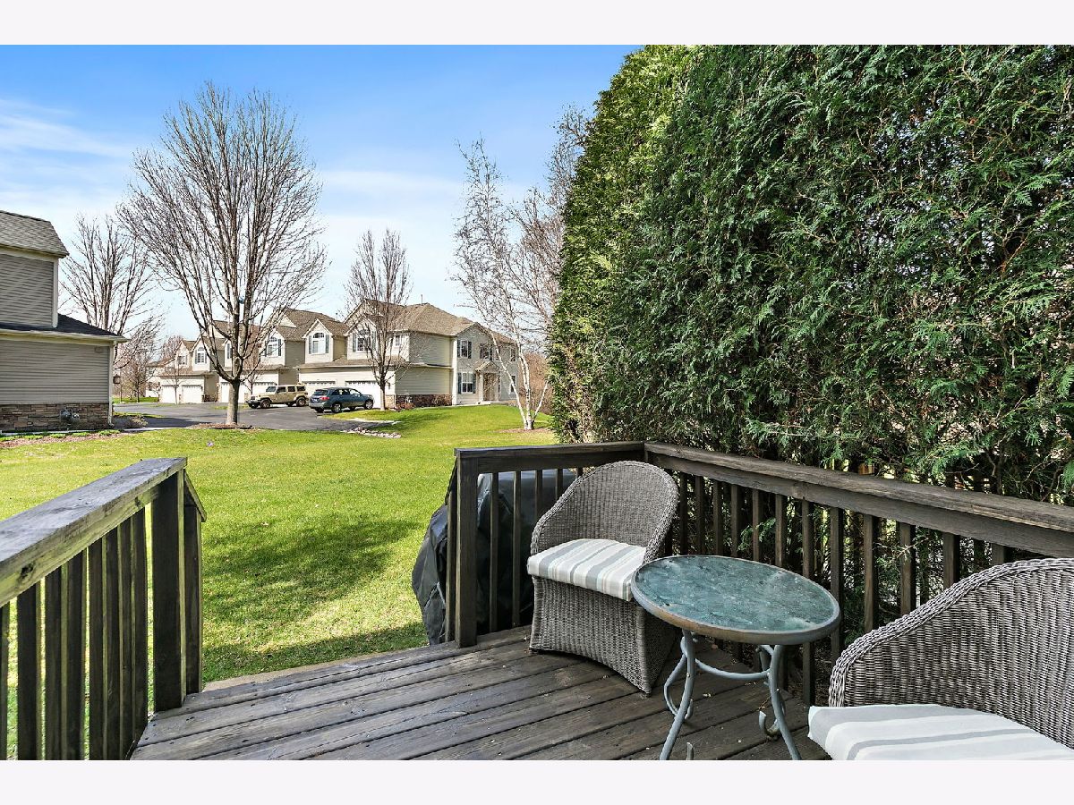 Beautiful two-story townhome in desirable Timber Trails featuring 2 bedrooms plus a spacious loft, a 2-car garage, full basement and overlooks open area and walking trail in backyard! This well-maintained home offers a perfect blend of space, style, and functionality. Step inside to a dramatic two-story foyer and enjoy 9-foot ceilings and wood laminate flooring throughout the main level, creating a warm and open feel. The spacious living room includes a built-in niche ideal for a TV or decor. The kitchen is well-appointed with stainless steel appliances, quartz countertops, tile backsplash, 42" cabinets, pantry, recessed lighting, and a dedicated coffee bar nook, perfect for everyday living and entertaining. The adjacent dining area opens to a private wood deck through sliding glass doors, ideal for outdoor dining and relaxation. A convenient powder room completes the main level. Upstairs, you'll find newer carpeting and a versatile open loft which is perfect for a home office, playroom, or additional living space. The primary suite features a walk-in closet and private full bath, while a second bedroom, full bathroom, and laundry room with shelving complete the upper level. The full unfinished basement offers endless potential - use it for storage, a home gym, or finish it to create additional living space. Recent updates include: furnace and A/C (2024), kitchen appliances (2020), washer and dryer (2020), ejector pump and sump pump (2019), deck stained (2025), and roof (2016). Enjoy a prime location with access to the Timber Trails walking paths and parks, nearby forest preserves, shopping, dining, and easy interstate access. A fantastic opportunity with space, updates, and location. Welcome home!