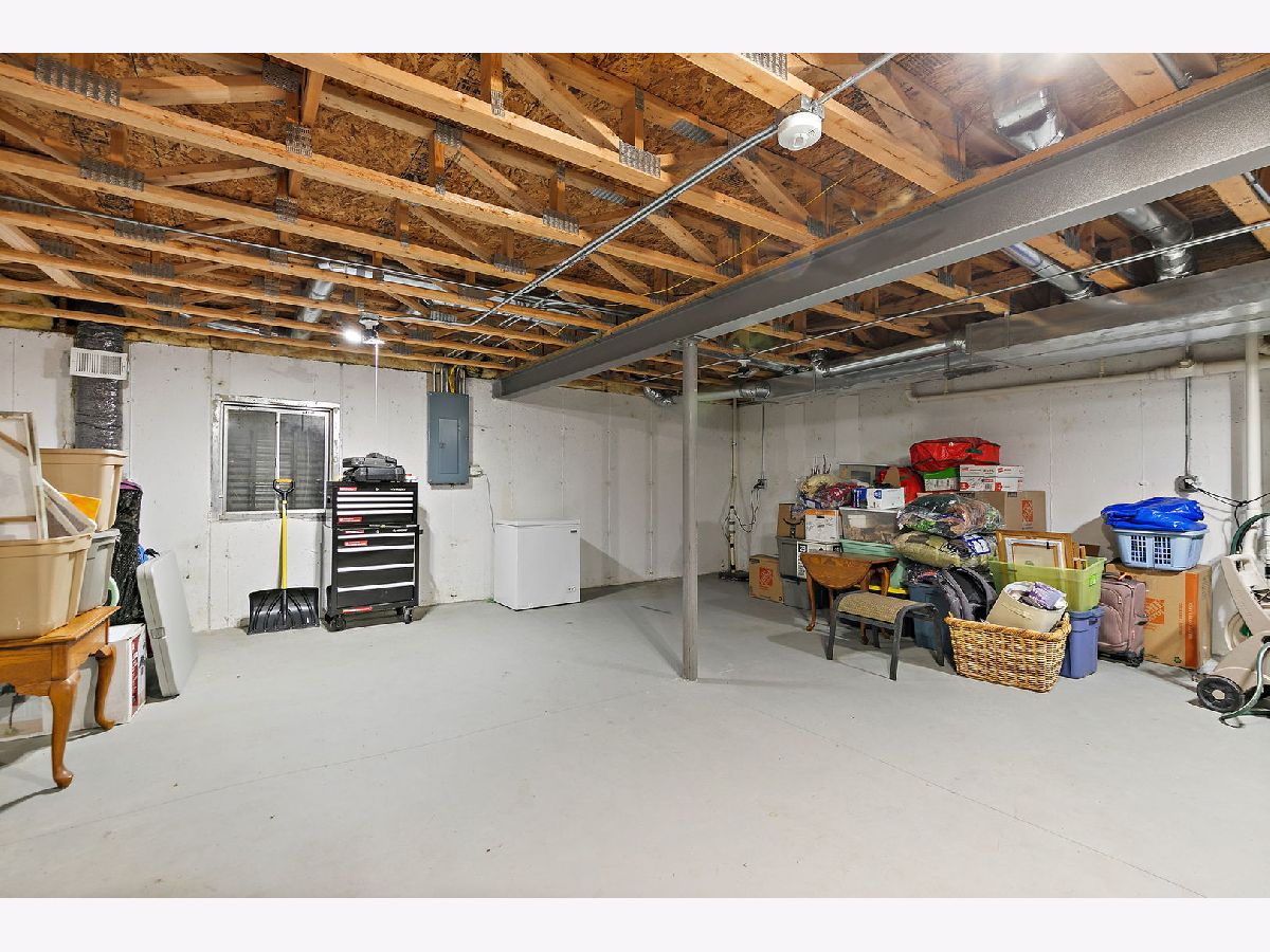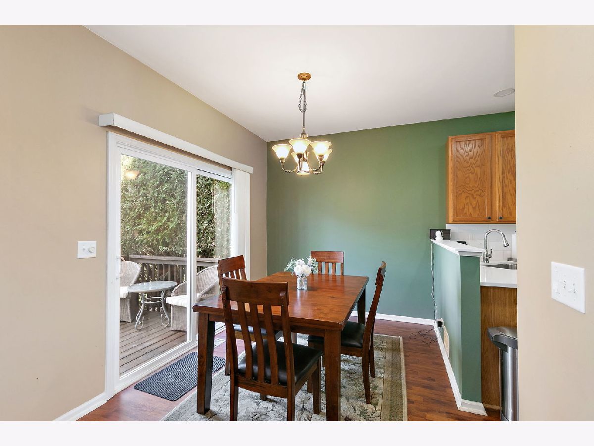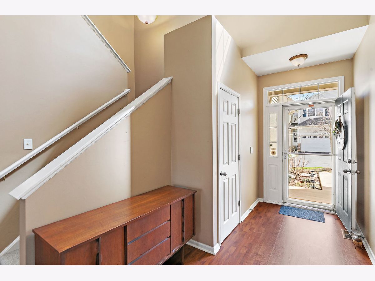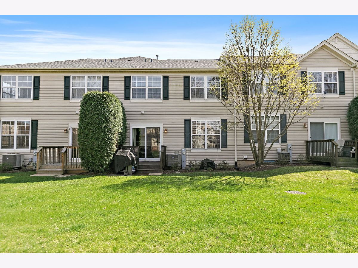 Beautiful two-story townhome in desirable Timber Trails featuring 2 bedrooms plus a spacious loft, a 2-car garage, full basement and overlooks open area and walking trail in backyard! This well-maintained home offers a perfect blend of space, style, and functionality. Step inside to a dramatic two-story foyer and enjoy 9-foot ceilings and wood laminate flooring throughout the main level, creating a warm and open feel. The spacious living room includes a built-in niche ideal for a TV or decor. The kitchen is well-appointed with stainless steel appliances, quartz countertops, tile backsplash, 42" cabinets, pantry, recessed lighting, and a dedicated coffee bar nook, perfect for everyday living and entertaining. The adjacent dining area opens to a private wood deck through sliding glass doors, ideal for outdoor dining and relaxation. A convenient powder room completes the main level. Upstairs, you'll find newer carpeting and a versatile open loft which is perfect for a home office, playroom, or additional living space. The primary suite features a walk-in closet and private full bath, while a second bedroom, full bathroom, and laundry room with shelving complete the upper level. The full unfinished basement offers endless potential - use it for storage, a home gym, or finish it to create additional living space. Recent updates include: furnace and A/C (2024), kitchen appliances (2020), washer and dryer (2020), ejector pump and sump pump (2019), deck stained (2025), and roof (2016). Enjoy a prime location with access to the Timber Trails walking paths and parks, nearby forest preserves, shopping, dining, and easy interstate access. A fantastic opportunity with space, updates, and location. Welcome home!