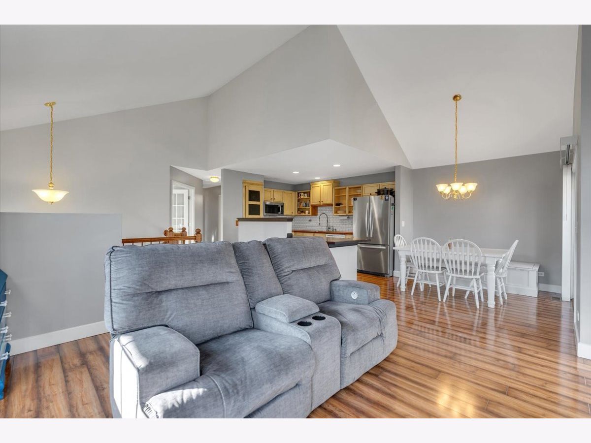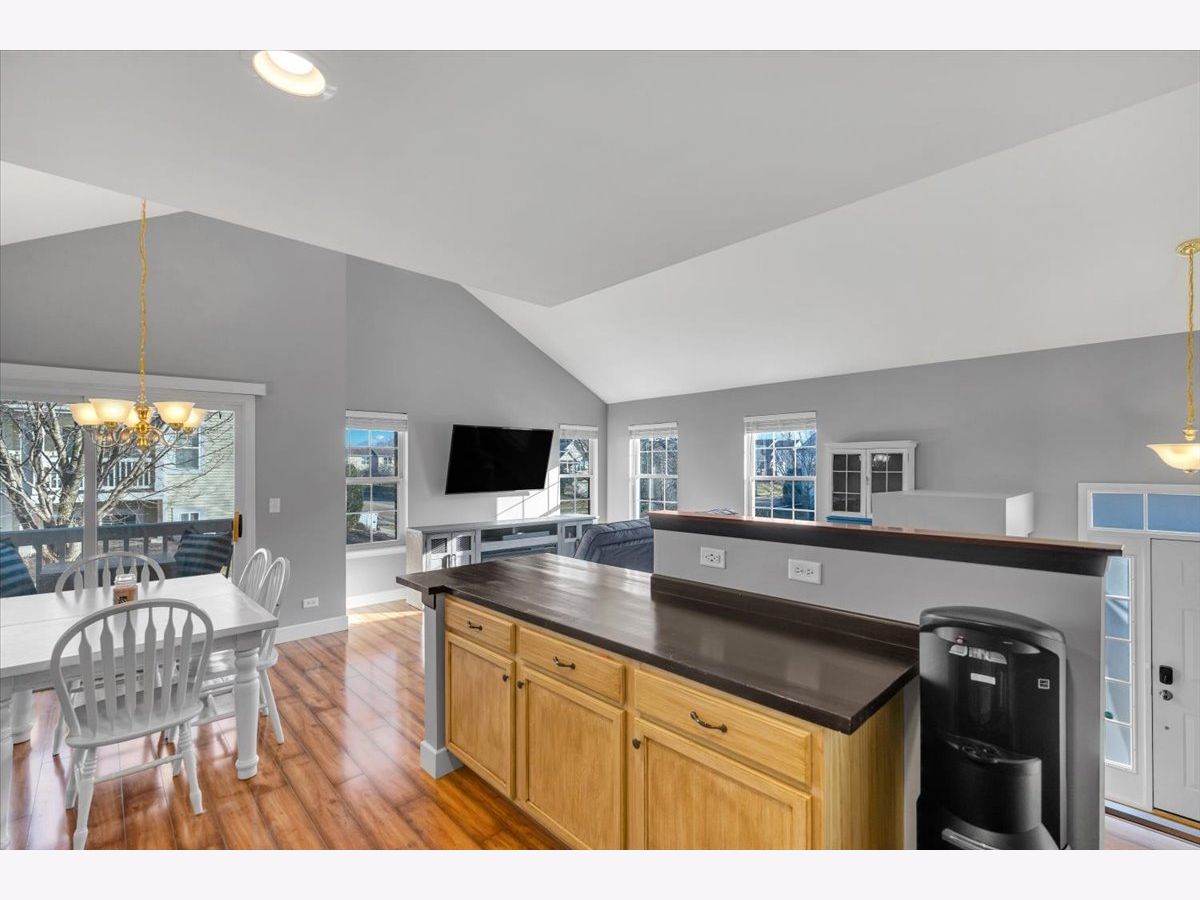 Rarely available, front-facing end unit with a private driveway in the charming Symphony Meadows community. This beautifully upgraded 3-bedroom townhome offers and open concept with the feel of a singel family home. Thoughtful design and custom touches throughout. The main level features elegant laminate flooring and a stylish kitchen with custom finish cabinetry and butcher block countertops. The spacious main level primary bedroom includes a generous walk-in closet, while the second bedroom stands out with custom built-in bookshelves, a cozy window seat, and a built-in dresser. The main bathroom offers double sinks for added convenience. The finished lower level provides a comfortable carpeted family room with a gas fireplace, a flexible third bedroom or home office, a second full bathroom, and a well-equipped laundry room with washer and dryer. Convenient exterior access to the two-car garage which includes built-in shelving to meet your storage needs. Ideally located near Rt 12, Grocery, Gas, Coffee, Restaurants, Volo Antique Mall and Auto Museum, 14 mi to Great American and I94, 16 mi to Great Lakes Naval Base, 28 mi to Lake Geneva, and an abundance of lakes and forest preserves for outdoor enthusiasts. 6 miles to the Round Lake Metra station makes commuting to the city a breeze.