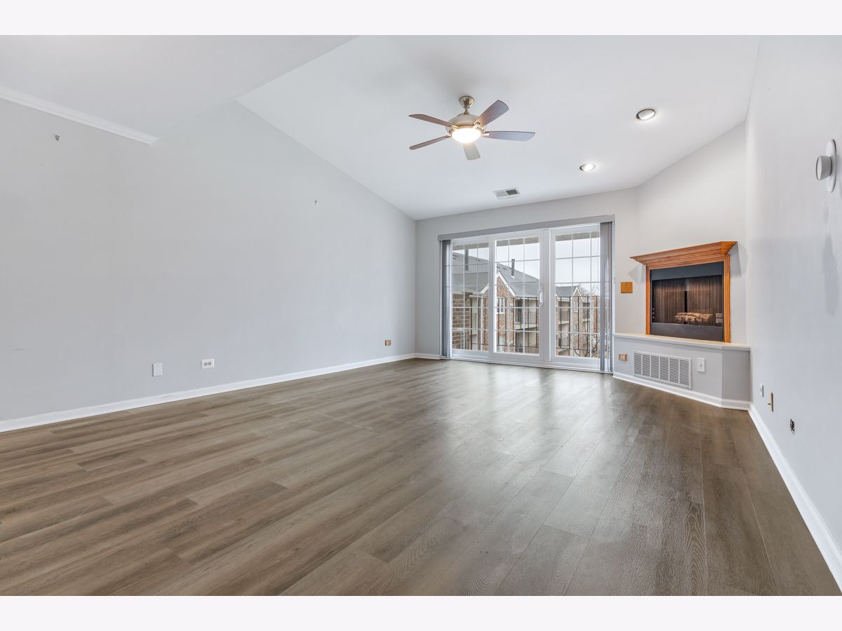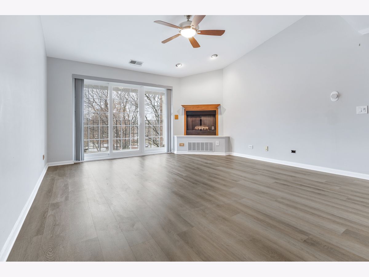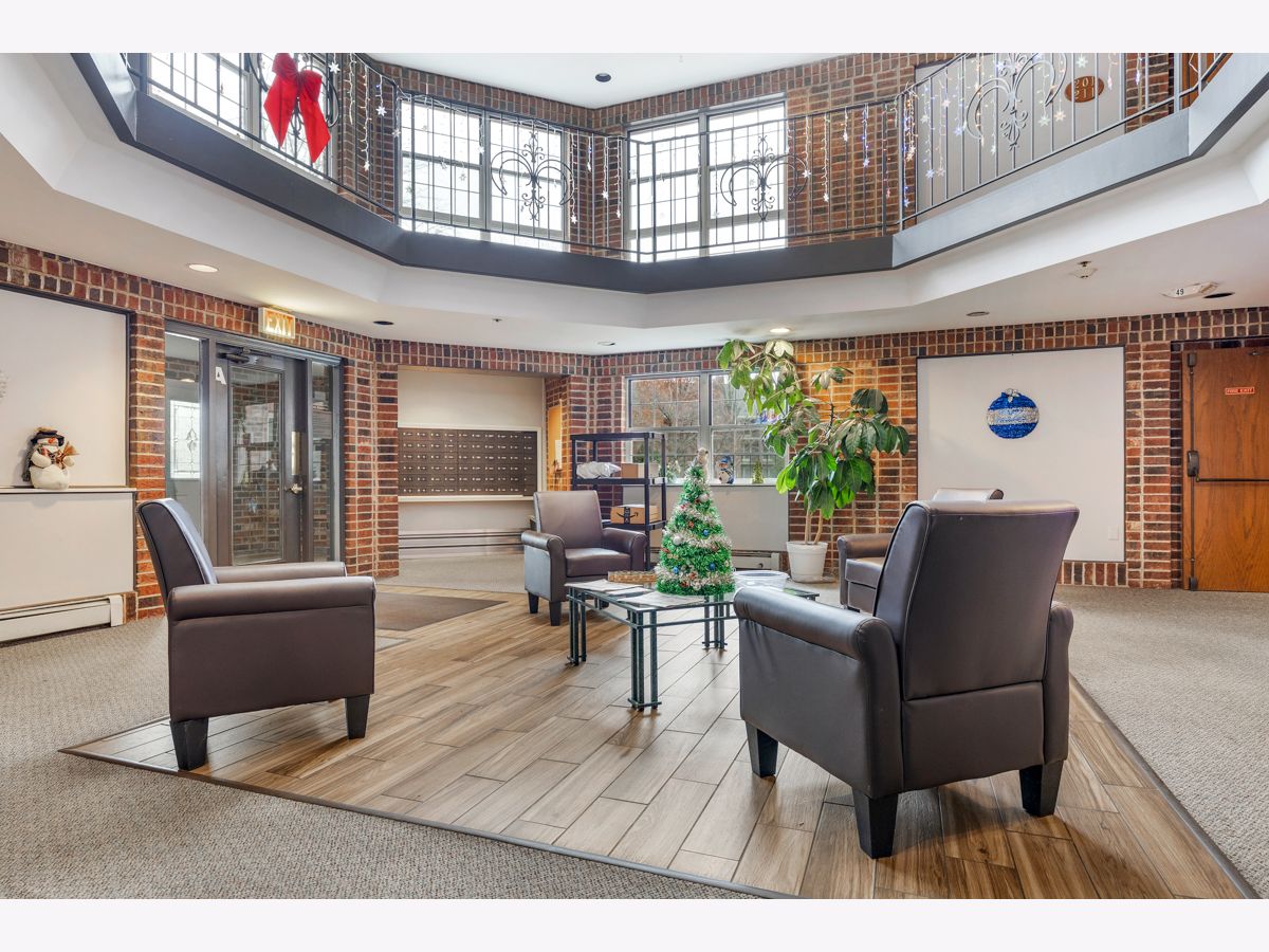 This beautifully maintained, move-in ready condo offers impressive vaulted ceilings in the living room with a cozy fireplace. Freshly painted and featuring wood laminate flooring, the open living room has a large sliding doors to a private balcony with a tranquil view. The updated kitchen features maple cabinets and stainless steel appliances. The spacious primary bedroom includes multiple closets and a private updated bath. The versatile second bedroom offers flexible use ideal as a guest room, office, or extended living space. Additional features include in-unit washer and dryer, underground heated parking and storage. The location is unbeatable close to the hospital, shopping, library, Pavillion Fitness Center, Busse Woods, restaurants, and minutes from major expressways. No Rentals and No Dogs.
