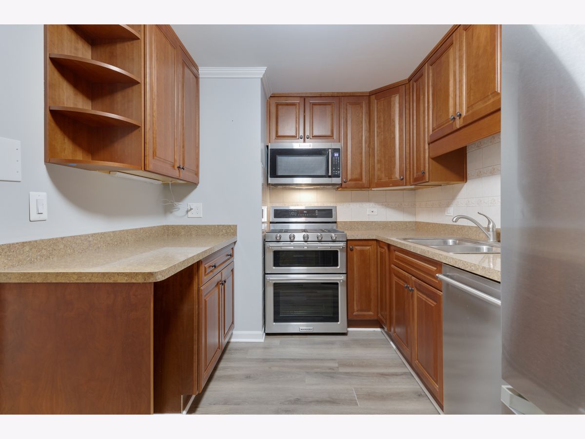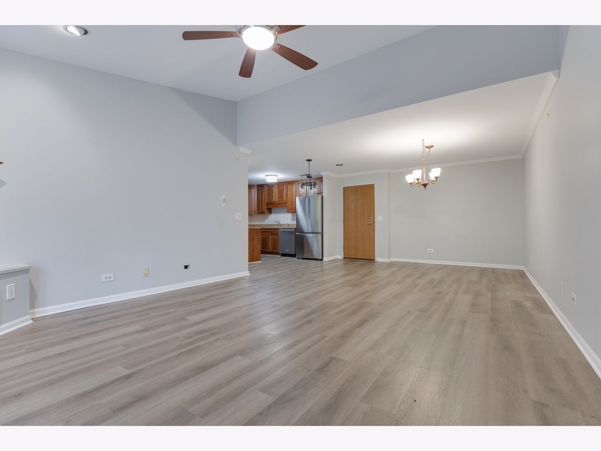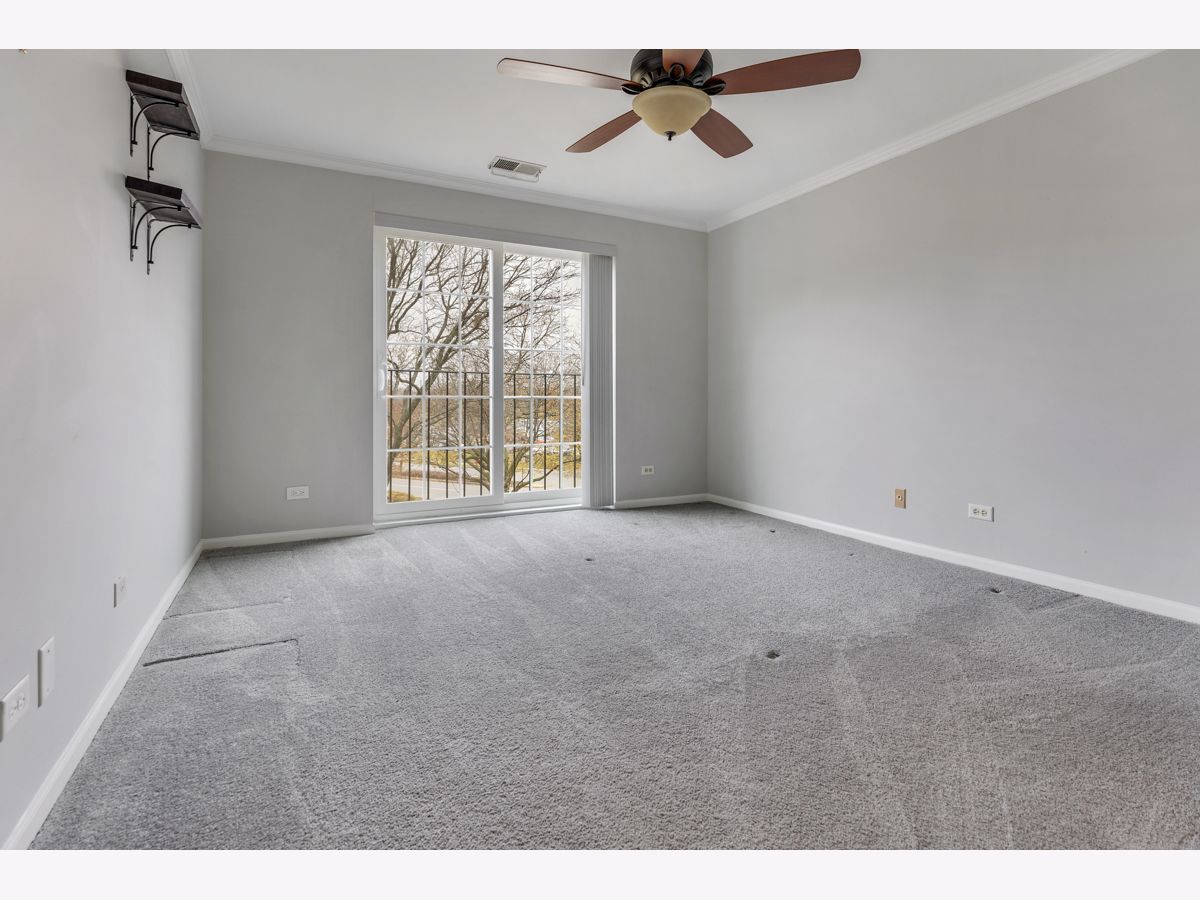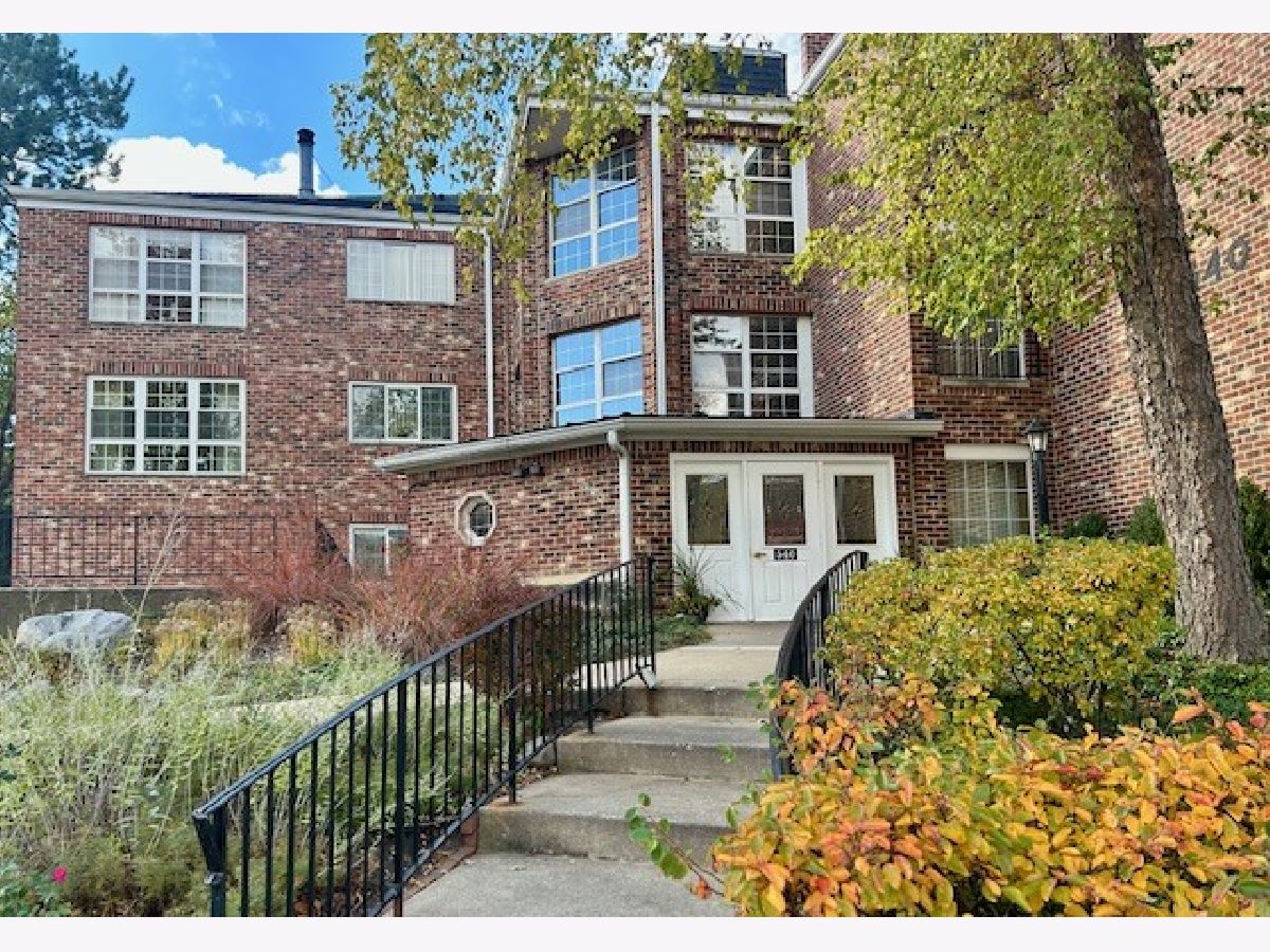 This beautifully maintained, move-in ready condo offers impressive vaulted ceilings in the living room with a cozy fireplace. Freshly painted and featuring wood laminate flooring, the open living room has a large sliding doors to a private balcony with a tranquil view. The updated kitchen features maple cabinets and stainless steel appliances. The spacious primary bedroom includes multiple closets and a private updated bath. The versatile second bedroom offers flexible use ideal as a guest room, office, or extended living space. Additional features include in-unit washer and dryer, underground heated parking and storage. The location is unbeatable close to the hospital, shopping, library, Pavillion Fitness Center, Busse Woods, restaurants, and minutes from major expressways. No Rentals and No Dogs.