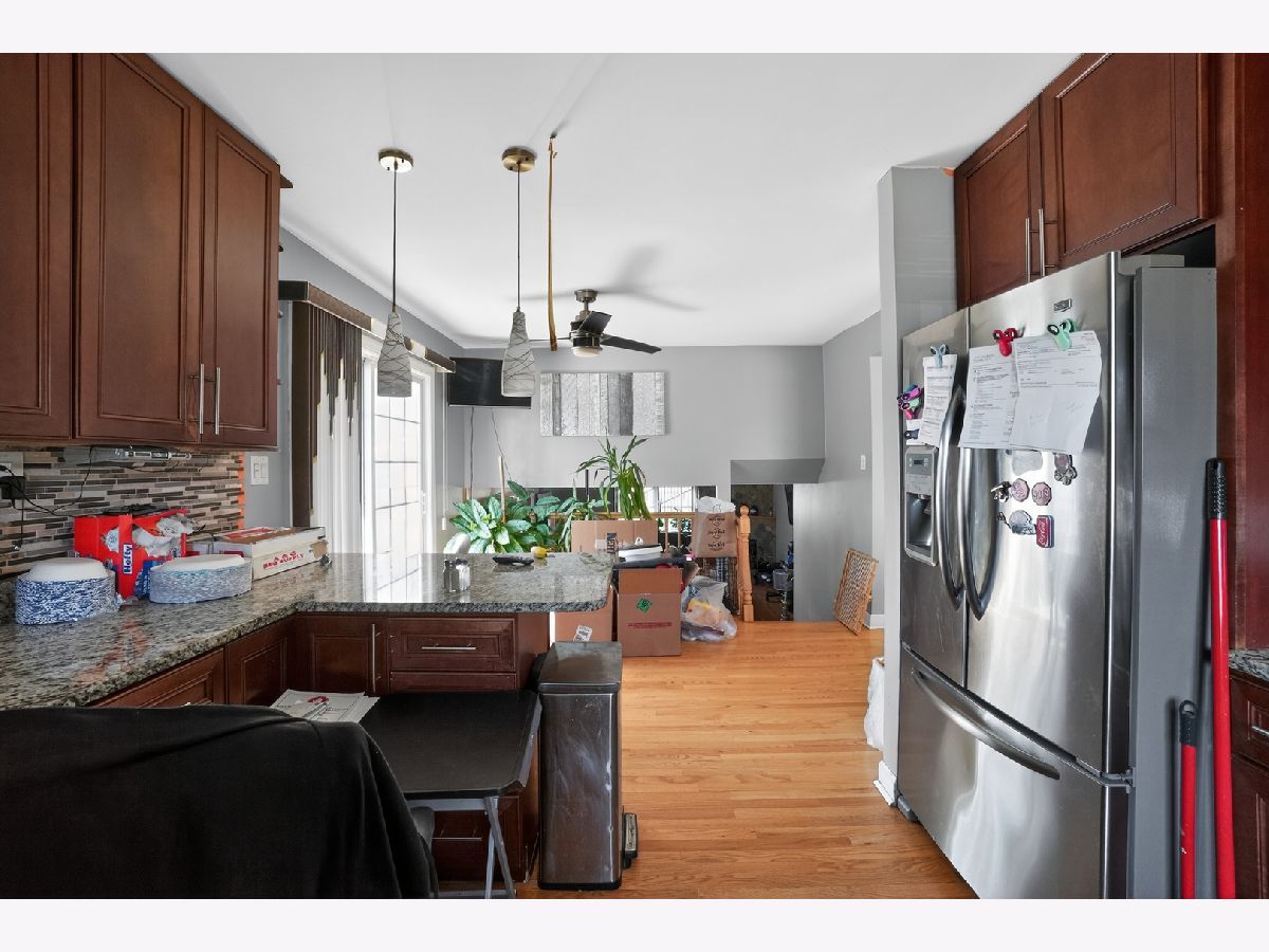 Great location... just one block from Elementary and Middle school. Nice tri-level layout with LVP floors, newer kitchen with granite counter tops and backsplash with stainless steel appliances. , newer roof (6 years old). Finished basement with fireplace. Sump pump. Two and a half car garage. Wood deck. No survey provided.