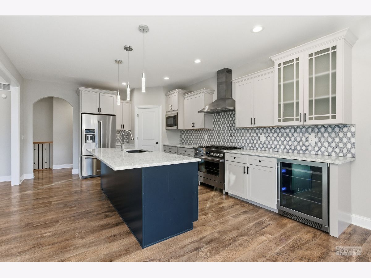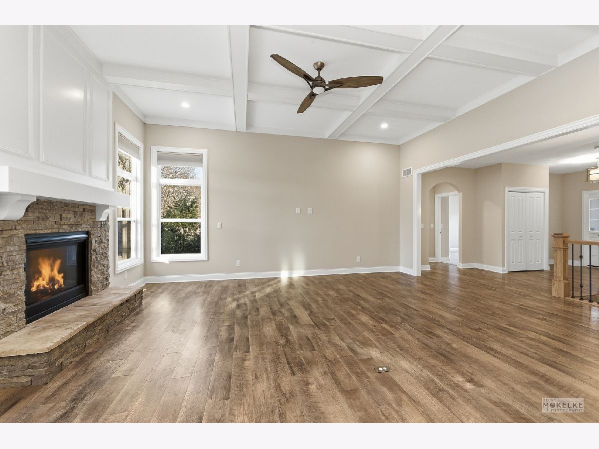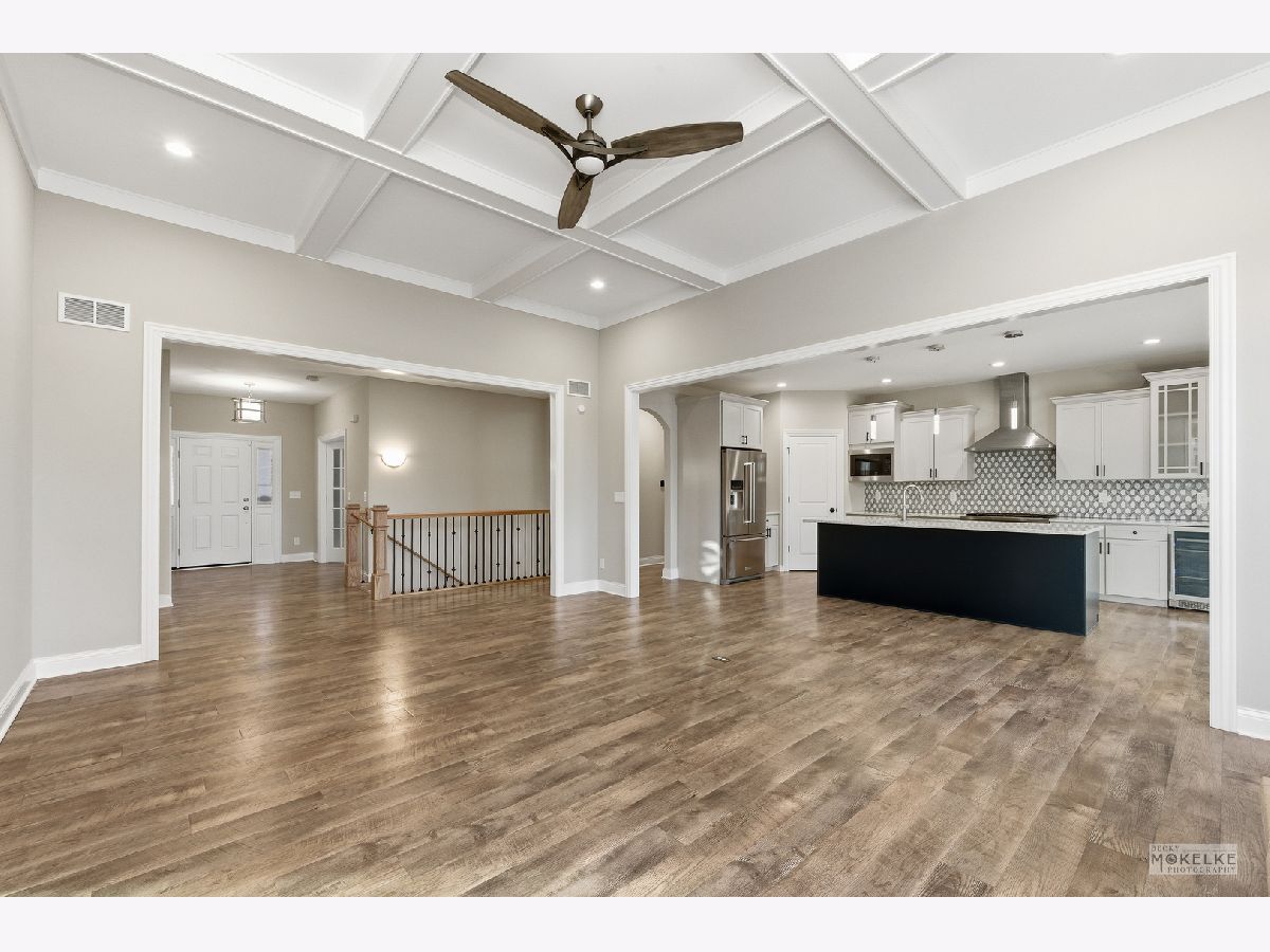 Welcome to this stunning, one-owner custom-built ranch offering exceptional space, quality craftsmanship, and extensive upgrades throughout. With over 2,000 sq ft of main-level living plus a semi- finished lower level featuring an additional 1,540 sq ft, this home, with a split floor plan delivers the perfect blend of comfort, functionality, and style, complete with an insulated, drywalled 3-car garage! Step into the dramatic great room highlighted by an impressive 11-foot coffered ceiling and featuring a striking floor-to-ceiling stacked stone gas fireplace, a true showpiece for everyday living and entertaining. The heart of the home is the gorgeous eat-in kitchen with a generous dining area overlooking the backyard. You'll love the 8-foot dark blue island with seating, custom staggered cabinetry with crown molding, a glass-front display cabinet, and a built-in beverage refrigerator. High-end finishes include quartz countertops, a stunning marble tile backsplash, and a commercial-grade 6-burner Bosch range* paired with a professional range hood for the chef in you. Retreat to the privately located primary suite featuring a tray ceiling with a ceiling fan, dual wall sconces, a spacious walk-in closet, and a luxurious spa-like bath with a taller vanity with quartz countertop and dual sinks, Pottery Barn mirrors, a deep soaking tub, and a 4x4 step-in shower. Two additional bedrooms are thoughtfully positioned on the opposite side of the home for privacy and share a full bath-ideal for family or guests. The main-level laundry room is fully equipped with a washer and dryer, utility sink, closet, and a custom built-in storage unit with seating. The nearly finished lower level expands your lifestyle options with a fourth bedroom with carpeting, closet and an escape window, next to a generous full bath, and an expansive second family room perfectly designed for a future wet bar, plus an electric fireplace with remote. You'll also appreciate a dedicated workout room and a former home salon with plumbing and waterproof flooring that could easily be converted into a second kitchen, ideal for related living! A large storage and utility room offers plenty of extra space, while three oversized egress windows in the deep pour basement bring in abundant natural light. Outside, enjoy the concrete patio bordered by beautiful landscaping and enhanced with a privacy fence, while the fully fenced backyard is perfect for pets and play, backing to mature trees for a peaceful setting. Built in 2021 by McCue Builders, who also built-out the lower level, this exceptional home is located in desirable Heartland Circle, featuring walking trails, parks, and a large playground. An ideal place to call home! Located not far from highly rated Yorkville schools, local restaurants, major retailers and even shopping at the new Costco! The nearby Fox River Park is host to local festivals and the Marge Cline Whitewater Course. Silver Springs State Park & the Farnsworth House are just 15 minutes away! Welcome Home!