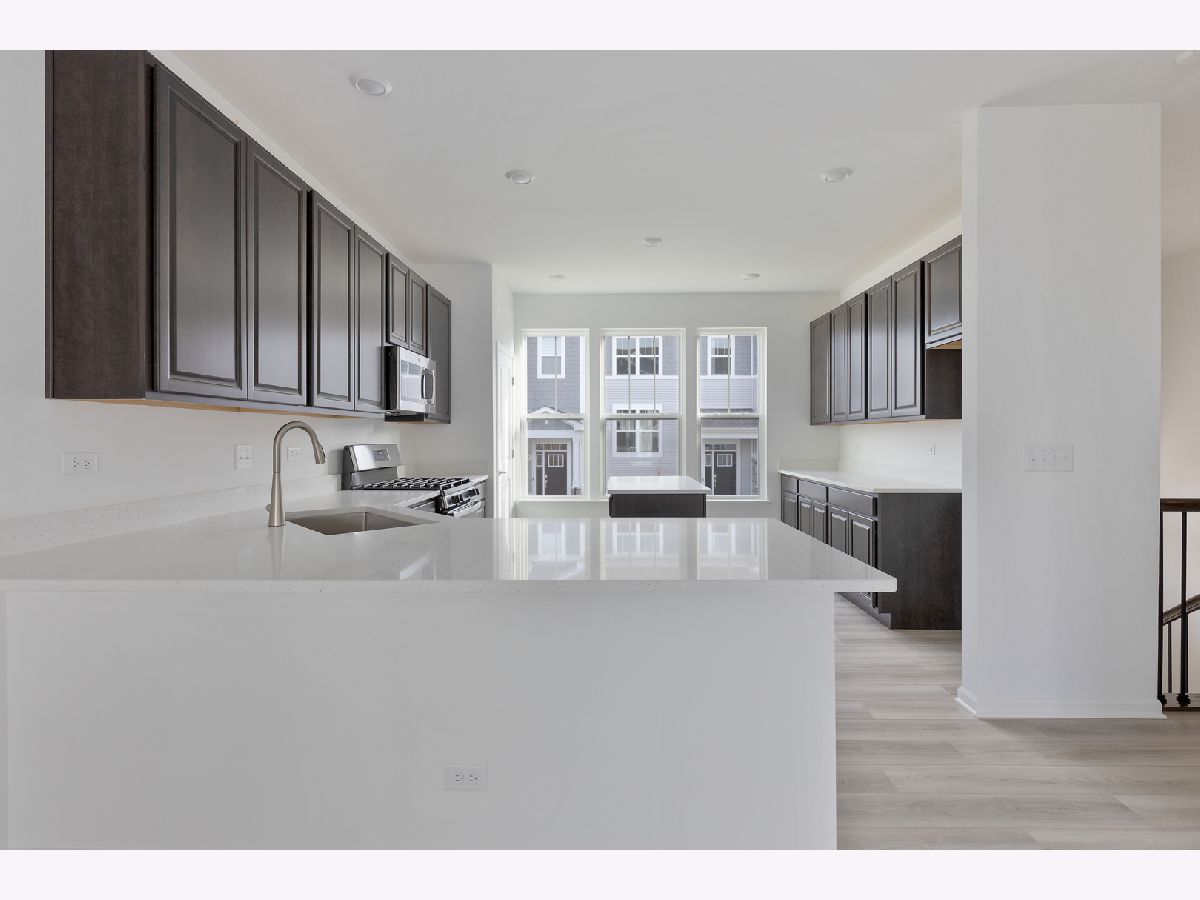 Beautiful newer construction End unit! This Chatham model has a modern kitchen with center island and breakfast bar that opens to the dining and living room. There are 3 bedrooms upstairs including the spacious owners suite with a generously sized walk-in closet, private bath with quartz vanity top and glass shower door. Laundry room next to bedrooms on upper level. Finished lower level can be used as a home office. Also included are 9 ft main floor ceilings, white two panel doors, shaw carpeting, ring video doorbell & alarm security kit, garage door opener with keypad, and a honeywell smart thermostat. Close proximity to route 59 and I-88. Liberty Meadows is serviced by Young elementary school, Granger middle school and Metea Valley high school. Investor Friendly.