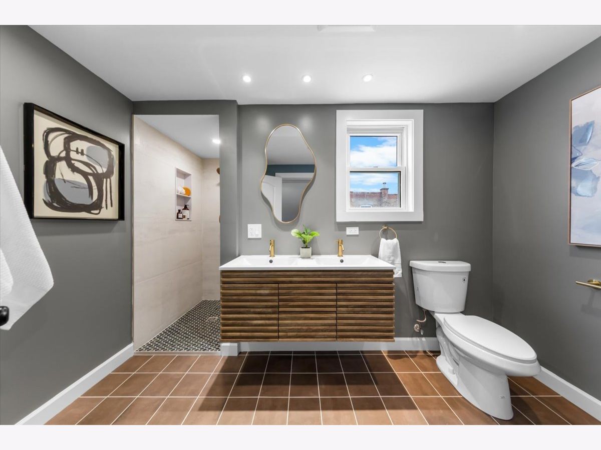 Step into a current yet timeless, newly rehabbed 4-bedroom, 3-bathroom home in the heart of Portage Park. Every inch of this property has been thoughtfully updated, blending modern convenience with charm. The heart of the home is the stunning new kitchen, a true showstopper, featuring stainless steel appliances, quartz countertops, a spacious island perfect for gathering, and gorgeous Zellige tile for texture. This kitchen is as functional as it is beautiful. Stylish light fixtures add a warm glow, while the rich hardwood floors flow seamlessly throughout the home, tying everything together. With four bedrooms and three beautifully updated baths, there's room for everyone to spread out and enjoy. On the second floor, the primary bedroom easily fits a king-size bed, a seating area, and a generously sized walk-in closet. The primary bathroom has a large double vanity and a walk-in shower. Here you will also find a second bedroom. The first floor also has a generously sized bedroom and full bathroom, perfect for guests or multi-generational living. In the light-filled basement are a fourth bedroom, a full bathroom, and a family room for cozy TV time and recreation. Located in vibrant Portage Park with the prolific Park and local shops like Portage Grounds just up the street, you will appreciate the convenience of Six Corners, the Expressway, and public transportation. This home is the perfect mix of modern flair and comfortable living-don't miss your chance to make it yours!