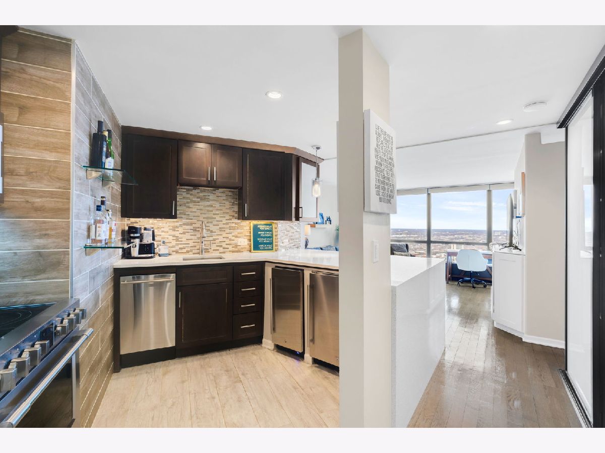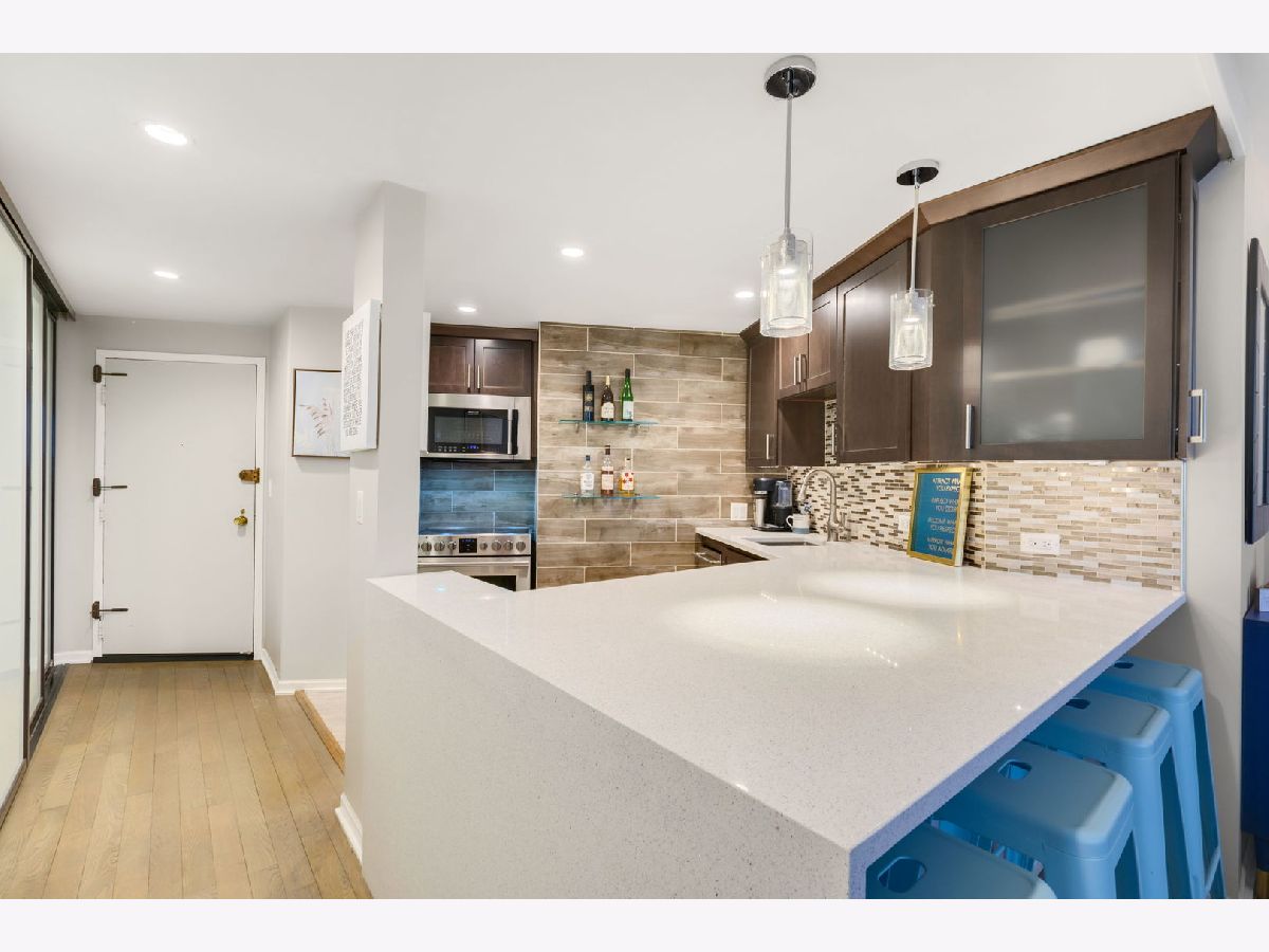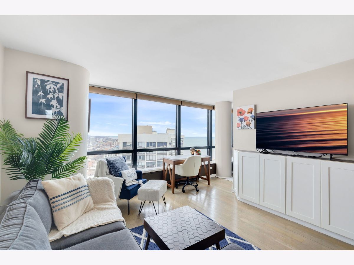 Capturing sweeping lake and city views, this junior 1-bed/convertible studio combines smart design with rare conveniences, including an in-unit washer and dryer-an uncommon feature in the building, while offering a front-row seat to sunrises over the water and peaceful evenings where you can relax on the couch and watch the shoreline glow after dark. The thoughtfully redesigned kitchen blends modern style with smart functionality, featuring sleek cabinetry, extended quartz countertops, stainless steel appliances, and a unique under-counter refrigerator and freezer configuration that keeps the space open and streamlined. A custom-built pantry maximizes storage while maintaining a clean, contemporary feel. The spa-inspired bathroom renovation showcases elegant tilework, a luxurious walk-in shower, and a modern lighted mirror-creating a calming retreat at the end of the day. Throughout the home, motorized shades and intentional lighting design enhance both convenience and ambiance, allowing you to effortlessly transition from bright lakefront mornings to soft, cozy evenings overlooking the city. Adding to the comfort is an extremely rare in-unit washer and dryer, newly replaced in 2026-an exceptional feature that sets this home apart from many others in the building. Residents can enjoy a full-amenity lifestyle with 24-hour door staff, a fitness center, indoor pool and hot tub, sundeck, party room, and package receiving room along with a new wellness salon for lashes and skin care. Just outside your door are the lakefront trails, beaches, and parks, along with being a short distance from the charming Bryn Mawr Historic Corridor, Andersonville, and offering convenient access to Loyola University Chicago. Public transportation is steps away, garage/valet parking is available for a fee. A rare opportunity to enjoy elevated city living with breathtaking lake views, modern upgrades, and everyday convenience.