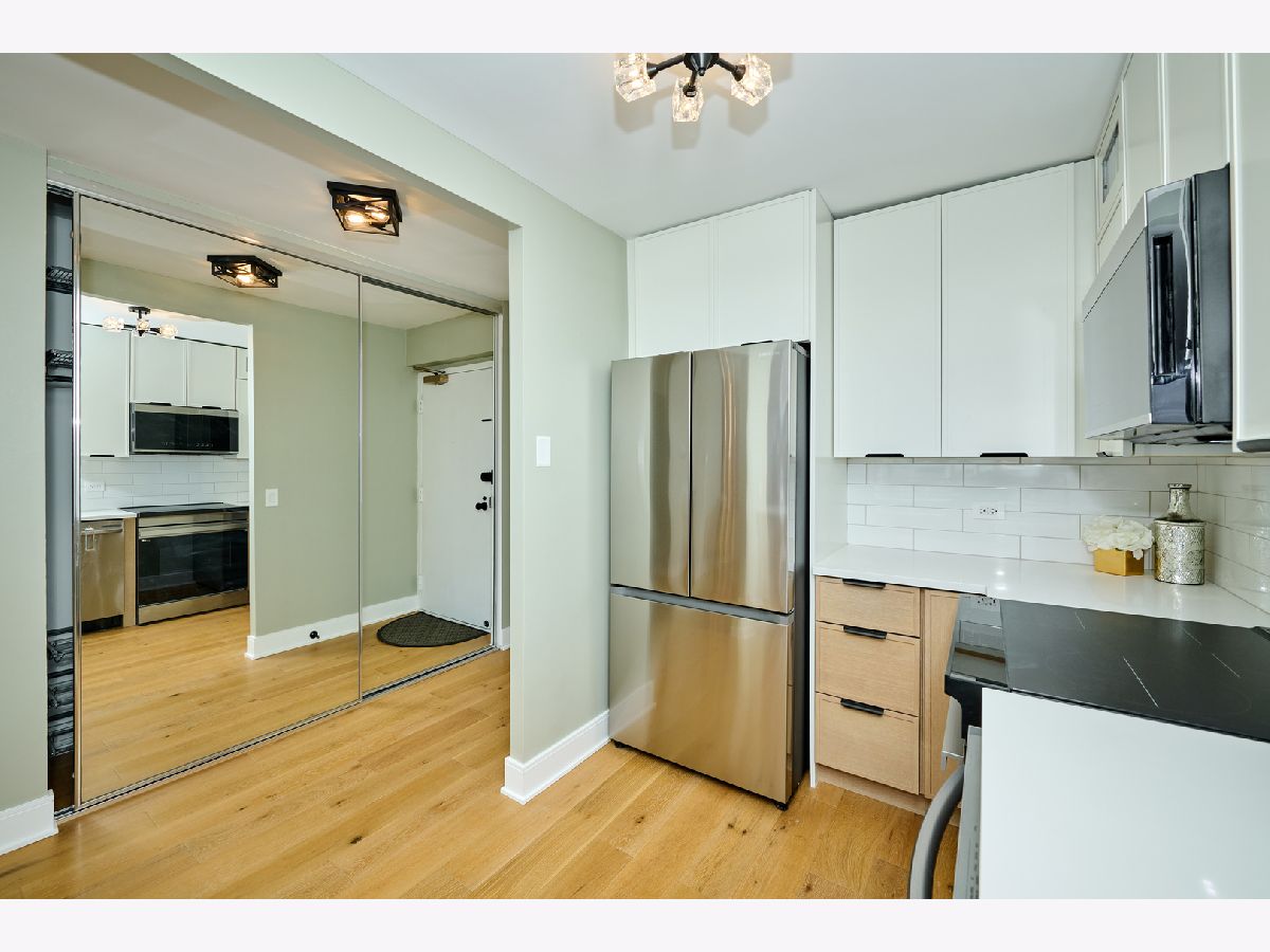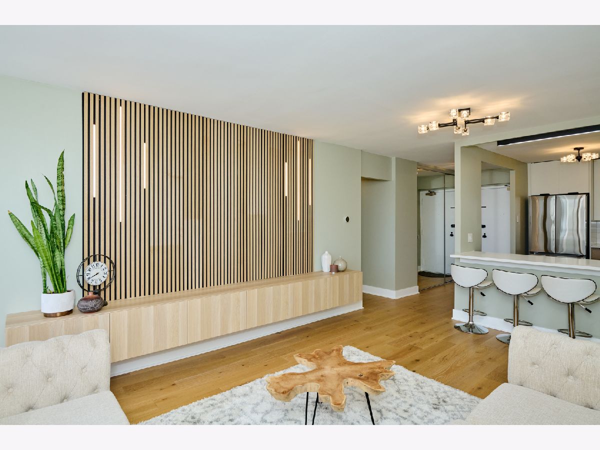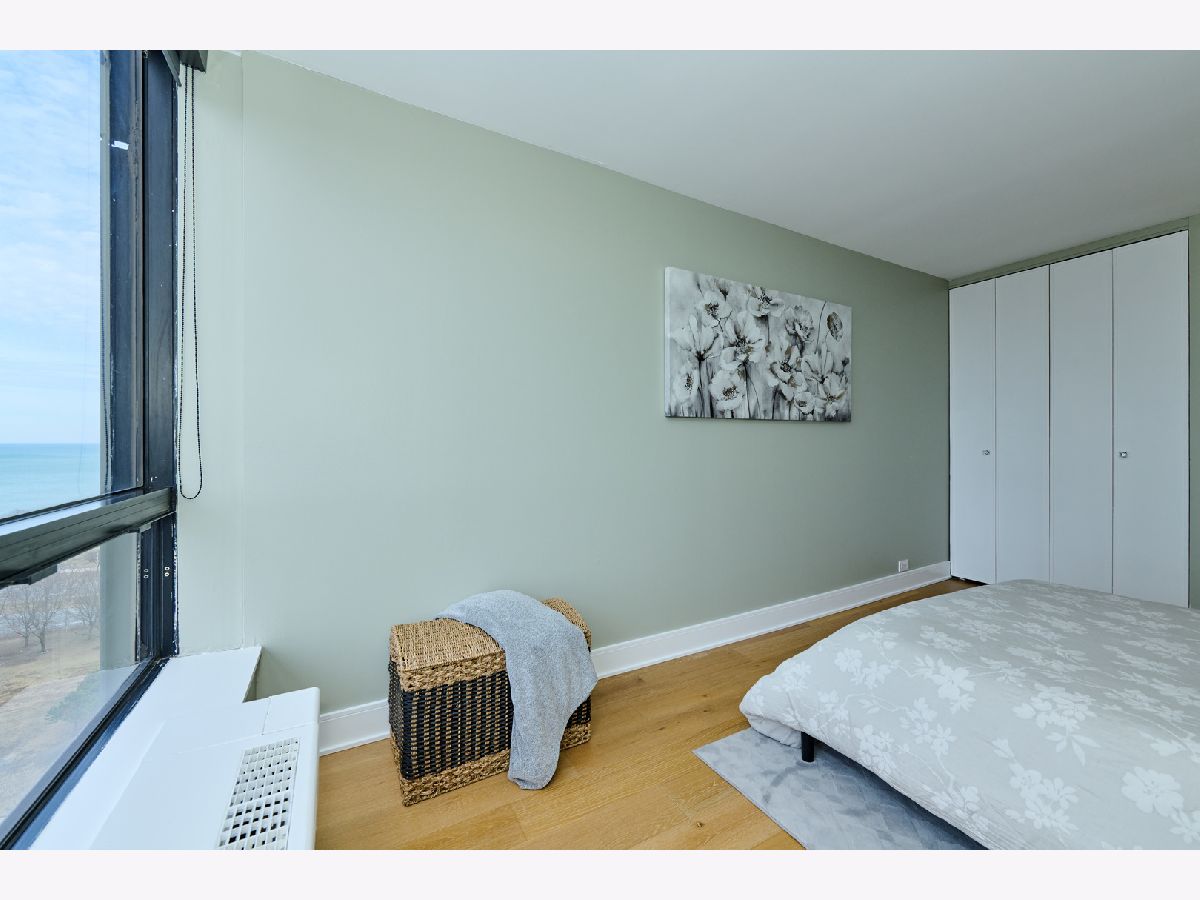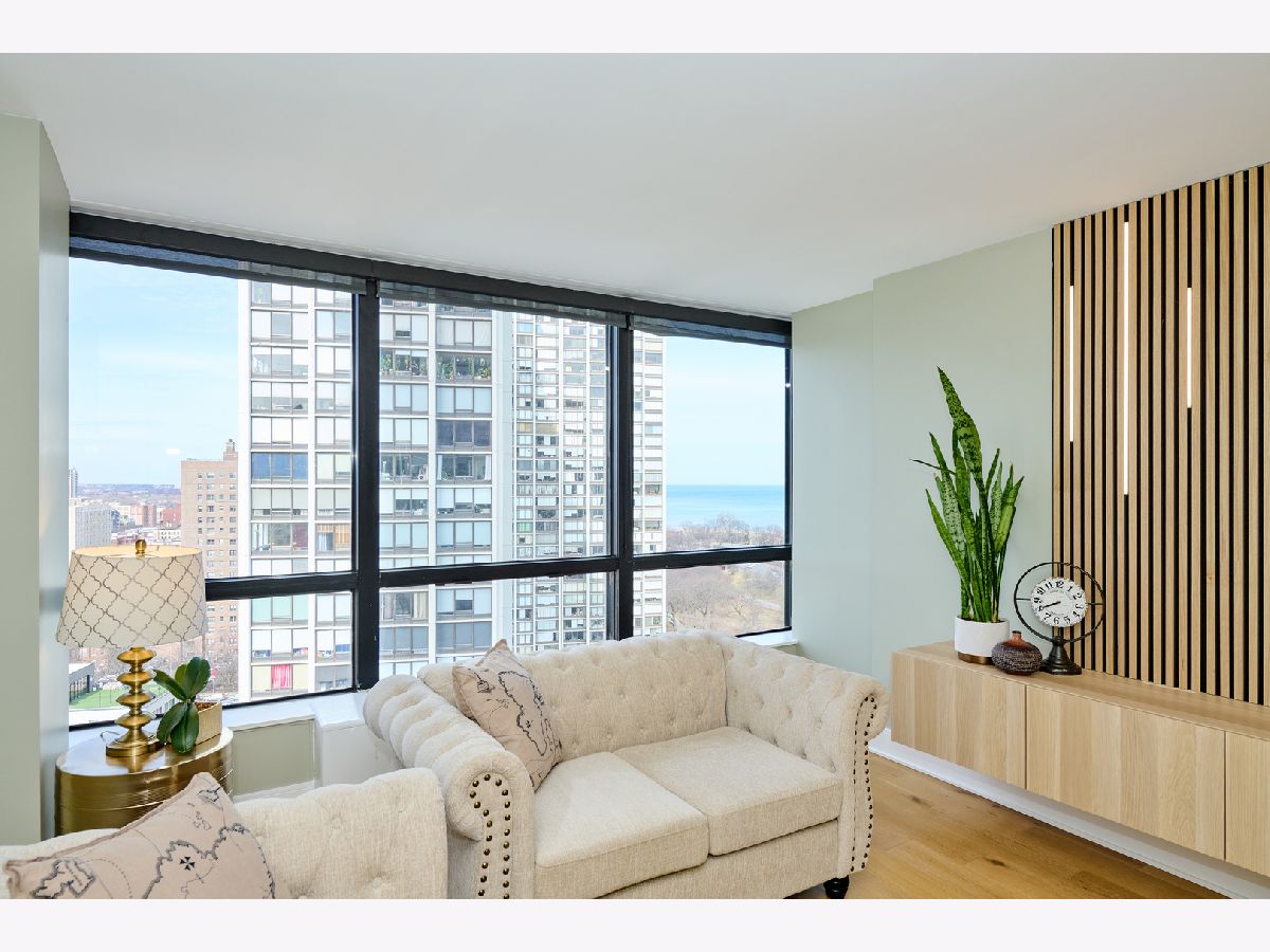 Beautifully Renovated 1-Bedroom Condo with Lake Views in Park Tower. This is one of the nicest one-bedroom units currently available in Park Tower! Recently remodeled from top to bottom by a skilled contractor, this sunny, spacious condo faces Lake Michigan and is full of high-end updates throughout. The unit has been freshly painted and features engineered wood flooring, new doors, baseboards, and trims. The kitchen is completely new and thoughtfully designed with tall cabinets, Calacatta quartz countertops, a large peninsula, and all stainless steel appliances-including a beverage cooler. It opens into the living space, where you'll find a stylish accent wall with modern acoustic panels. The bathroom was fully redone with new tile, a sleek glass shower door, a remote control bidet toilet, and a modern vanity with an LED temperature-reading faucet. You'll also love the convenience of the brand new washer-dryer combo unit tucked right into the large closet. The unit has updated lighting throughout, a new electric panel, and two Nest thermostats-one just for the bedroom area so you can control your comfort exactly how you like it. There's a private storage locker located on the same floor. Park Tower is one of the tallest buildings in Edgewater and offers full amenities: 24-hour door staff, on-site management, dry cleaners, grocery store, receiving room, party room, laundry room, bike storage, and additional storage on every floor. Health club access (with a membership fee) includes an indoor pool, outdoor pool, gym, sauna, and locker rooms. There's also a sundeck with a koi pond-perfect for relaxing. Garage and valet parking are available with no waitlist. HOA includes heat, A/C, water, basic cable, and internet. Washer/dryer installations are allowed with board approval. Rental cap is in place. No pets allowed. Conveniently located near the park, beach, shopping, restaurants, and public transit. This is a truly beautiful home in a fantastic location-don't miss your chance to see it!