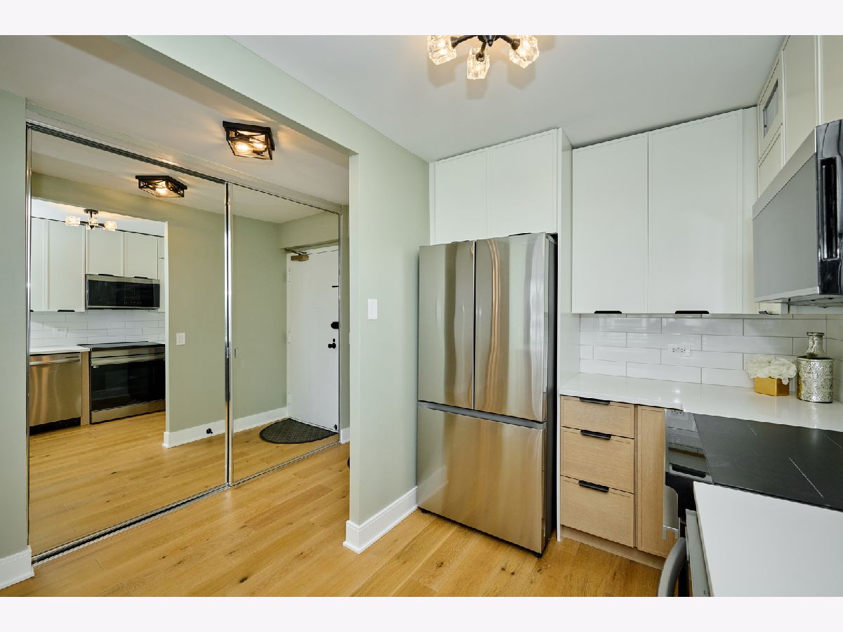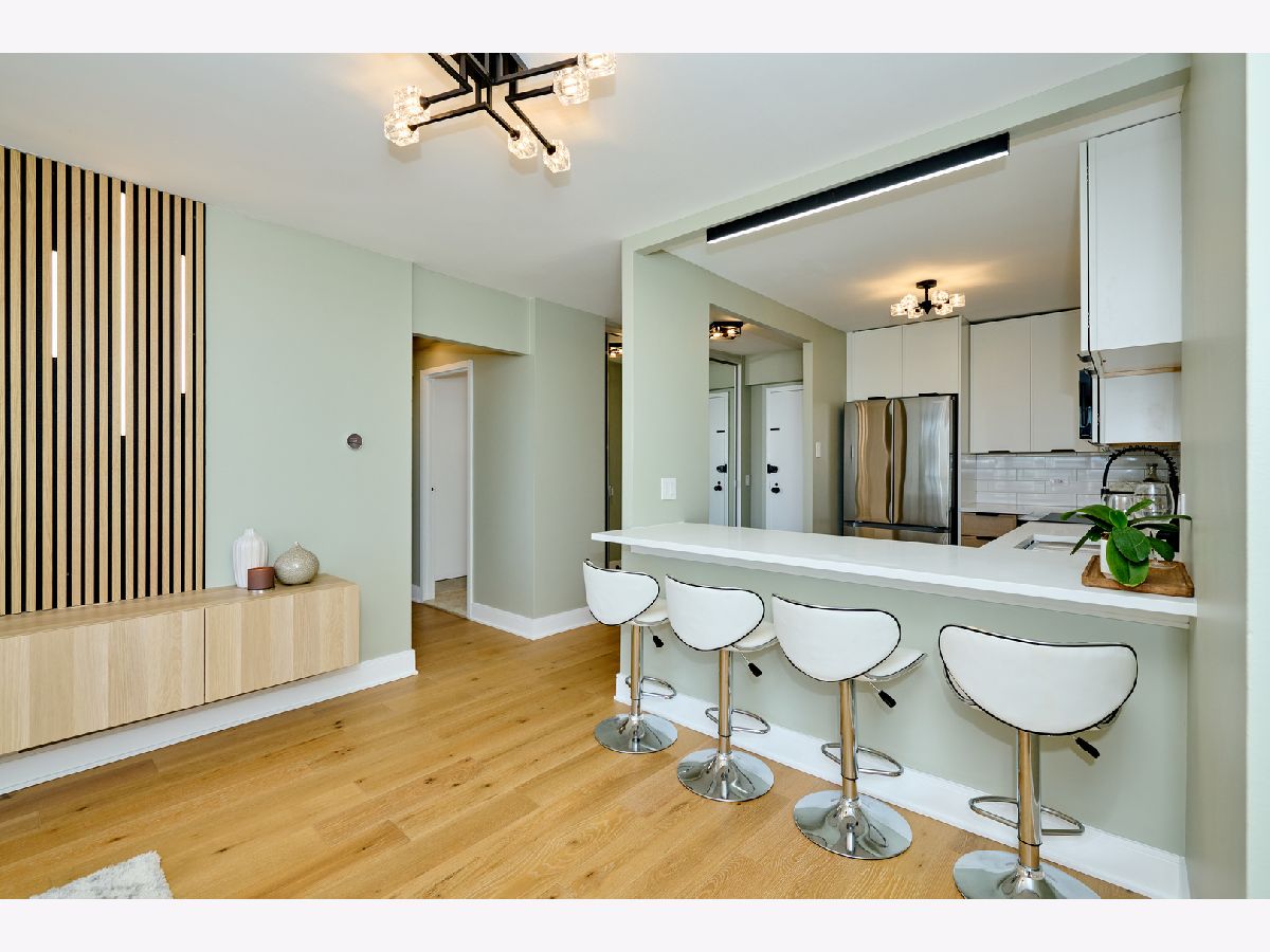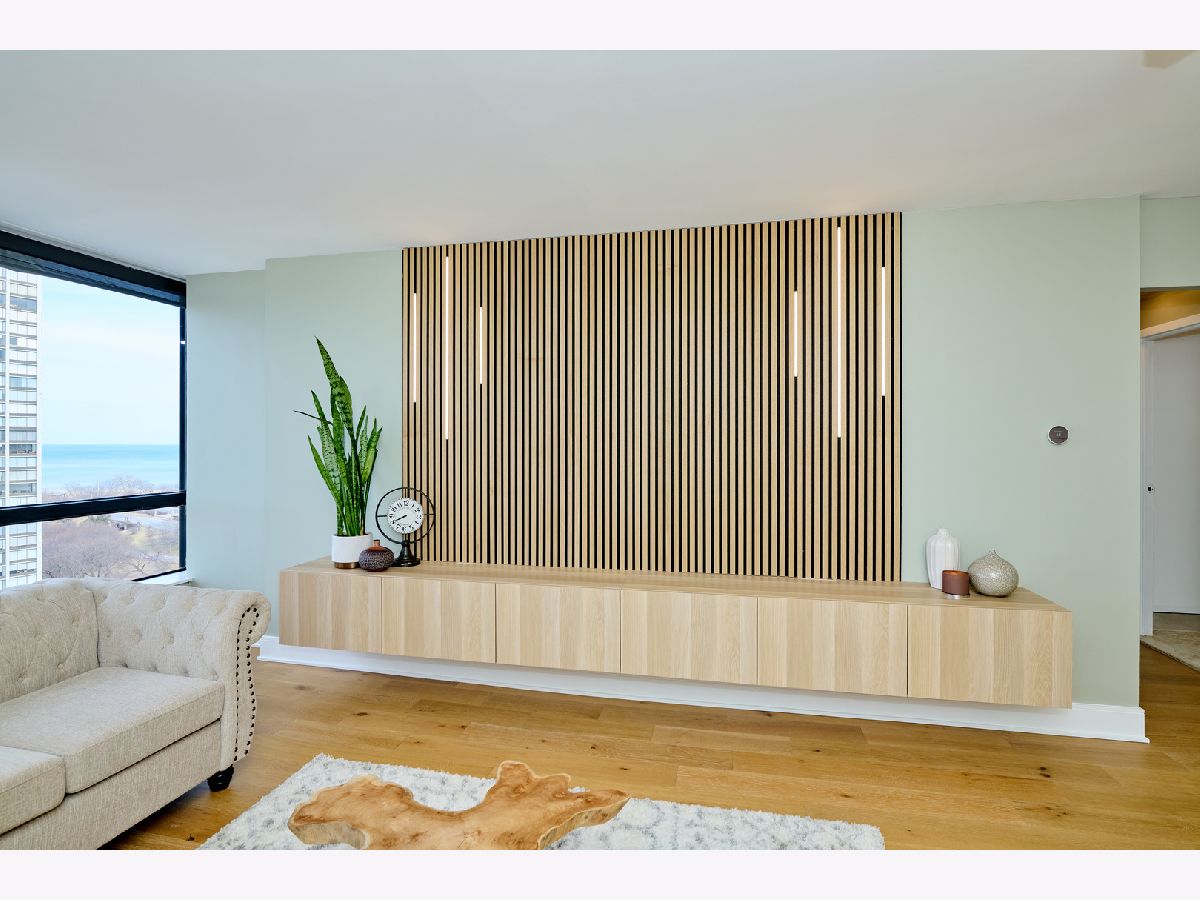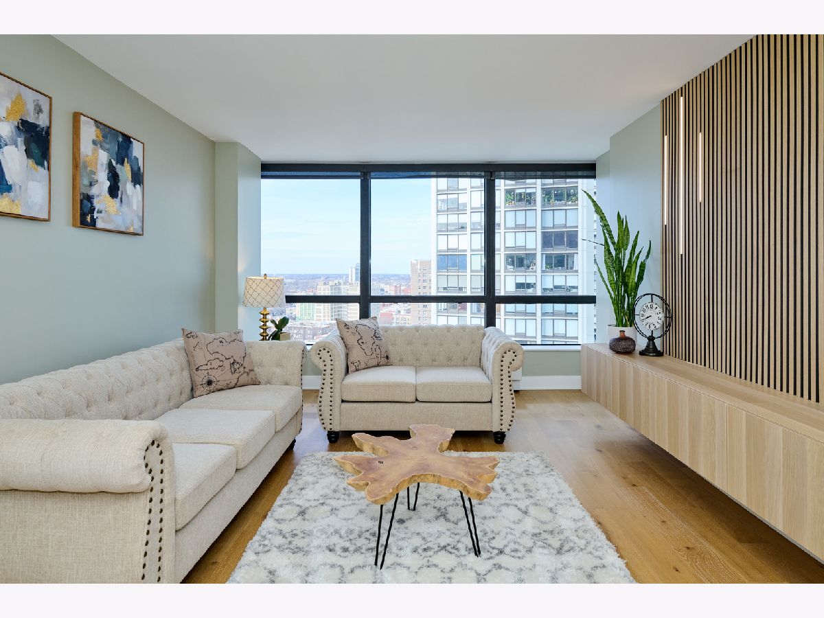 Beautifully Renovated 1-Bedroom Condo with Lake Views in Park Tower. This is one of the nicest one-bedroom units currently available in Park Tower! Recently remodeled from top to bottom by a skilled contractor, this sunny, spacious condo faces Lake Michigan and is full of high-end updates throughout. The unit has been freshly painted and features engineered wood flooring, new doors, baseboards, and trims. The kitchen is completely new and thoughtfully designed with tall cabinets, Calacatta quartz countertops, a large peninsula, and all stainless steel appliances-including a beverage cooler. It opens into the living space, where you'll find a stylish accent wall with modern acoustic panels. The bathroom was fully redone with new tile, a sleek glass shower door, a remote control bidet toilet, and a modern vanity with an LED temperature-reading faucet. You'll also love the convenience of the brand new washer-dryer combo unit tucked right into the large closet. The unit has updated lighting throughout, a new electric panel, and two Nest thermostats-one just for the bedroom area so you can control your comfort exactly how you like it. There's a private storage locker located on the same floor. Park Tower is one of the tallest buildings in Edgewater and offers full amenities: 24-hour door staff, on-site management, dry cleaners, grocery store, receiving room, party room, laundry room, bike storage, and additional storage on every floor. Health club access (with a membership fee) includes an indoor pool, outdoor pool, gym, sauna, and locker rooms. There's also a sundeck with a koi pond-perfect for relaxing. Garage and valet parking are available with no waitlist. HOA includes heat, A/C, water, basic cable, and internet. Washer/dryer installations are allowed with board approval. Rental cap is in place. No pets allowed. Conveniently located near the park, beach, shopping, restaurants, and public transit. This is a truly beautiful home in a fantastic location-don't miss your chance to see it!