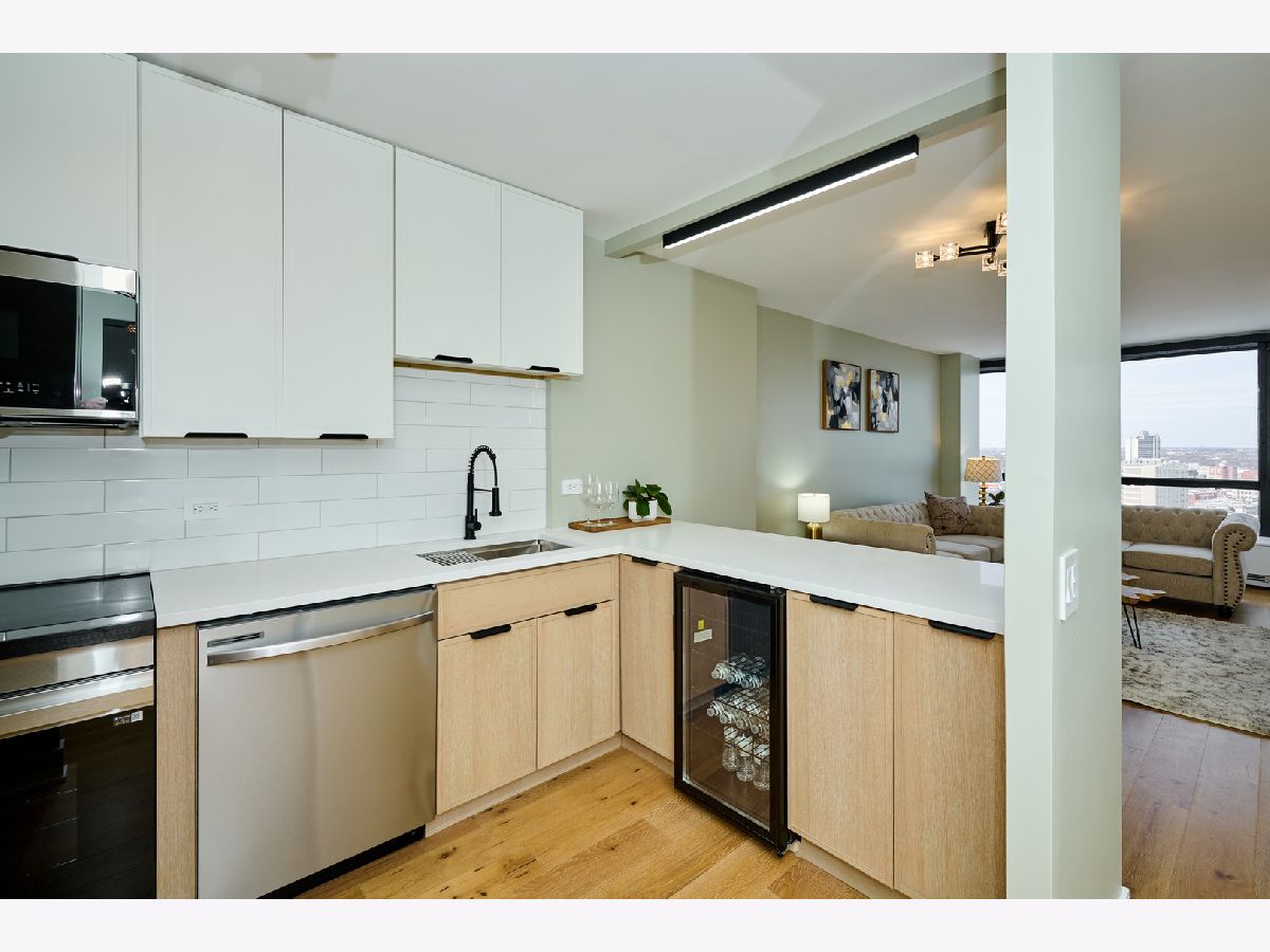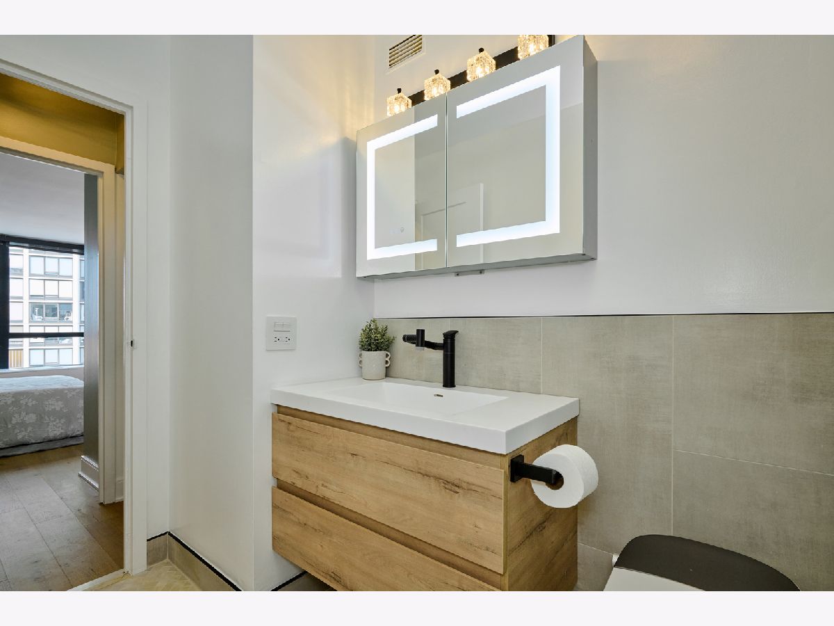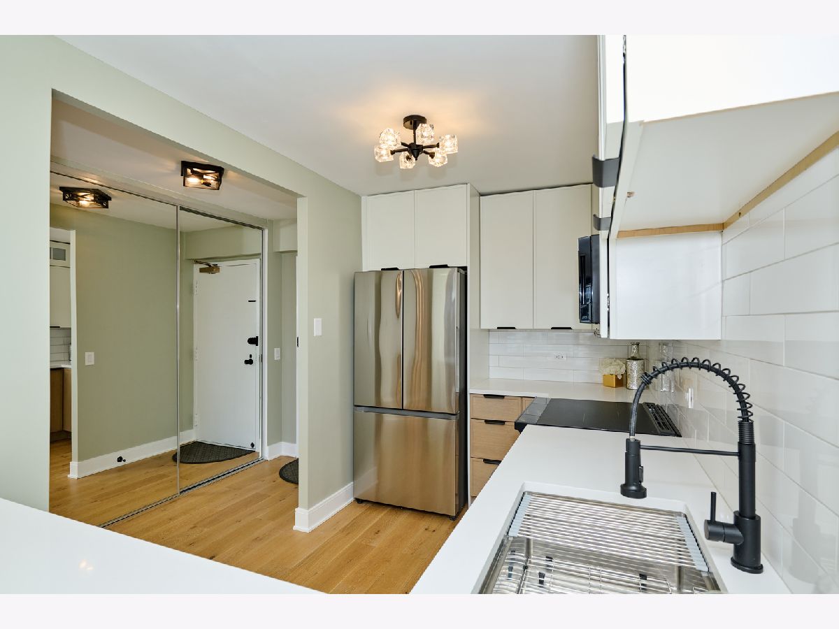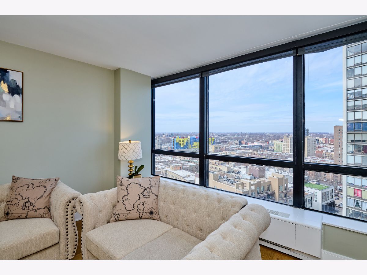 Beautifully Renovated 1-Bedroom Condo with Lake Views in Park Tower. This is one of the nicest one-bedroom units currently available in Park Tower! Recently remodeled from top to bottom by a skilled contractor, this sunny, spacious condo faces Lake Michigan and is full of high-end updates throughout. The unit has been freshly painted and features engineered wood flooring, new doors, baseboards, and trims. The kitchen is completely new and thoughtfully designed with tall cabinets, Calacatta quartz countertops, a large peninsula, and all stainless steel appliances-including a beverage cooler. It opens into the living space, where you'll find a stylish accent wall with modern acoustic panels. The bathroom was fully redone with new tile, a sleek glass shower door, a remote control bidet toilet, and a modern vanity with an LED temperature-reading faucet. You'll also love the convenience of the brand new washer-dryer combo unit tucked right into the large closet. The unit has updated lighting throughout, a new electric panel, and two Nest thermostats-one just for the bedroom area so you can control your comfort exactly how you like it. There's a private storage locker located on the same floor. Park Tower is one of the tallest buildings in Edgewater and offers full amenities: 24-hour door staff, on-site management, dry cleaners, grocery store, receiving room, party room, laundry room, bike storage, and additional storage on every floor. Health club access (with a membership fee) includes an indoor pool, outdoor pool, gym, sauna, and locker rooms. There's also a sundeck with a koi pond-perfect for relaxing. Garage and valet parking are available with no waitlist. HOA includes heat, A/C, water, basic cable, and internet. Washer/dryer installations are allowed with board approval. Rental cap is in place. No pets allowed. Conveniently located near the park, beach, shopping, restaurants, and public transit. This is a truly beautiful home in a fantastic location-don't miss your chance to see it!
