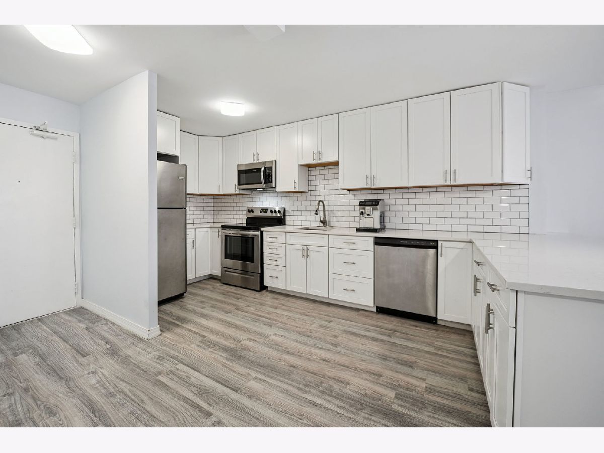 For the buyer who wants it all! Pristine newer renovation, completely opened with expanded kitchen. Living room features panoramic views spanning the lake to city. Kitchen has miles of quartz countertops, 42" cabinets, and large breakfast bar for dining. Tons of hall closet space. Updated bathroom with granite counters and linen cabinet. Wake up to the lake view in the king-sized bedroom which has a big walk-in closet and an additional closet too. Vinyl plank flooring throughout. No detail overlooked. Enjoy Park Tower living. Included in your assessment are cable and internet, heating and air conditioning. Full amenity building that features an indoor pool and outdoor pool, whirlpool, fitness center, receiving room, bicycle room, laundry room, dry cleaners, sundeck with gas grills, on-site management and maintenance, and a doorman to greet you! Close to all Edgewater and Andersonville has to offer. Catch the bus outside your front door and the Red Line .3 miles close!