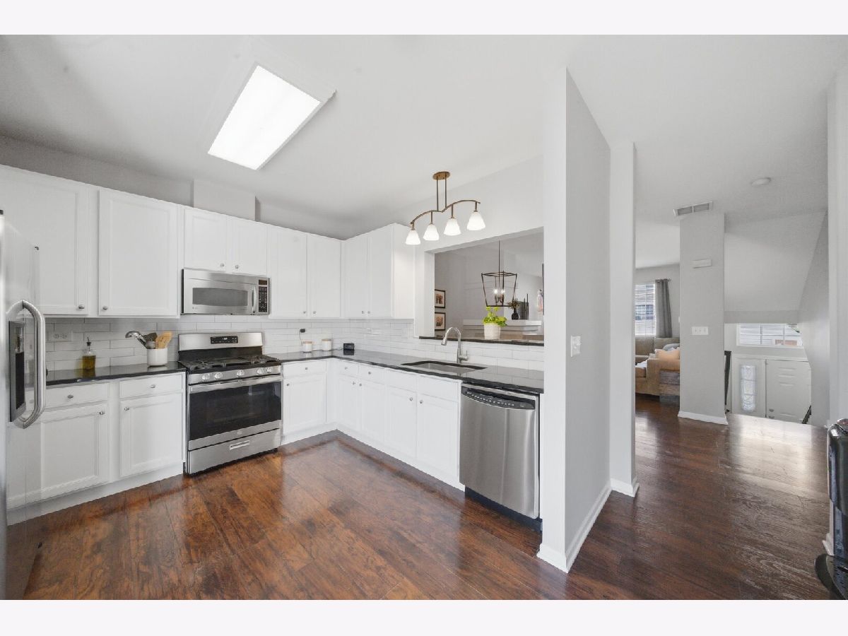 Beautifully updated 2-bedroom, 2.5-bath townhouse in the heart of Cary! Spacious & move-in ready living space. Home was fully remodeled in 2019 and features hardwood flooring throughout, fresh interior paint, and new carpet on stairs (2025). Updated kitchen includes modern finishes and newer stove (2024). Main level offers an open-concept living and dining area with a gas fireplace and access to private balcony. Upstairs features two generously sized bedrooms, each with en-suite bathrooms. Additional highlights include updated half bath full lower level space that can be a flex area from sleeping to office/ workout room and more. Attached 2-car garage. Conveniently located approximately 1 mile from downtown Cary, Metra station, shopping, and dining. Shows beautifully! Don't miss this one, schedule your showing today!