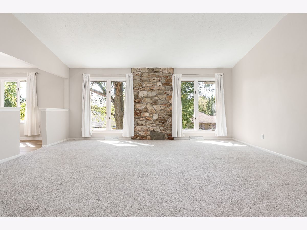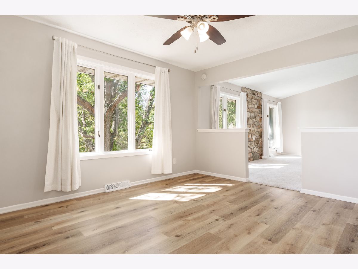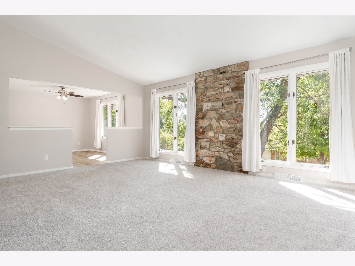 Beautifully updated ranch in a peaceful cul-de-sac! This spacious home offers over 1,900 sq ft on the main level, with 3 bedrooms and 3 full bathrooms. You'll love the open, large living room featuring a vaulted ceiling, a stone accent wall flanked by big windows overlooking the backyard that bring in plenty of natural light. The brand-new flooring runs throughout the entire main level and matches the neutral paint colors and white trim. The updated eat-in kitchen includes espresso-stained cabinets, quartz countertops, a peninsula with additional sitting space, stainless-steel appliances, and ample countertop area for cooking and entertaining. Convenient main-floor laundry enhances everyday practicality. Three generously sized bedrooms include a large primary suite with a private bath and an extra-large walk-in closet. The fully exposed walk-out lower level features a third full bath and is ready to be finished for more living space. Major updates include a new roof, gutters, and siding, plus newer HVAC and mechanical systems installed within the last 10 years for added peace of mind. An attached two-car garage, strong curb appeal, and a spacious backyard with a playset and enclosed porch complete the package. Move-in ready and easy to show-schedule your tour today!