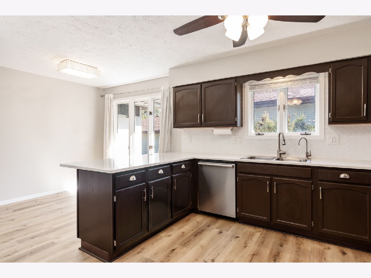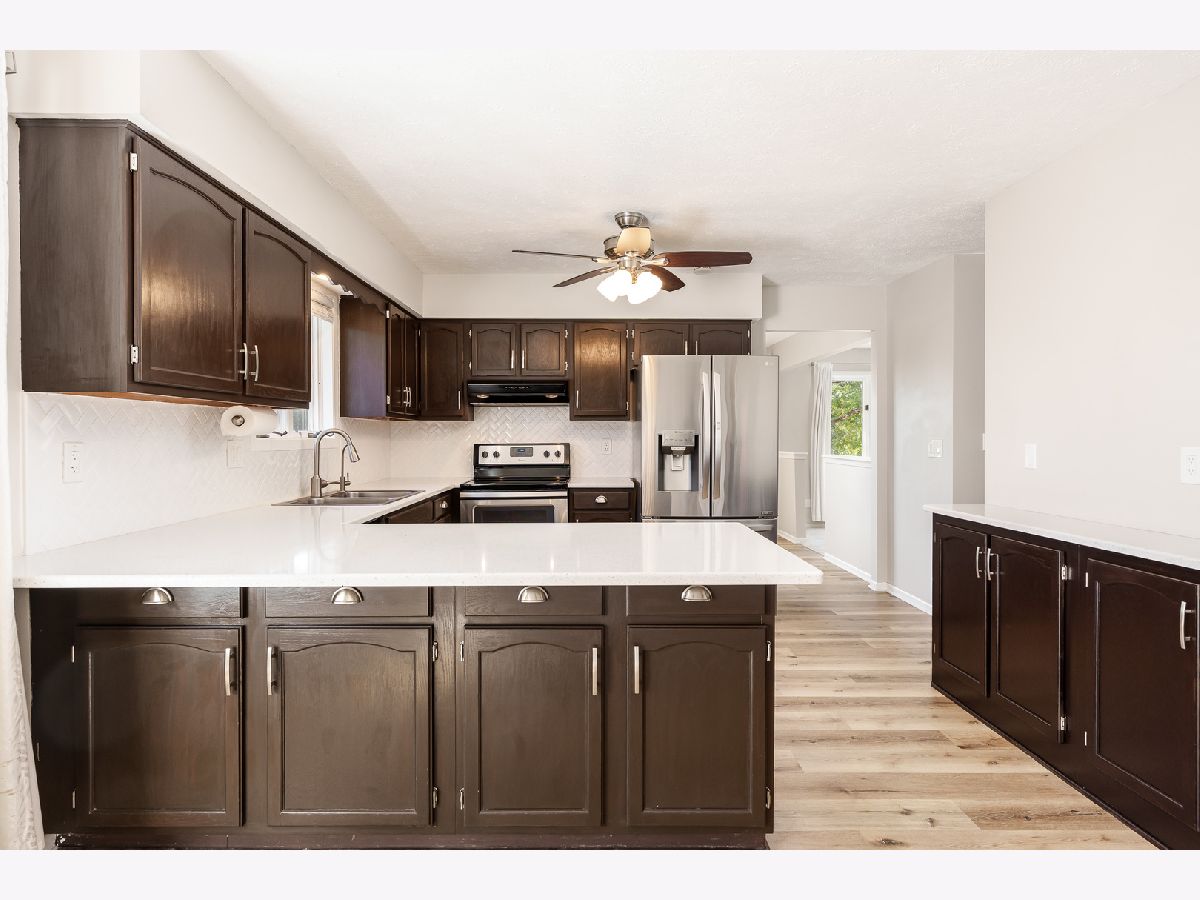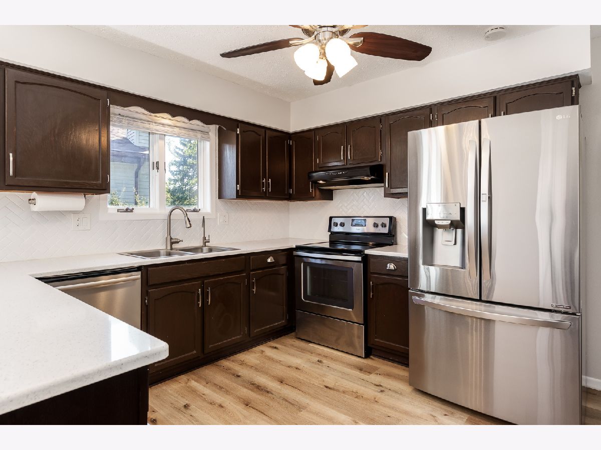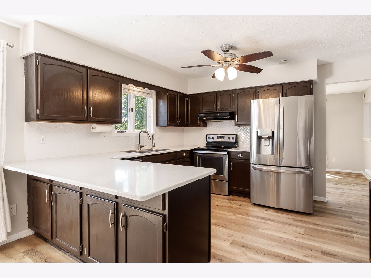Beautifully updated ranch in a peaceful cul-de-sac! This spacious home offers over 1,900 sq ft on the main level, with 3 bedrooms and 3 full bathrooms. You'll love the open, large living room featuring a vaulted ceiling, a stone accent wall flanked by big windows overlooking the backyard that bring in plenty of natural light. The brand-new flooring runs throughout the entire main level and matches the neutral paint colors and white trim. The updated eat-in kitchen includes espresso-stained cabinets, quartz countertops, a peninsula with additional sitting space, stainless-steel appliances, and ample countertop area for cooking and entertaining. Convenient main-floor laundry enhances everyday practicality. Three generously sized bedrooms include a large primary suite with a private bath and an extra-large walk-in closet. The fully exposed walk-out lower level features a third full bath and is ready to be finished for more living space. Major updates include a new roof, gutters, and siding, plus newer HVAC and mechanical systems installed within the last 10 years for added peace of mind. An attached two-car garage, strong curb appeal, and a spacious backyard with a playset and enclosed porch complete the package. Move-in ready and easy to show-schedule your tour today!