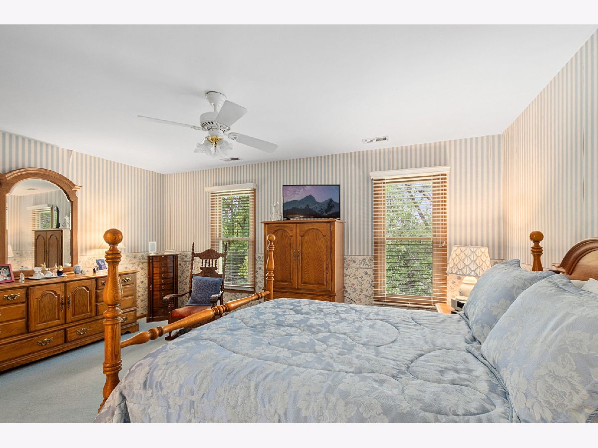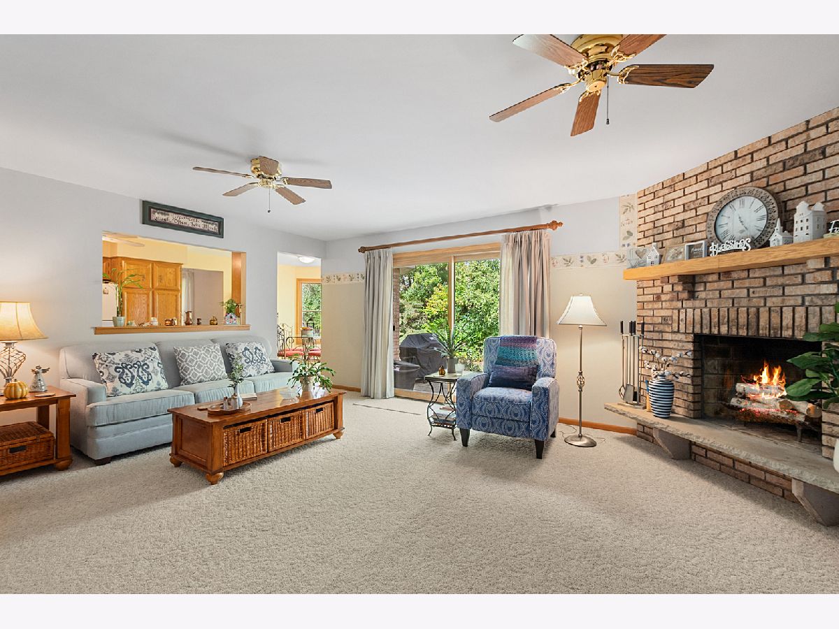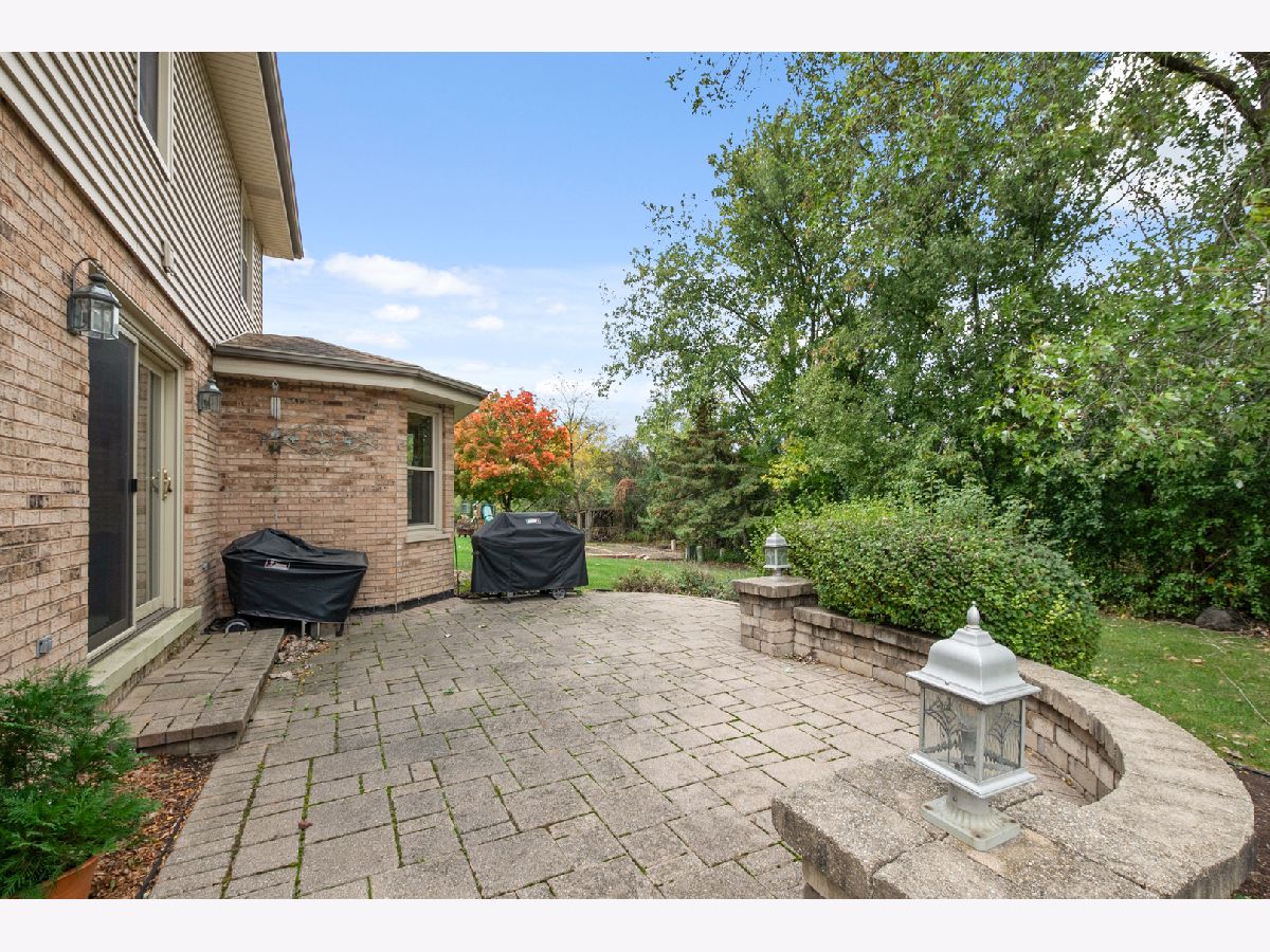 Welcome to this beautifully updated and thoughtfully maintained two-story home, perfectly positioned to take full advantage of its tranquil setting backing to the forest preserve and walking path. From the moment you step inside, you'll appreciate the inviting layout, warm natural light, and the pride of ownership reflected throughout. The main level features an expansive Open Living and Dining Room-an ideal space for both everyday comfort and effortless entertaining. Just beyond, the cozy Family Room offers a perfect gathering spot with newer plush carpeting, a charming wood-burning fireplace with brick surround, two elegant Casablanca ceiling fans, and a newer sliding glass door that frames the lush backyard and leads out to the patio. The Eat-in Kitchen combines classic craftsmanship and modern updates with solid oak cabinetry, hardwood flooring, and a large picture window that overlooks the beautifully landscaped, private yard-creating a scenic setting for morning coffee or casual meals. A convenient Main Floor Bedroom provides flexible use as a guest room, office, or playroom. The main level also includes a dedicated Laundry Room, a well-located Half Bath, and newly installed hardwood flooring on the staircase that elevates the home's overall feel. The second floor continues with new hardwood flooring that extends through the hallway. Retreat to the spacious Primary Bedroom featuring a walk-in closet equipped with custom organizers and an en-suite Full Bath. The impressive Second Bedroom is exceptionally large and enhanced with plantation shutters along with four generous closets-offering unmatched storage and versatility. The Third Bedroom includes custom built-in closet organizers, maximizing function and organization. A bright and spacious Hall Bath with double sinks serves the upper bedrooms with ease. The Full Finished Basement expands the living space considerably. Enjoy a large Second Family Room perfect for movie nights or gatherings, a dedicated Rec Room, and a Bar Area complete with a built-in sink-ready for entertaining. The Basement also includes a Full Bath with a shower and a Utility/Workshop Area that provides outstanding storage options or space for hobby projects. Step outside to your own private outdoor oasis. The backyard showcases professional landscaping, mature greenery, and a stunning brick paver patio equipped with electrical automatic built-in lighting-an ideal place to unwind, grill, or host evening get-togethers against the backdrop of the forest preserve. Additional notable upgrades include newer windows and sliding glass doors, solid oak six-panel doors throughout the home, and the convenience and efficiency of two furnace and A/C units. Combining comfort, craftsmanship, and a truly picturesque setting, this exceptional home offers the perfect blend of style and nature. Don't miss your opportunity to make this beautiful property your own!