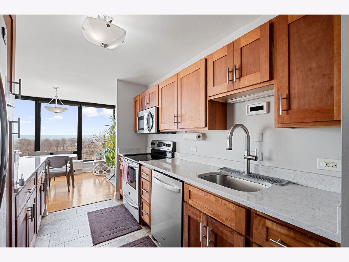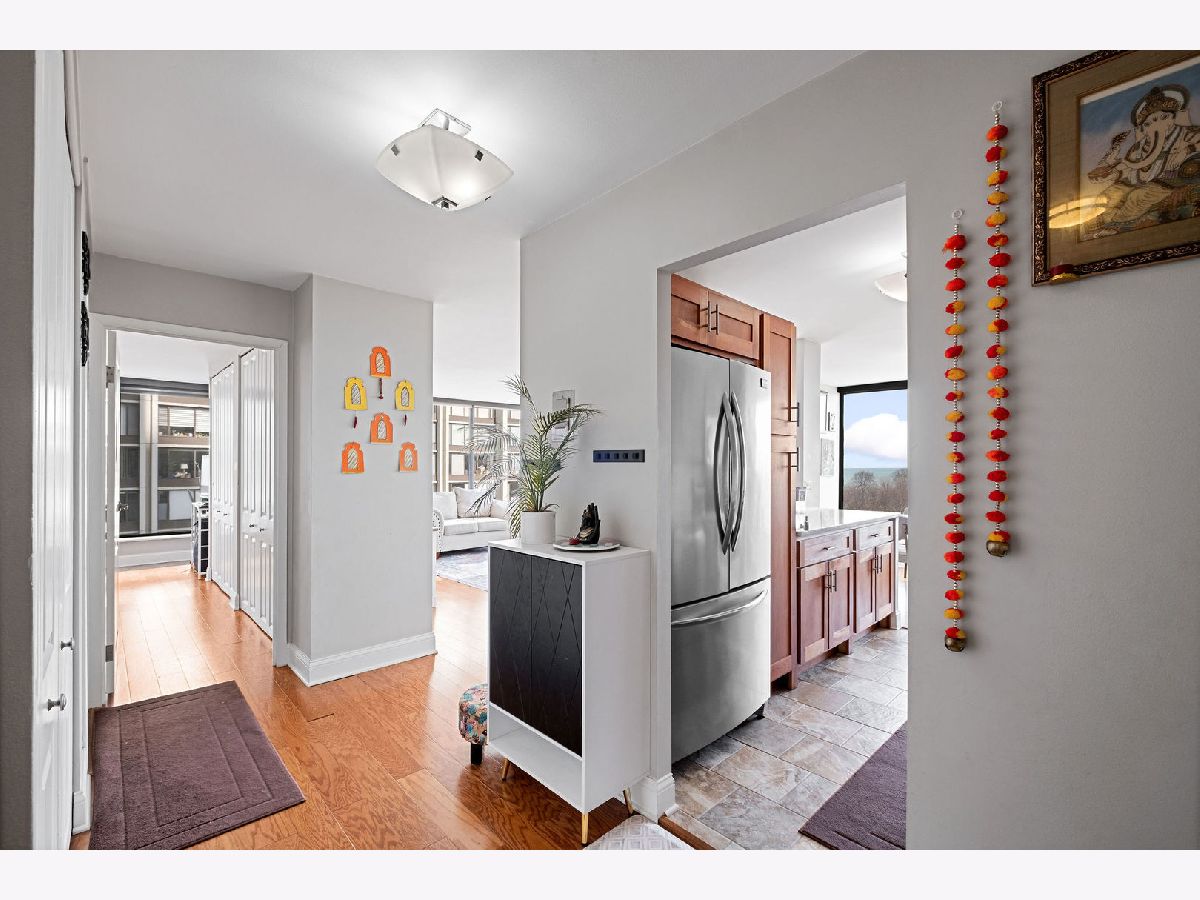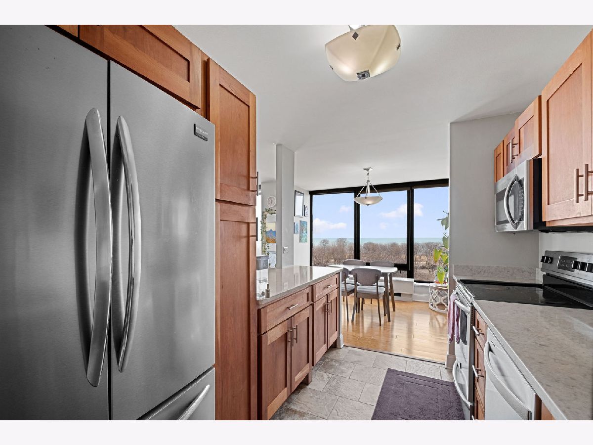 Stunning corner 2-bedroom, 2-bath residence offering spectacular, unobstructed lake views. This rarely available and updated east-facing condo is filled with natural light. The open kitchen flows seamlessly into the living space, perfectly positioned to capture the sweeping lake and park views. Tastefully renovated in 2020, the kitchen boasts modern cabinetry, sleek countertops, and stainless-steel appliances. The primary suite enjoys the same views, tons of closet space, and a private en-suite bath. The spacious second bedroom offers generous proportions and ample closet space. An additional storage locker is included and located on the same floor. Full-service building with 24-hour door staff, on-site management and engineering, a sun deck, tennis court, and grilling area. An exceptional location with easy access to the lakefront, park, bike and running paths, Hollywood and Foster beaches, Lake Shore Drive, CTA Red Line (Berwyn), express buses, and a wide array of nearby shops, grocery stores, restaurants, and entertainment.