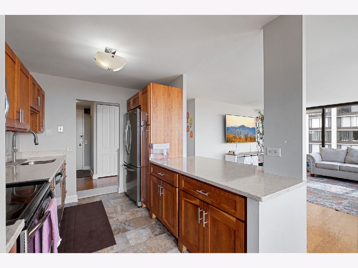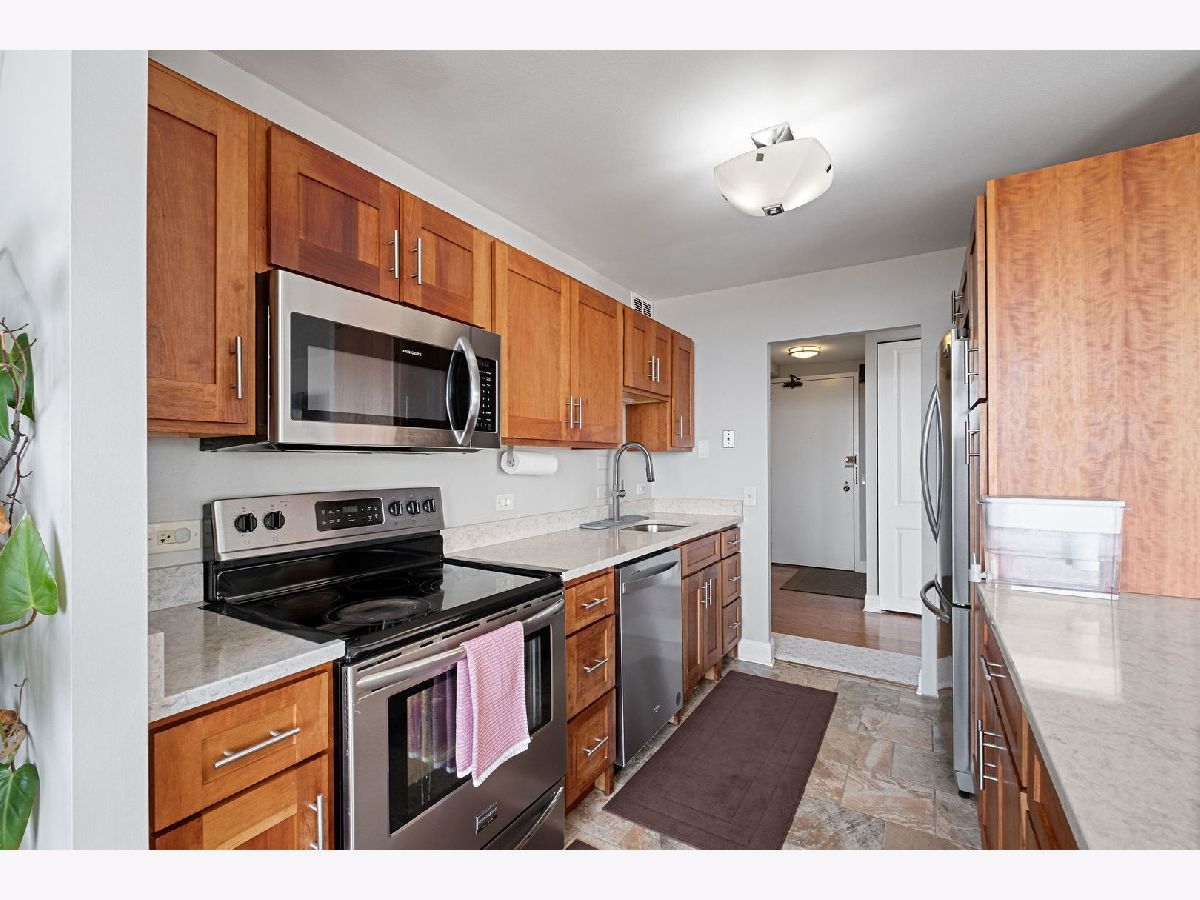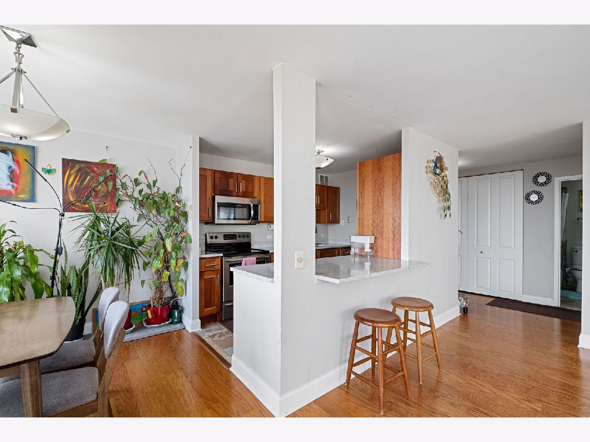 Stunning corner 2-bedroom, 2-bath residence offering spectacular, unobstructed lake views. This rarely available and updated east-facing condo is filled with natural light. The open kitchen flows seamlessly into the living space, perfectly positioned to capture the sweeping lake and park views. Tastefully renovated in 2020, the kitchen boasts modern cabinetry, sleek countertops, and stainless-steel appliances. The primary suite enjoys the same views, tons of closet space, and a private en-suite bath. The spacious second bedroom offers generous proportions and ample closet space. An additional storage locker is included and located on the same floor. Full-service building with 24-hour door staff, on-site management and engineering, a sun deck, tennis court, and grilling area. An exceptional location with easy access to the lakefront, park, bike and running paths, Hollywood and Foster beaches, Lake Shore Drive, CTA Red Line (Berwyn), express buses, and a wide array of nearby shops, grocery stores, restaurants, and entertainment.