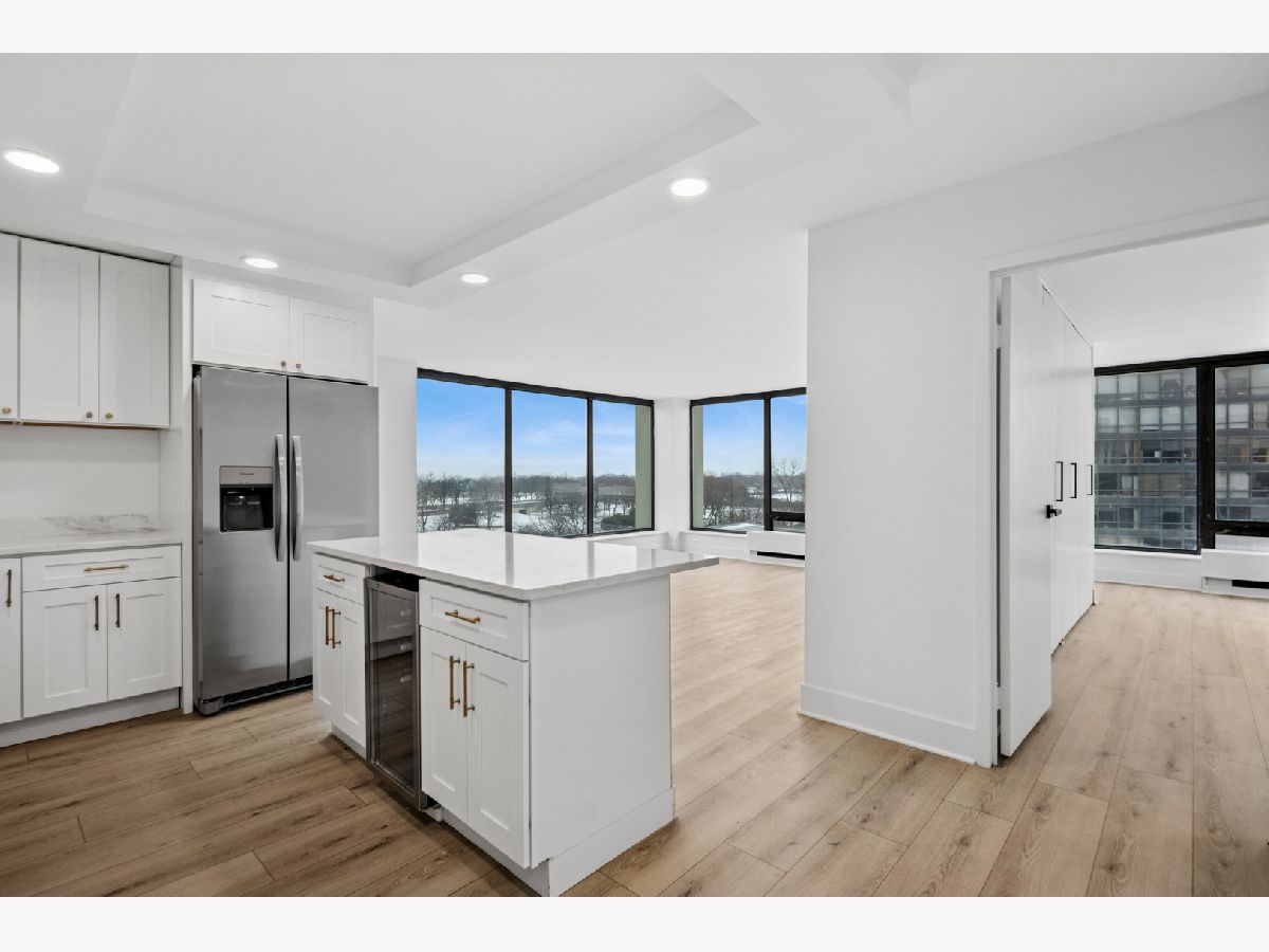 Enjoy the high-rise living you've been waiting for! This stunning 3-bedroom, 2-bathroom condo in Edgewater's Bryn Mawr Historic District offers breathtaking lakefront views. Enjoy views of Lake Michigan from every room, with vistas available to the north, south, and east. Completely renovated in 2025, the open layout is designed for both everyday living and entertaining guests. The new kitchen boasts quartz countertops, stylish cabinets, and a spacious island with seating, all complemented by stainless steel appliances. Luxury vinyl flooring flows seamlessly throughout, leading to a generous living room. The main bedroom features a spa-like bathroom with glass shower doors and neutral tiles. Ample storage is provided by a large closet and built-in shelves. Monthly fees cover heating, cooling, cable, and internet, making this condo a great opportunity for investors. It's conveniently located just steps from Foster Beach, bike paths, express buses, the Red Line, Andersonville, and Mariano's, delivering the best of city living. The building offers 24-hour staff and a variety of services, including a secure receiving room, bike room, laundry, and dry cleaning. While pets aren't allowed, ESA animals can reside here with appropriate paperwork. Residents may access optional amenities such as a library, tennis courts, a party room, and a sundeck. Indoor and outdoor pools, along with a fitness center at nearby buildings, are available for a fee.
