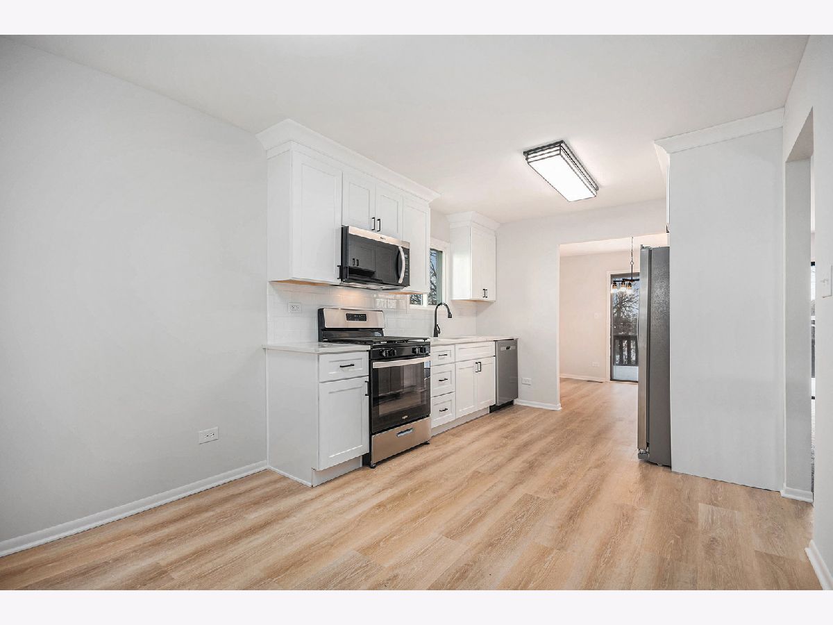 Come take a look at this beautiful 4-bedroom, 3-bath raised ranch in Hanover Park! This lovely home features fresh paint, luxury vinyl flooring, and new carpet throughout. The moment you walk in, you're welcomed by a spacious living room filled with natural light, along with a large dining room and a cozy breakfast nook adjacent to the kitchen, which boasts new cabinets, quartz countertops, and stainless steel appliances. The main level offers three generously sized bedrooms, while the lower level features a walk-out family room, an additional full bedroom and bath-perfect for guests or extended living-and a two-car garage for added convenience. Ideally located near schools, parks, shopping, and more-schedule your showing today!