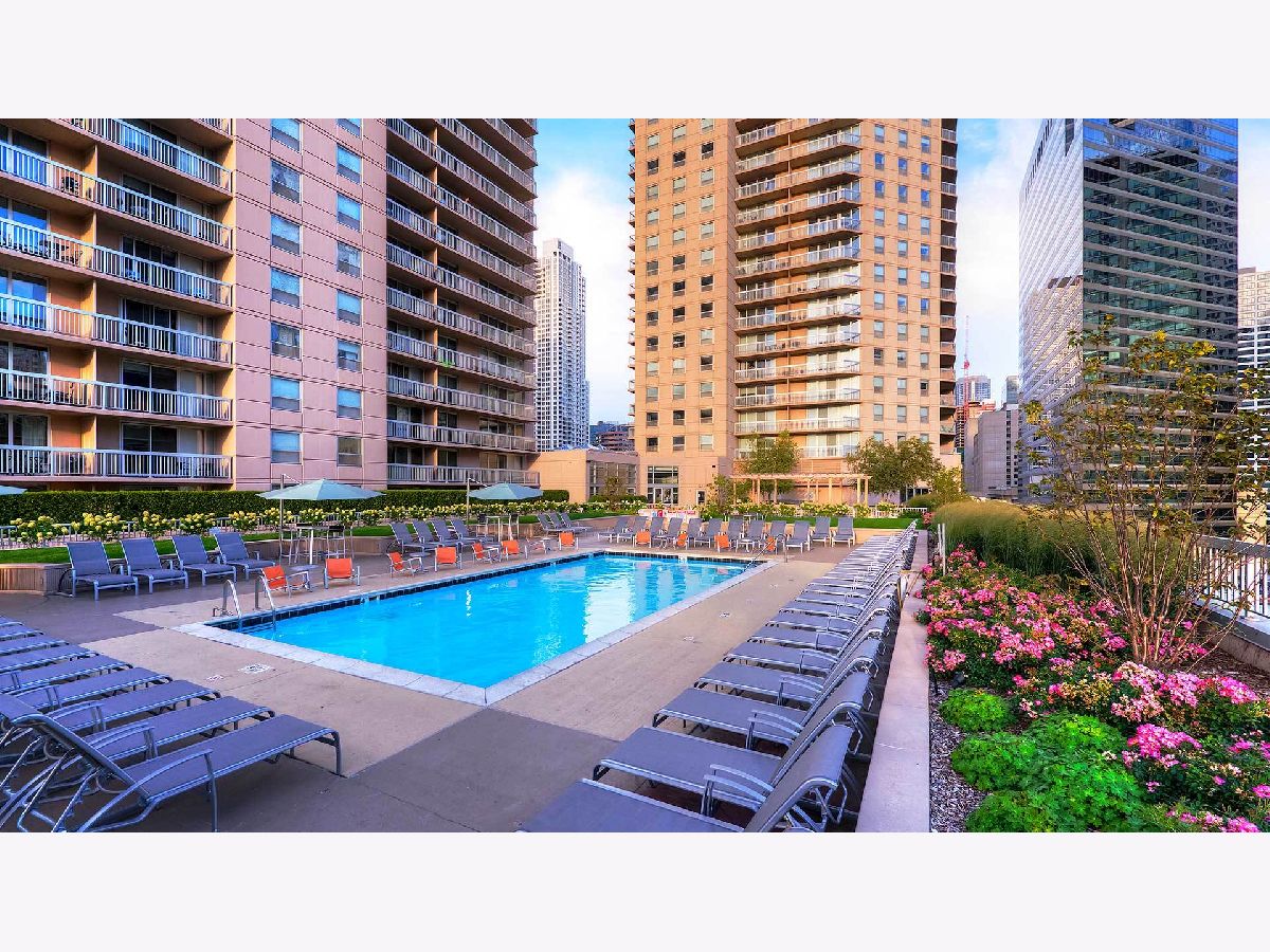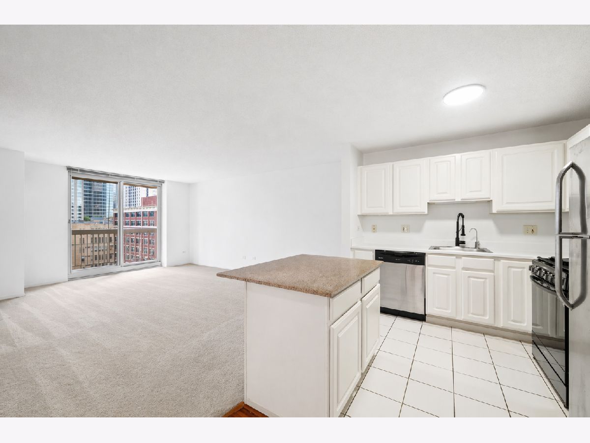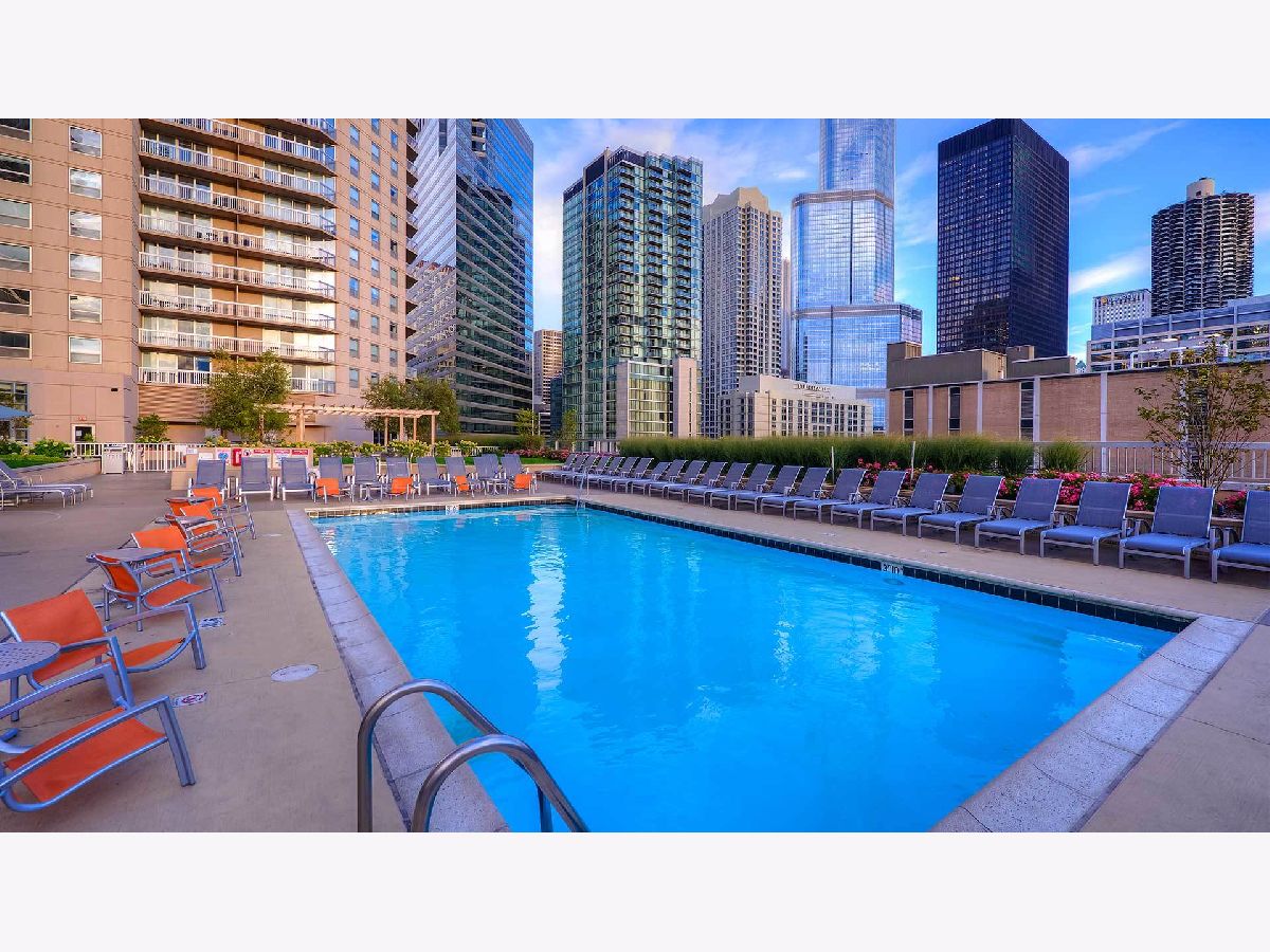 Spacious 1BR/1BA in the highly sought-after Grand Plaza at 545 N Dearborn, one of River North's most in-demand full-amenity buildings. Ideally positioned in a premier tier with desirable south-facing views overlooking the city skyline and pool, this home offers a great opportunity to bring your own vision and customize the space. Open kitchen flows into the living area with white cabinetry, granite island, and stainless steel appliances. Generous bedroom features a large organized walk-in closet, plus the convenience of in-unit washer and dryer. Assessments include heat, A/C, cable, internet, and full amenity access. Building amenities include 24-hour door staff, sundeck, outdoor running track, pool, basketball court, fitness center, and community room. Unbeatable River North location just steps from dining, shopping, and nightlife. Welcome home!