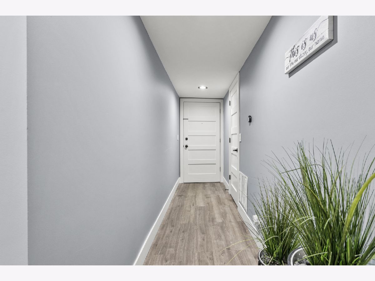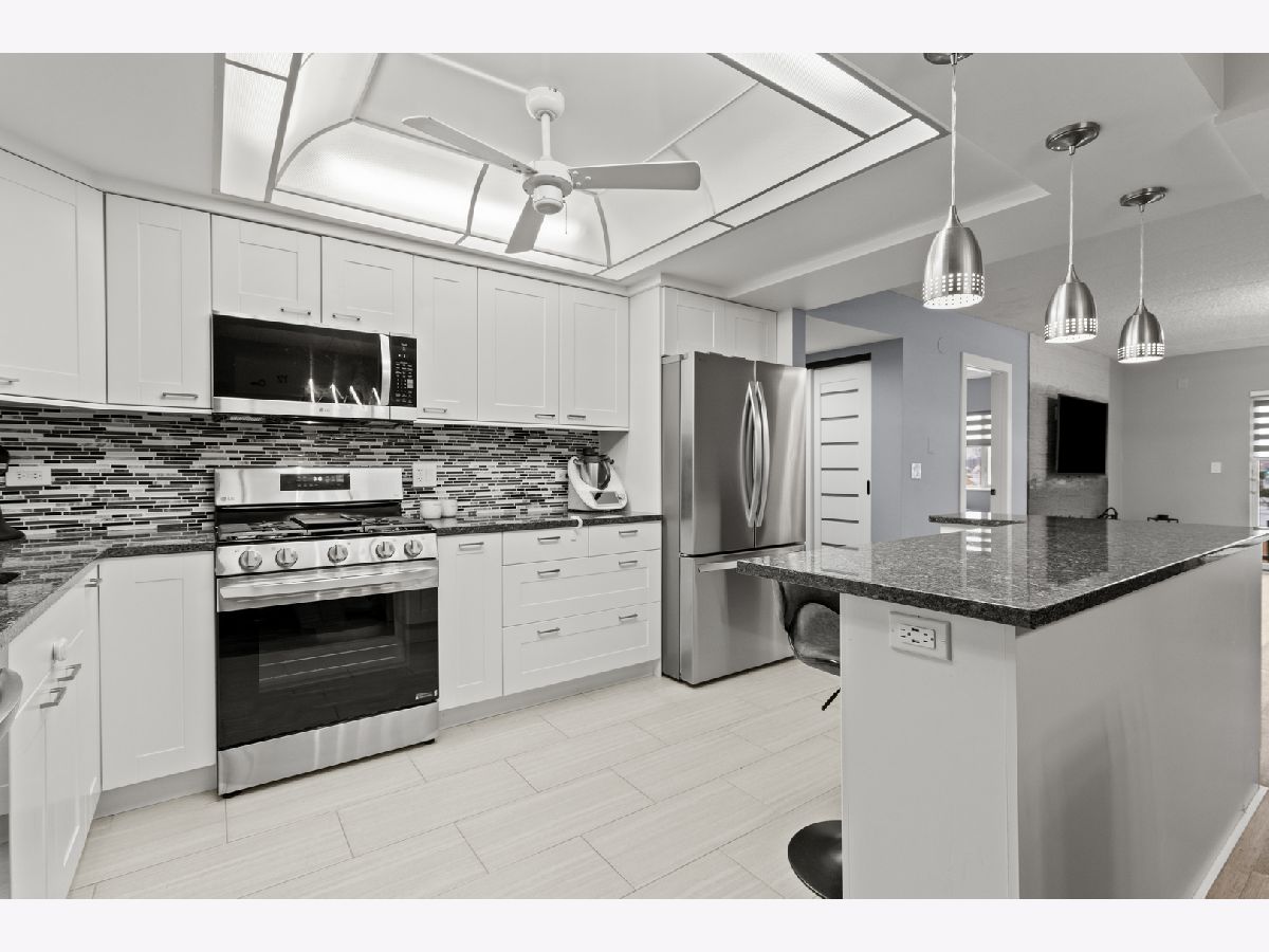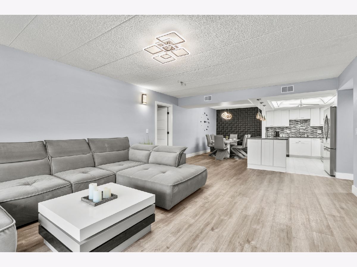 Beautifully updated 2-bedroom, 2-bath condo located in the heart of Des Plaines! This move-in-ready home features a desirable open-concept layout with wood laminate flooring throughout and solid European-style doors. The updated kitchen offers white cabinetry, a stylish mosaic tile backsplash, granite countertops, and stainless steel LG appliances. Both bathrooms have been fully remodeled with modern finishes. Upgraded light fixtures and stunning designer tile accent walls in the living and dining rooms add a contemporary touch. The spacious primary bedroom includes a walk-in closet plus an additional closet and a private bath with a walk-in shower. Enjoy balcony access from the living room, a full-size laundry room, and a smart thermostat for added convenience. The unit also comes with additional storage on the same level, providing extra space and practicality. Includes 1-car garage parking, plus the owner currently rents an additional garage space. Unbeatable location-just a 5-minute walk to the Metra station, restaurants, library, shops, and coffee spots. A perfect blend of style, comfort, and convenience!