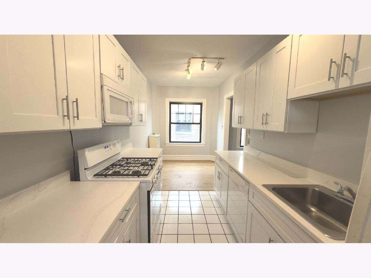 Bright, move-in ready 2BR condo a short walk to the University of Chicago, featuring updated kitchen with brand-new cabinets and countertops, and freshly painted interior. Hight ceiling and well lit top-floor condo with wall to wall windows facing a quite and beautifully landscoped courtyard. Features refinished hardwood floors (2020), all insulated windows and three A/C units installed in 2023, new gas range with self-cleaning oven (2023), and overhead microwave (2020). Large eat-in kitchen with a bay window and plenty of natural light. Bathroom includes ceramic tile floors, full bath tub/shower, and built-in vanity and linen closet with drawers. Steps away from University of Chicago, hospitals, schools, transit, shops, restraunts and parks. Ideal for both owner-occupants and investors.